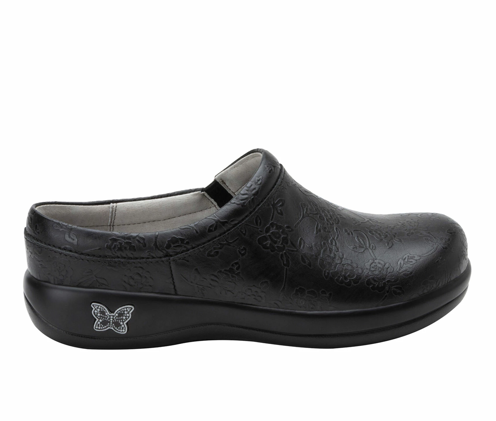 - Slip on this clog and experience the comfort of our career casual outsole and classic footbed. This Kayla is featured in printed Obscura pattern, also with a padded collar and a stain-resistant, soft and supple suede leather upper.