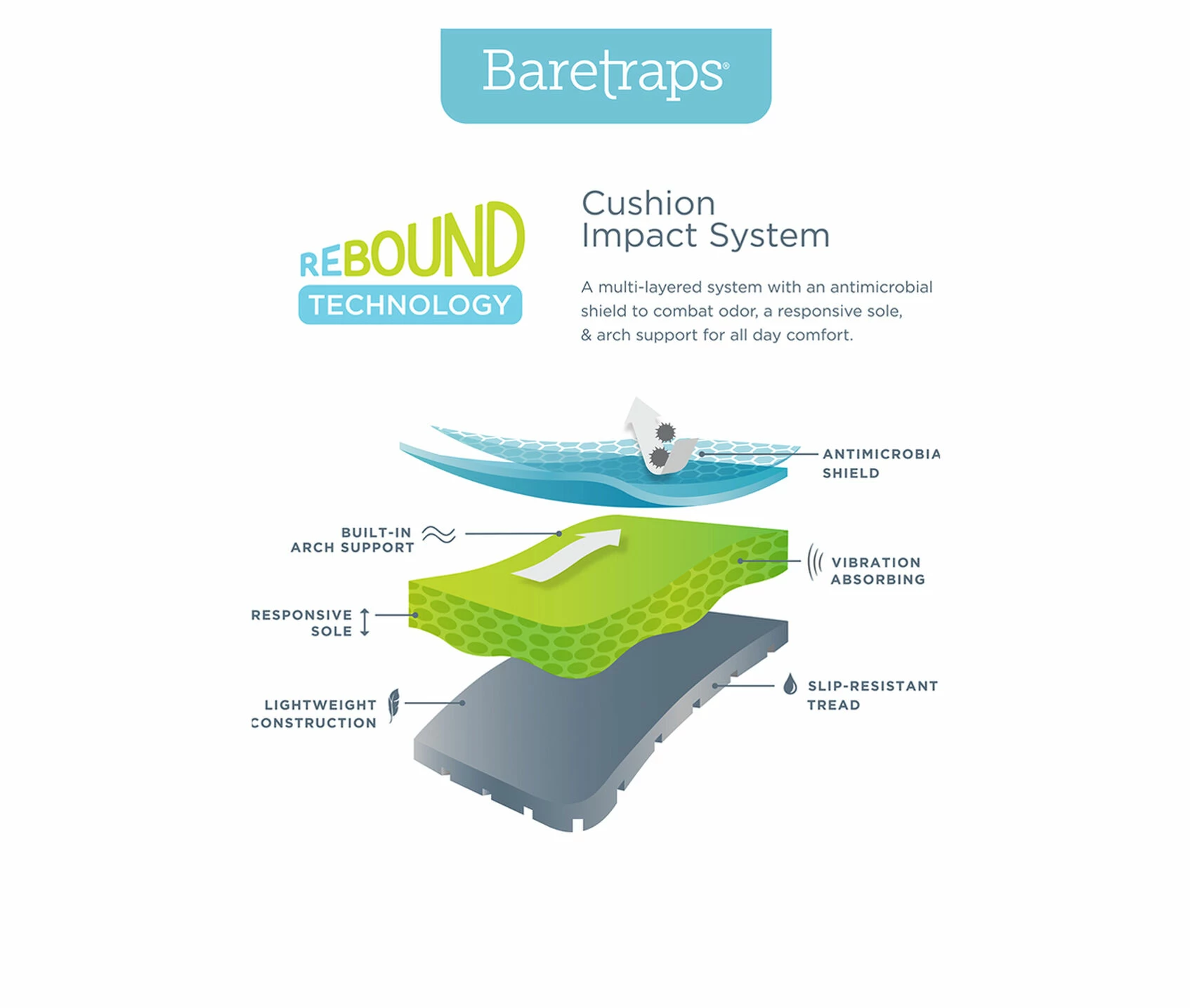 - Ready for action! Deserae is a sporty slip-on sandal with all the comfort features you’ve come to expect from a Baretraps sandal. Featuring a hook and loop closure, a hidden wedge, lightweight TPR outsole and our patented Rebound Technology.