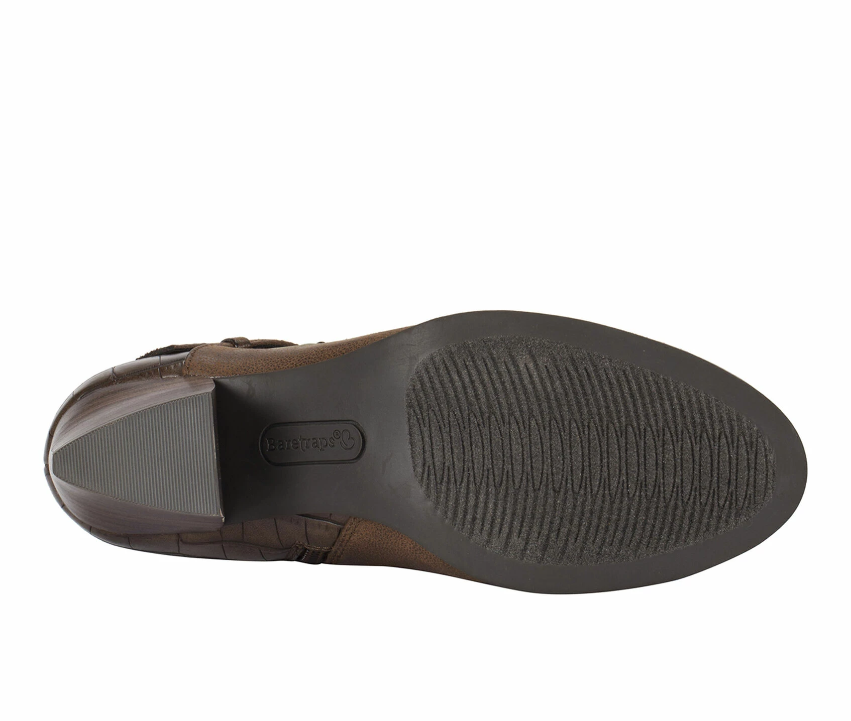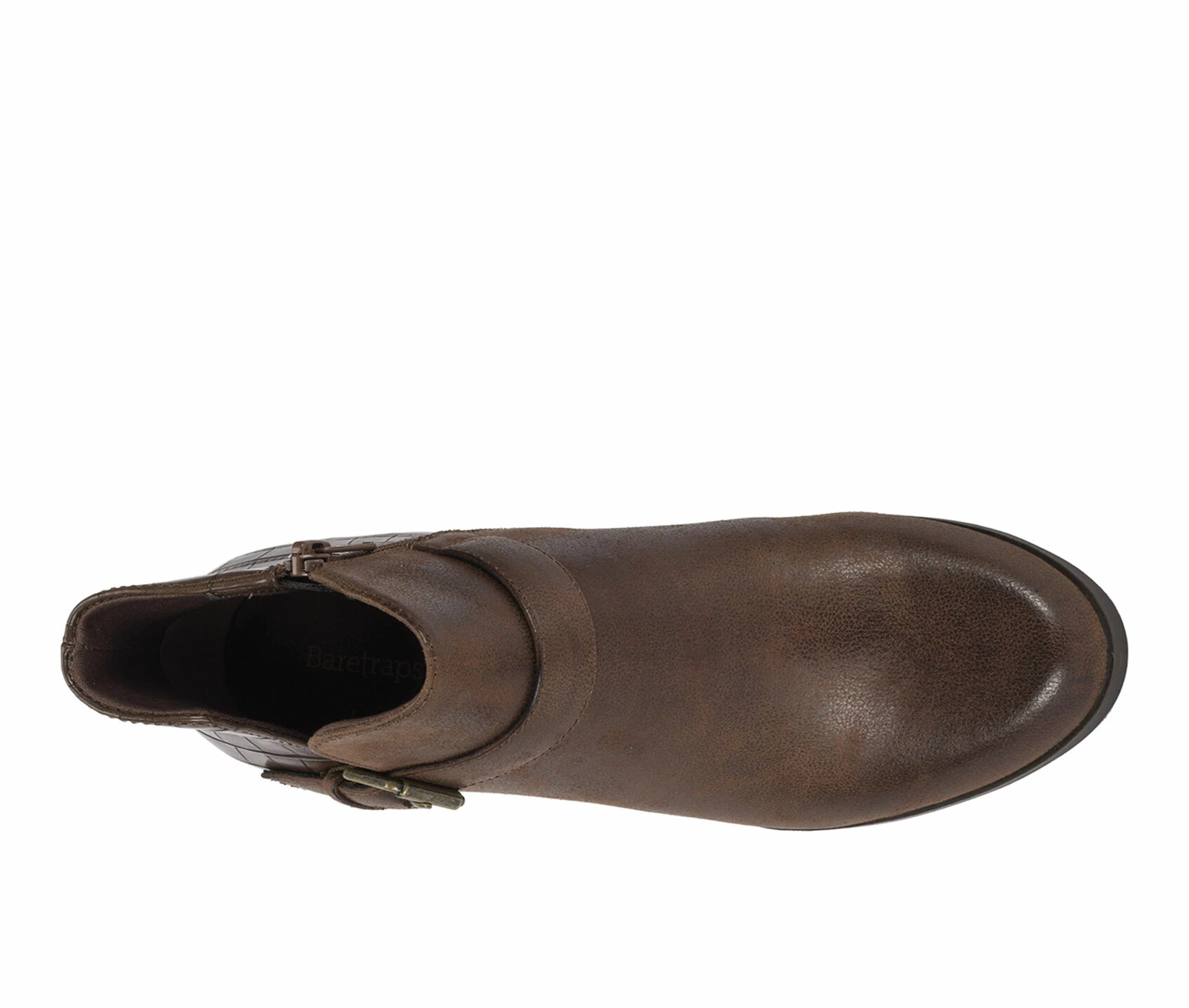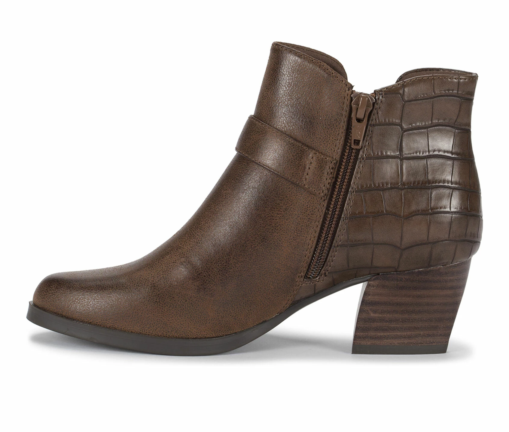 - High end style with everyday comfort, our Lexis bootie is a great compliment to any causal and business outfit. A strap and buckle design with a unique crocodile back detail and real leather stacked heel make this bootie hard to miss.