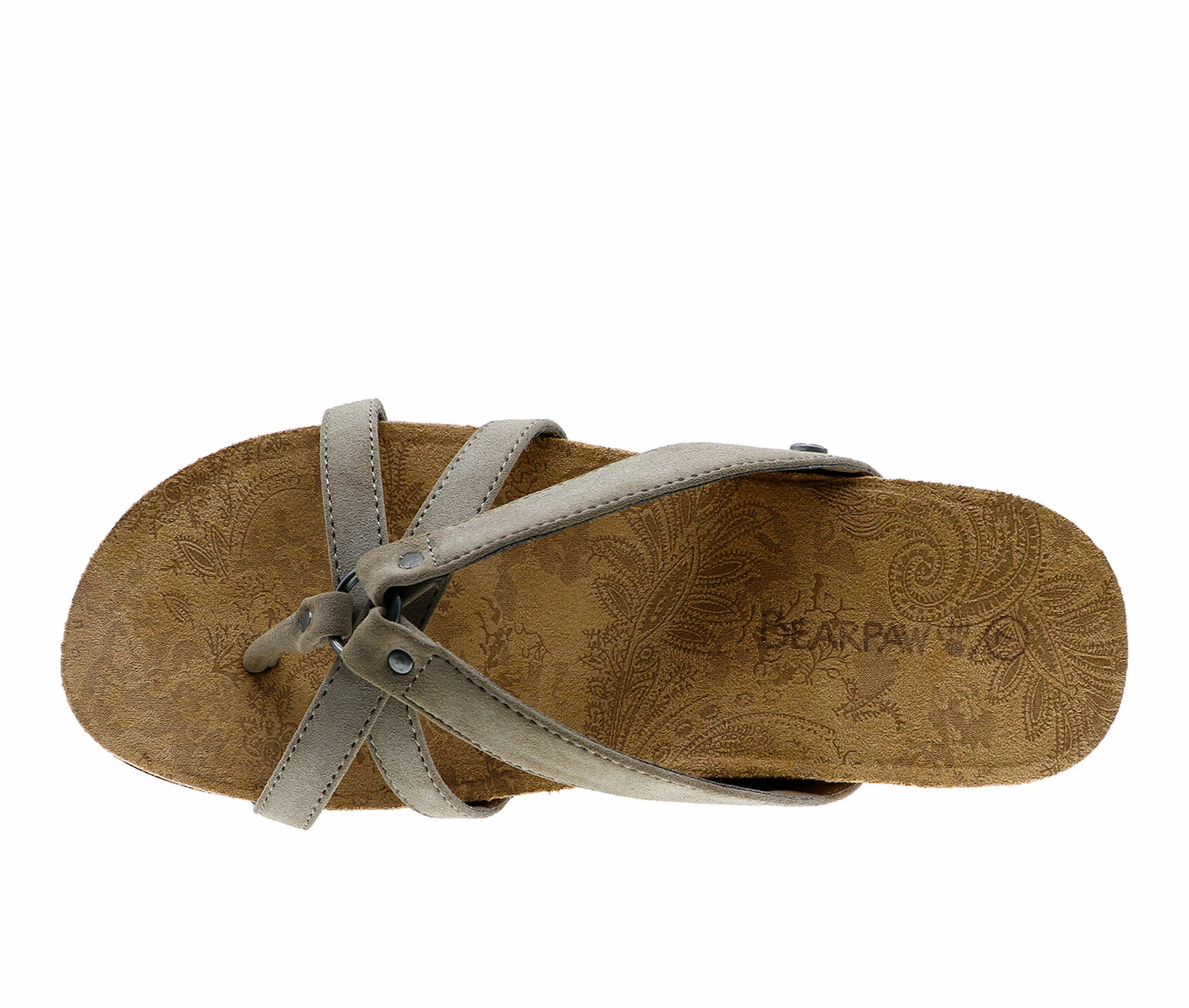 - A new addition to the Bearpaw® family! The Fawn is the ultimate essential sandal with a fresh and simple, yet feminine and sophisticated look. An effortless faux leather slip-on with a micro-suede contoured footbed with tonal floral accents, cork wrapped cushioned EVA midsole and sculpted TPR outsole for comfort and traction.