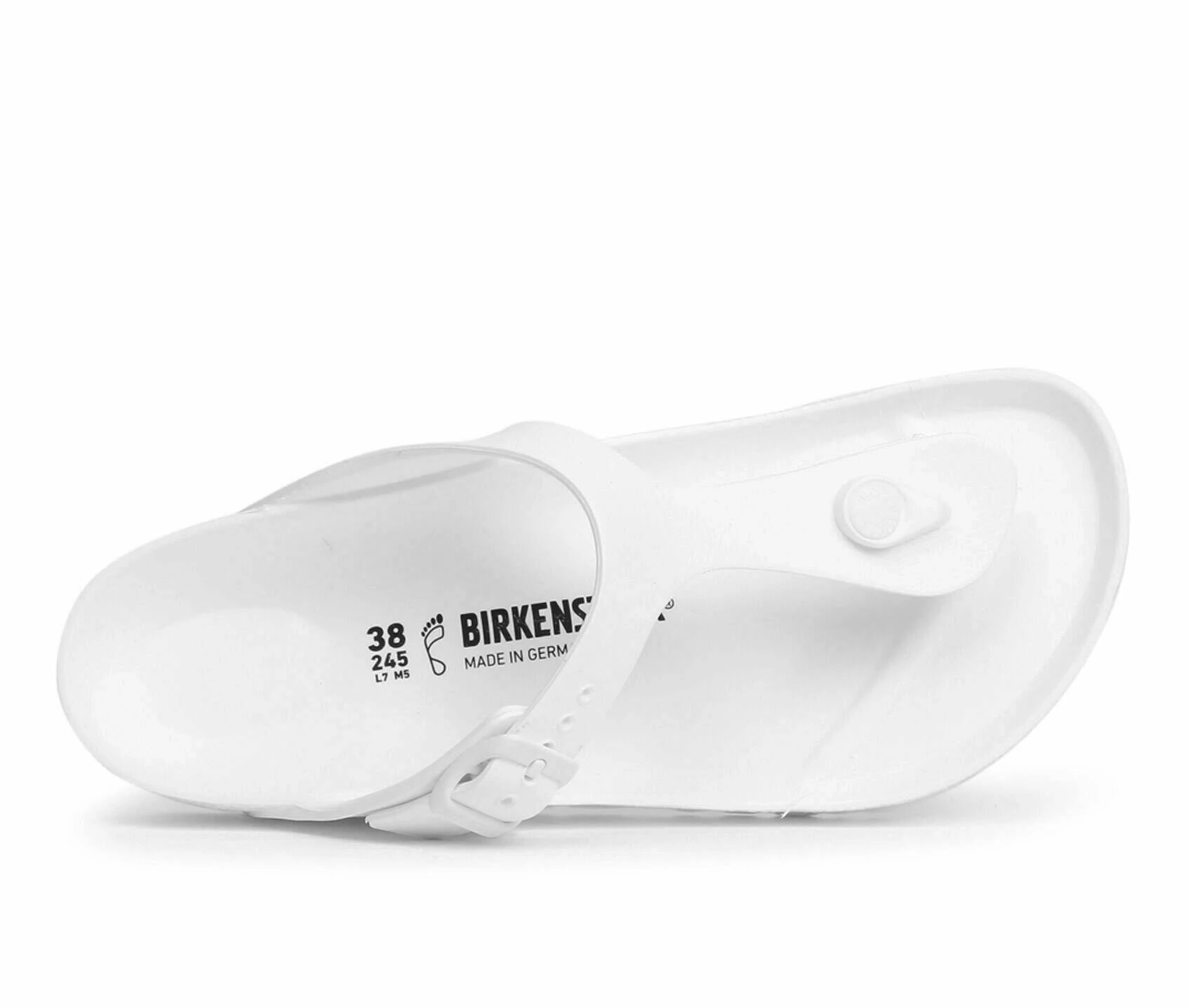 - Women’s Birkenstock Lightweight T-Strap Slide Sandals. Look sporty and stylish while giving your feet the support they deserve Birkenstock Gizeh Essentials! This lightweight, slip-on sandal boats a T-strap design for a contemporary look. The original Birkenstock footbed offers arch support, a deep heel cup, and a roomy toe box for supportive comfort. Look great at the beach or on the streets with the Birkenstock Arizona Gizeh!