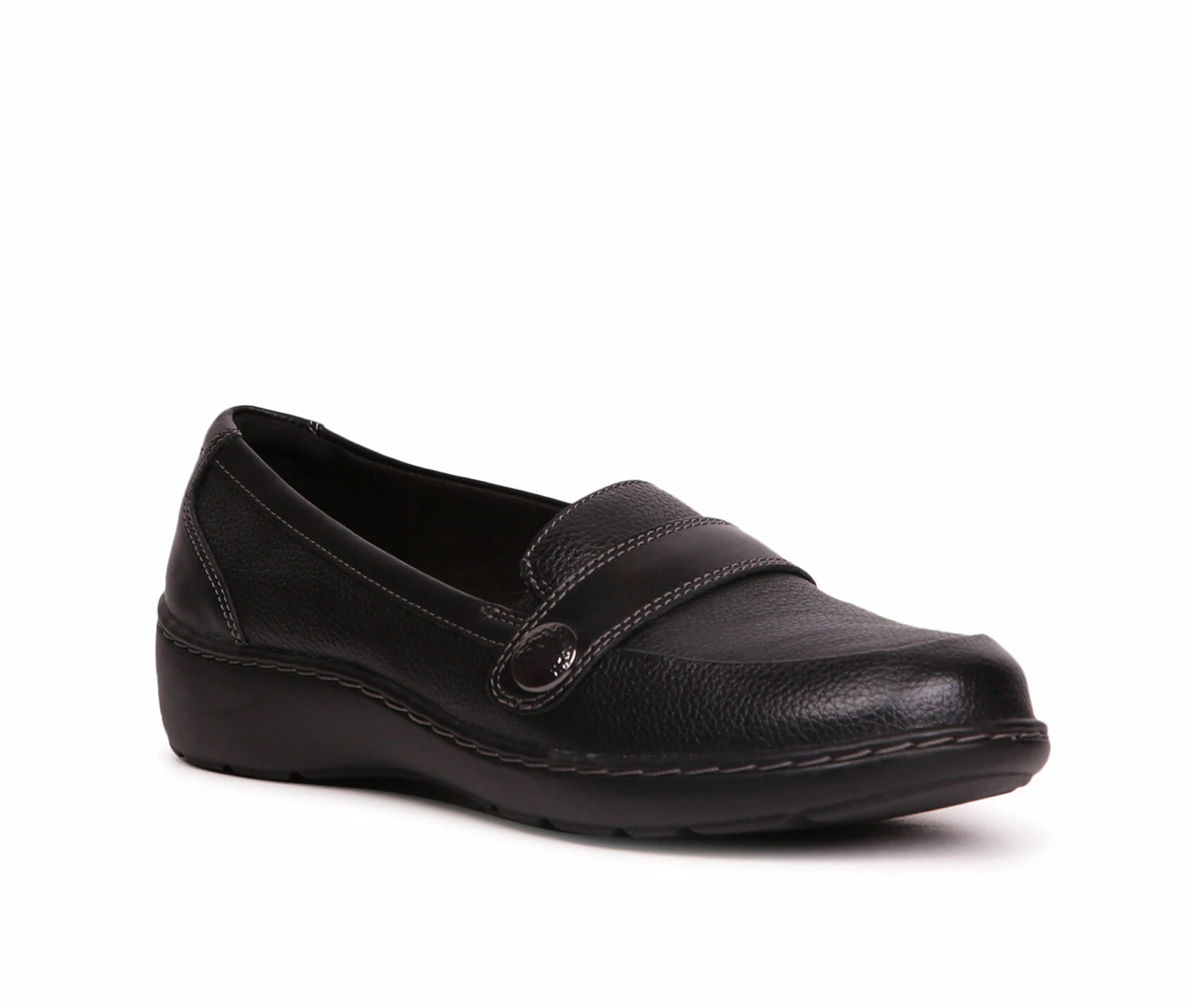 - Enjoy these flats, which provide comfort and versatility. These workplace casual shoes work for brunch with friends and church as well! This casual loafer style is marked by a full grain leather upper and decorative strap detail. A pair of subtle elastic gores give it an immediate slip-on fit and Ultimate Comfort features including a long-lasting Ortholite footbed reduce impact and wick away moisture, making it perfect for barefoot wear.