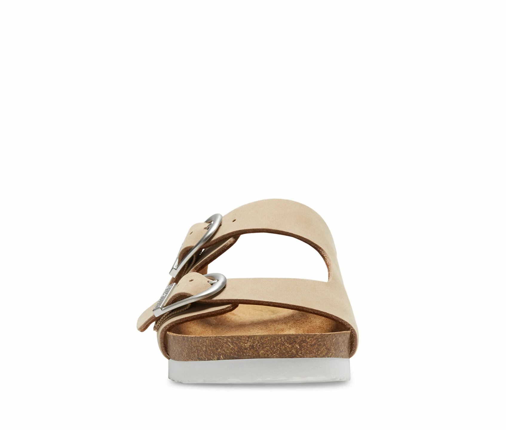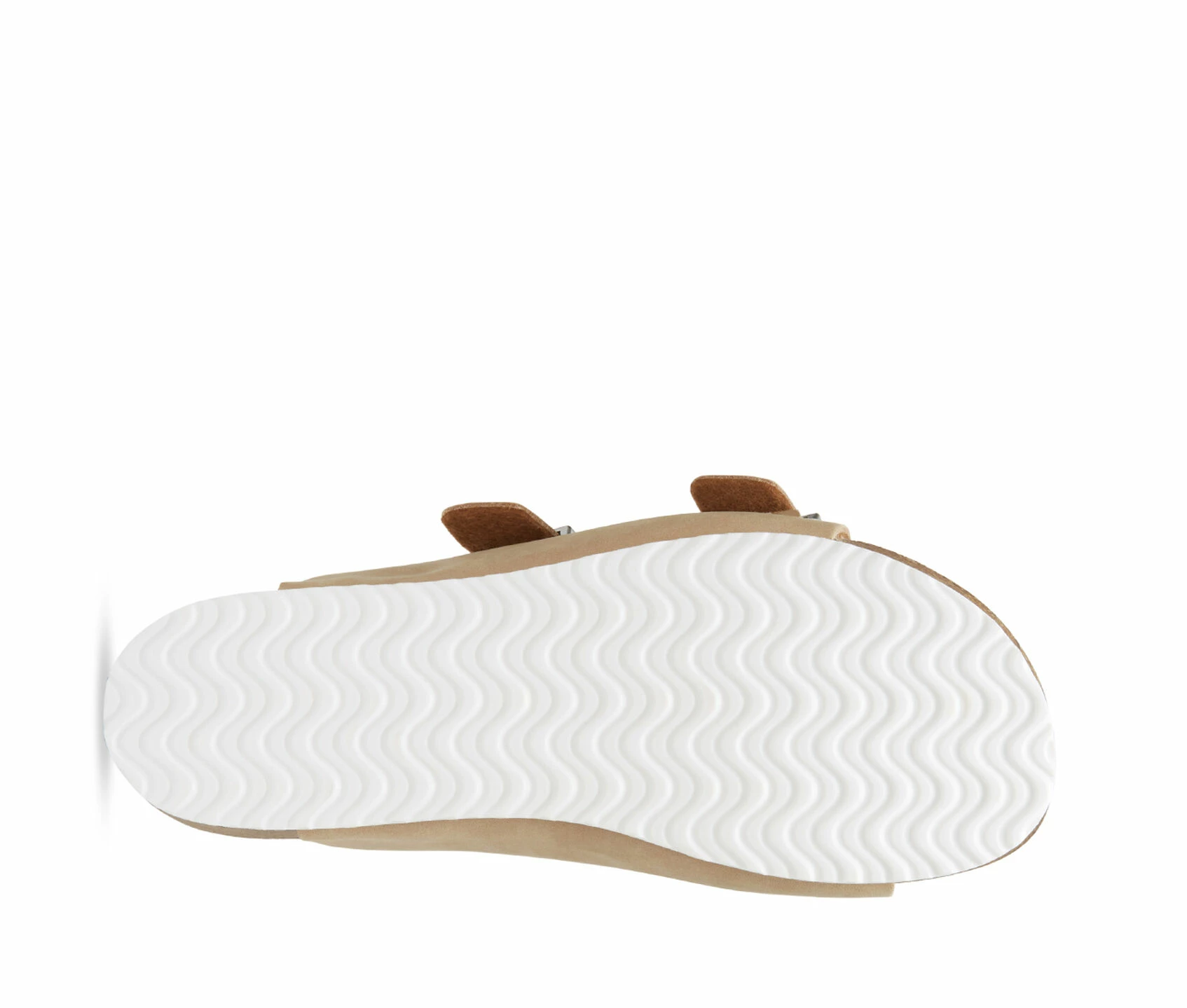 - Full-grain leather or soft suede straps. Adjustable buckle closure for secure fit. Eastland Exclusive Active Memory Foam comfort insole supports and conforms to the curves of your foot. TPR and cork midsole. Durable, shock absorbing EVA outsole.H eel Height: 1.