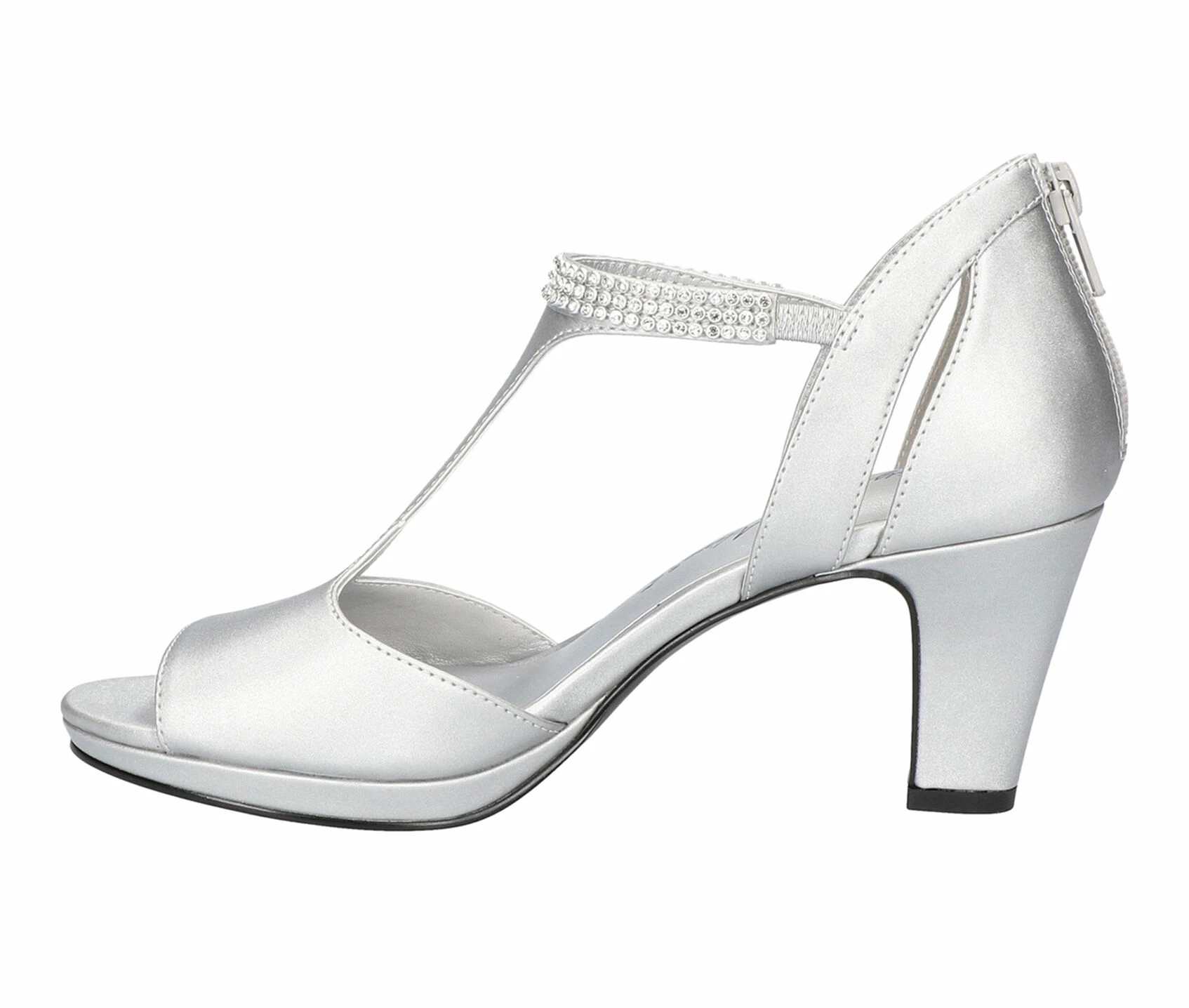 - Stand out with the Flash from Easy Street. The t-strap upper design brings a sleekness to your office attire and the stones on the evening colors will bring an elegance to your special occassion outfit. Comfort features include a heel to toe padded insole, platform styling. Back Zipper for easy on/off. Where looking good feels great!