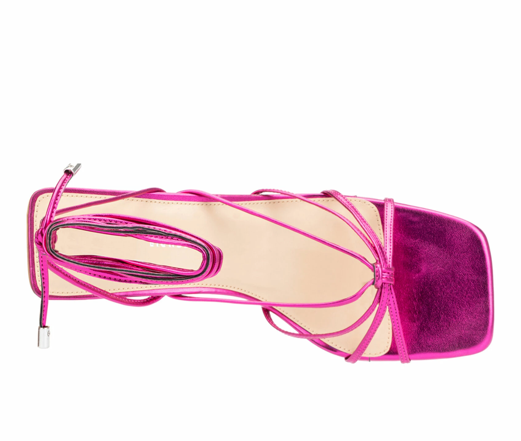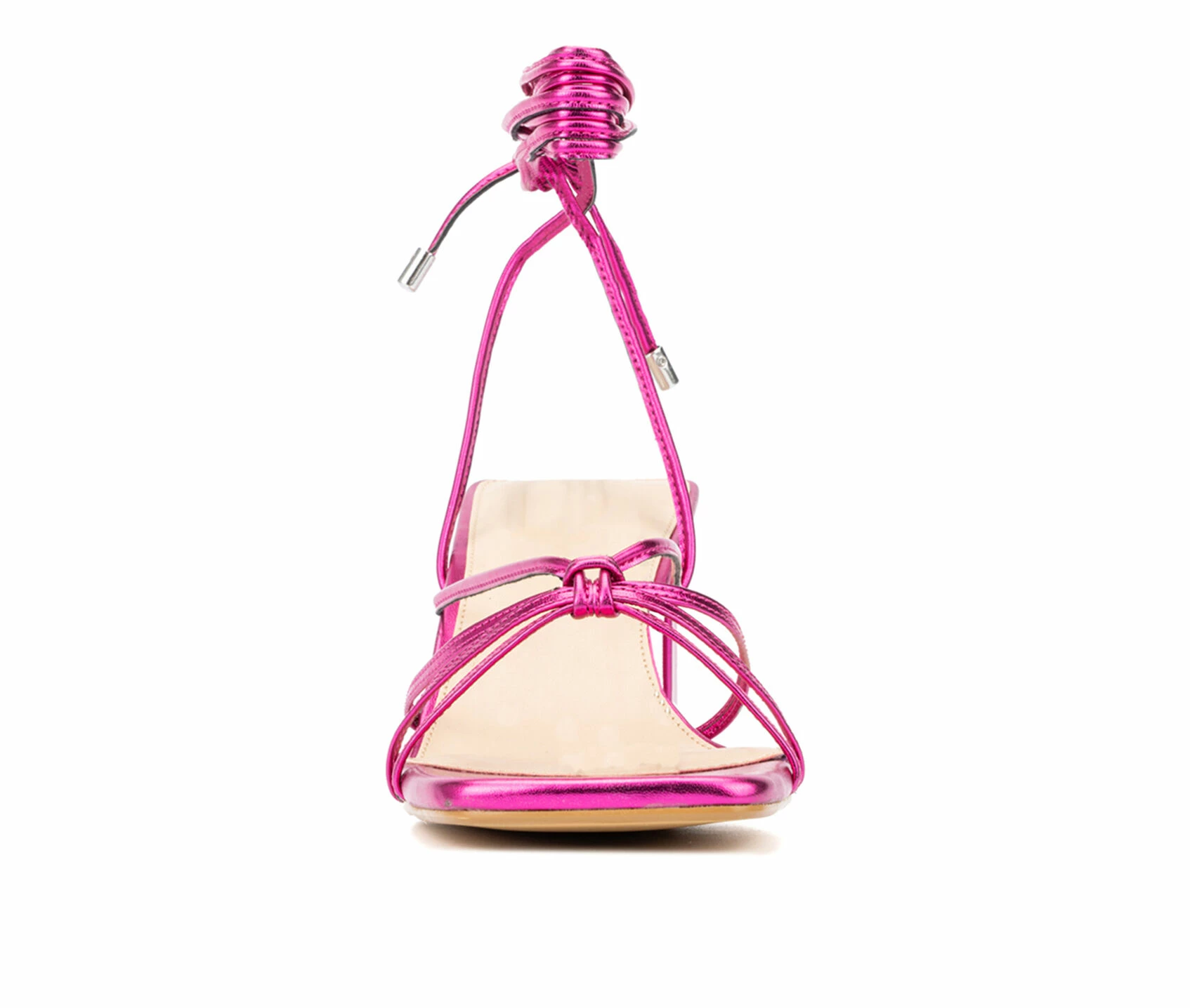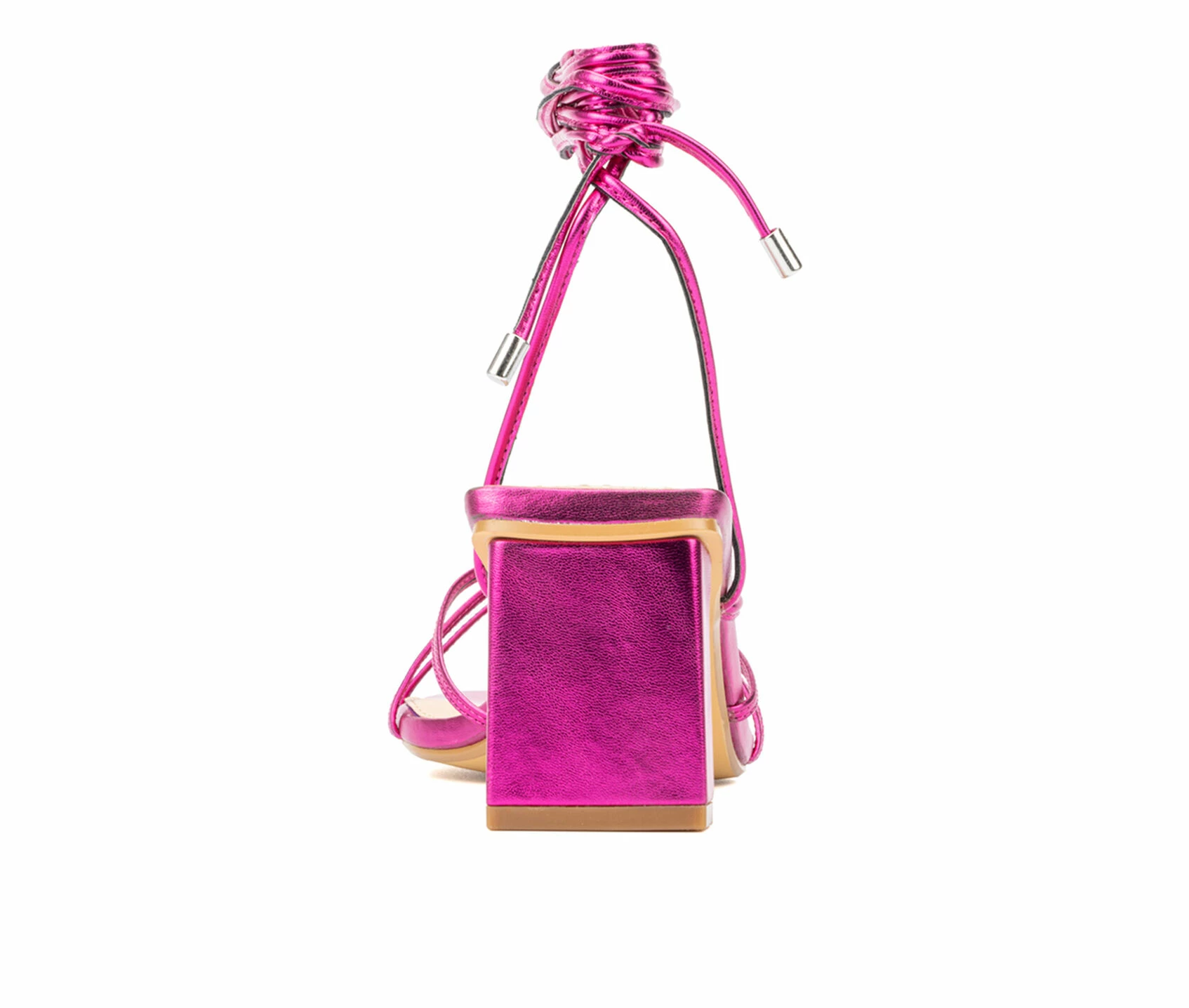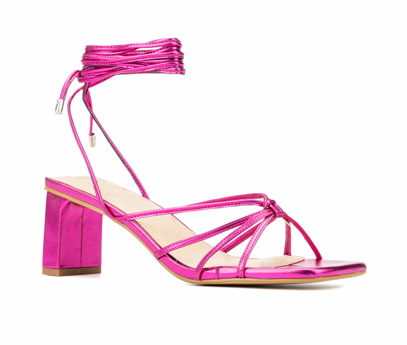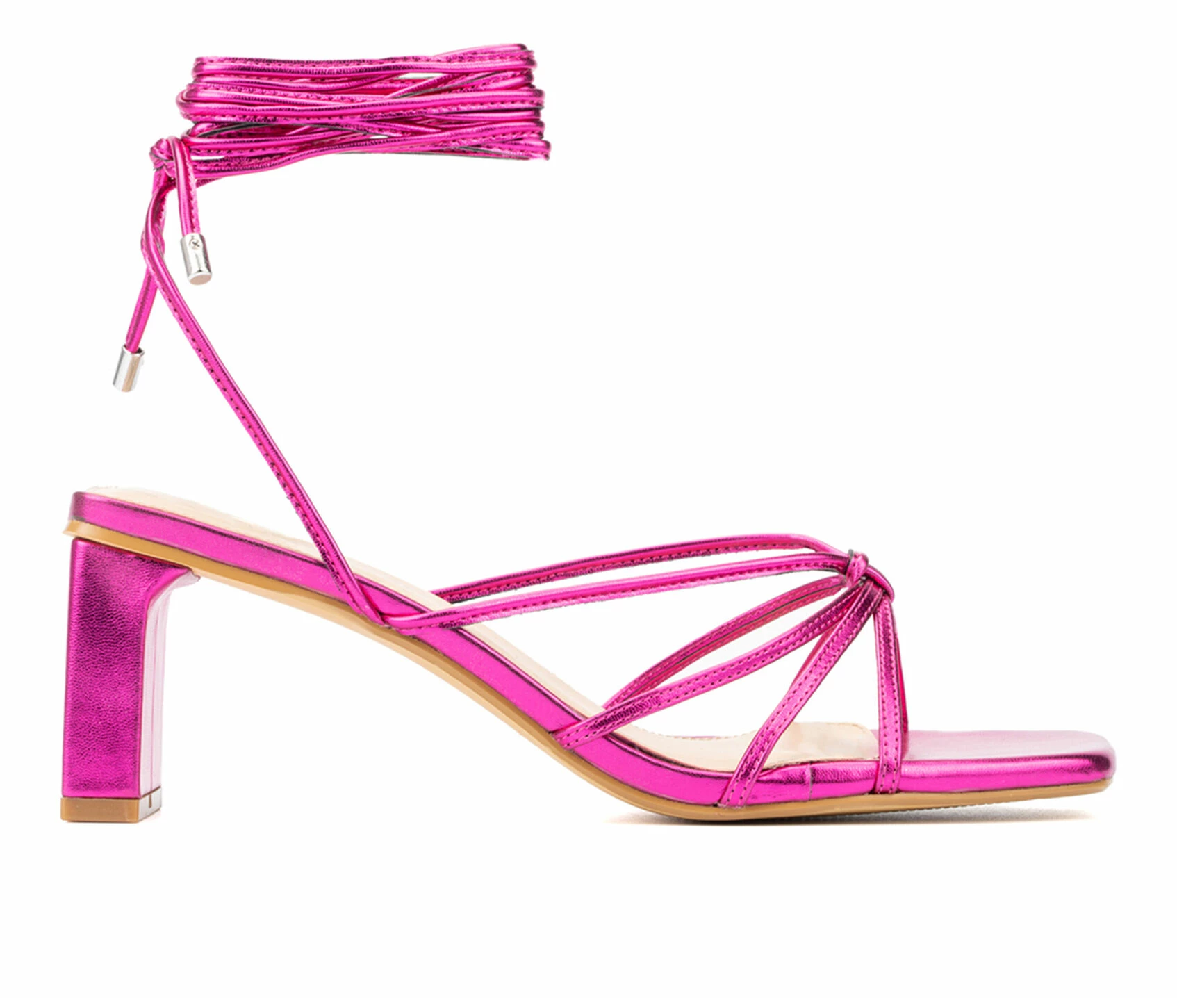 - These exotic strappy heeled sandals are a go-to for many in the fashion crowd. The multi-wrap ankle strap and stacked kitten heel finish the style.