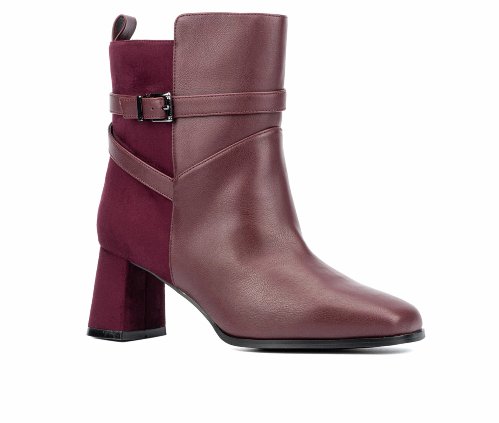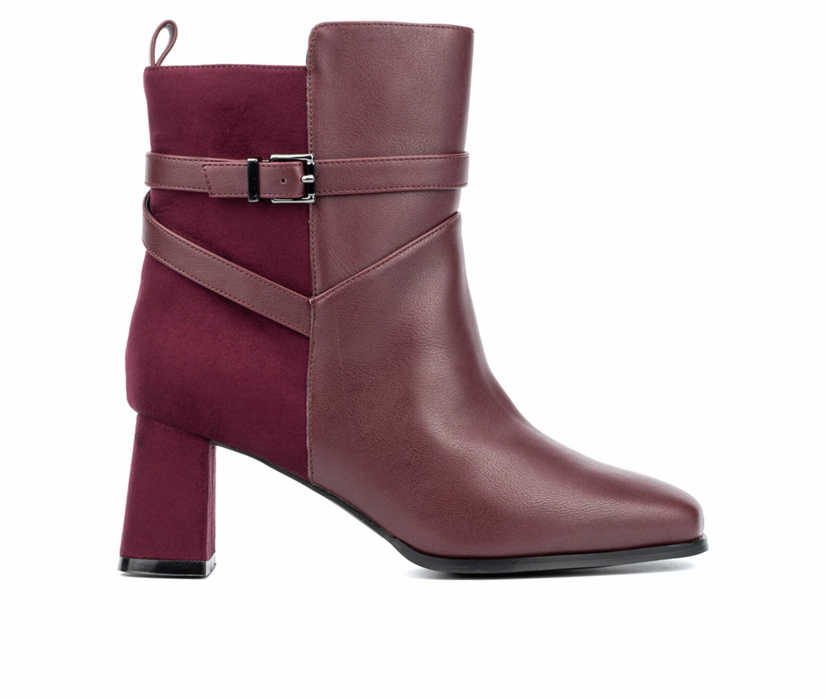 - These mixed material babes will make you look striking no matter how you choose to style them. Featuring a comfy 2-inch heel, round toe, and zipper closure, these offer a quality that lasts and the wide fit you’ve been looking for!