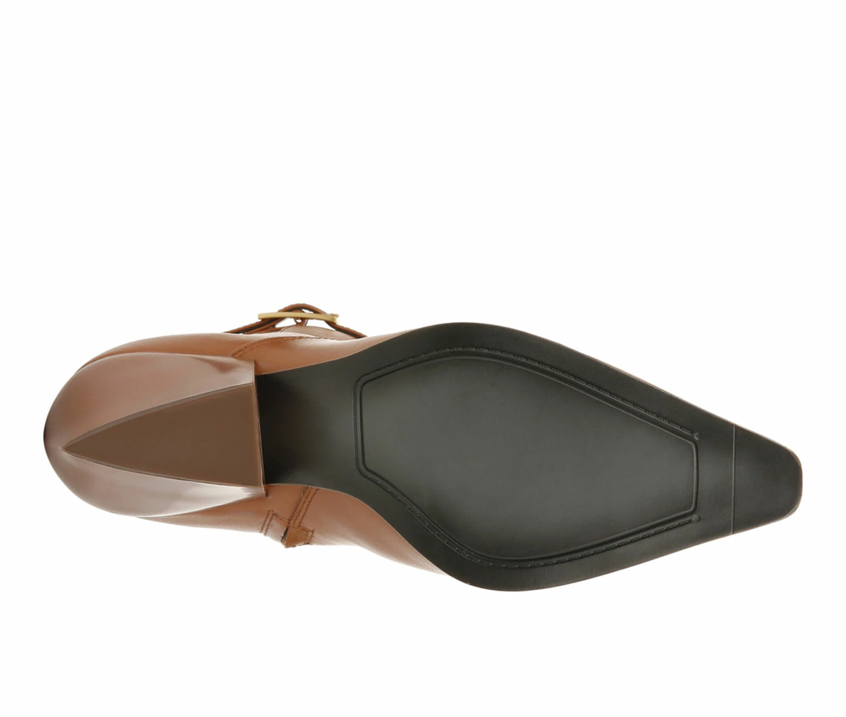 - From the sophisticated materials to the ultra-streamlined shape, every detail of these ankle boots for women defines sleek refinement. Leather upper responsibly sourced through Leather Working Group-audited factories or synthetic leather upper partially made from recycled materials or fabric upper. Partially recycled linings with soft + eco-conscious comfort. Side zip for easy on/off. Buckle detail at cuff. Square toe. 2.25 inch heel.
