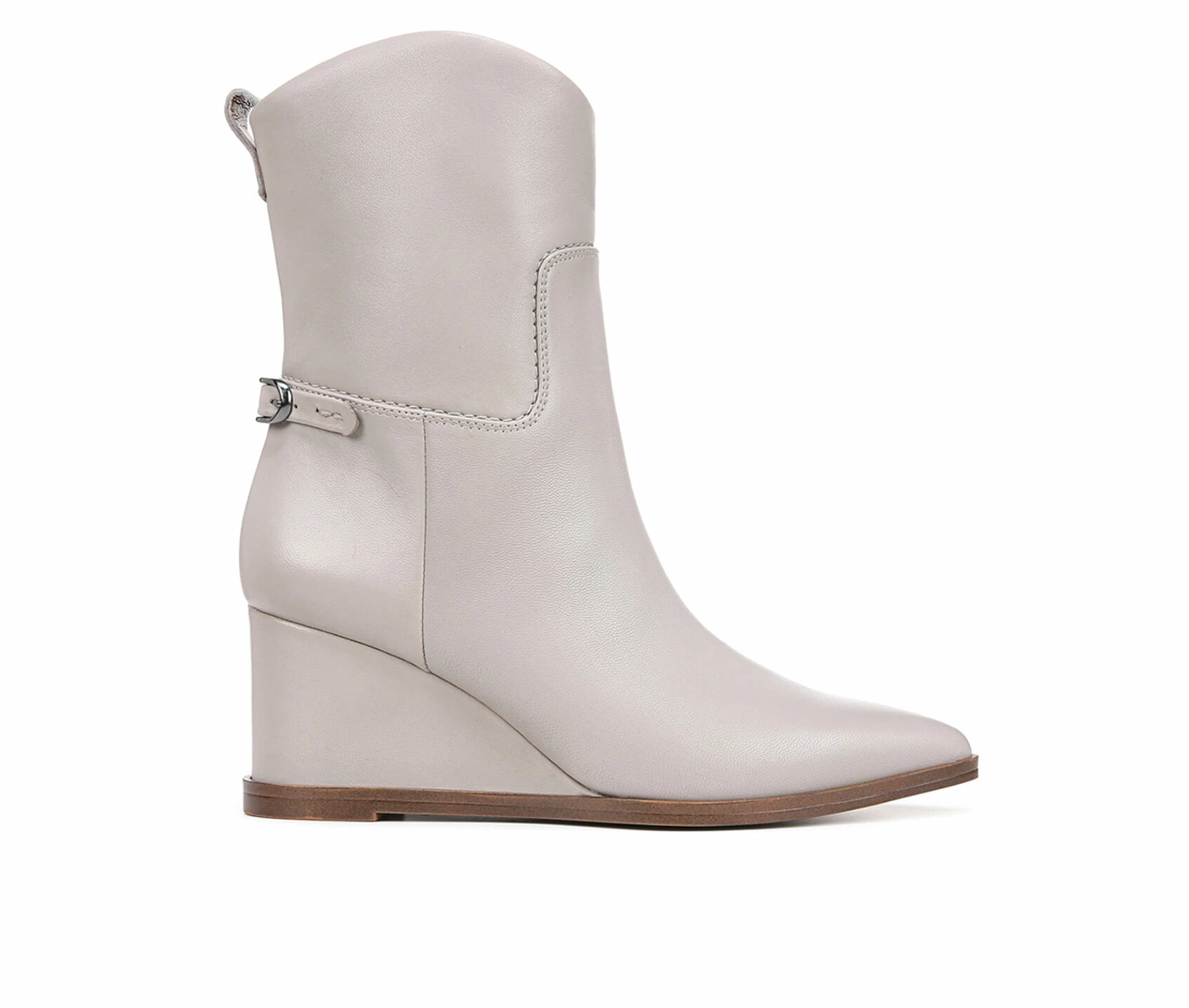 - Style and substance, everything you want from timeless Italian design. These ankle boots for women are built with a sleek wedge heel and made with sustainably minded materials. Leather upper responsibly sourced through Leather Working Group-audited factories. Partially recycled linings with soft + eco-conscious comfort. Side-zip closure for easy on/off. Pointed toe. Buckle detail at side. 2.75 inch wedge heel.