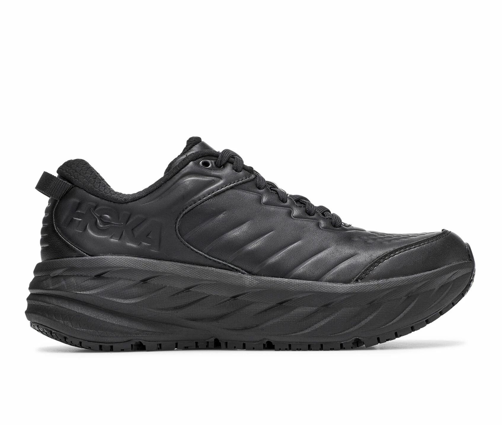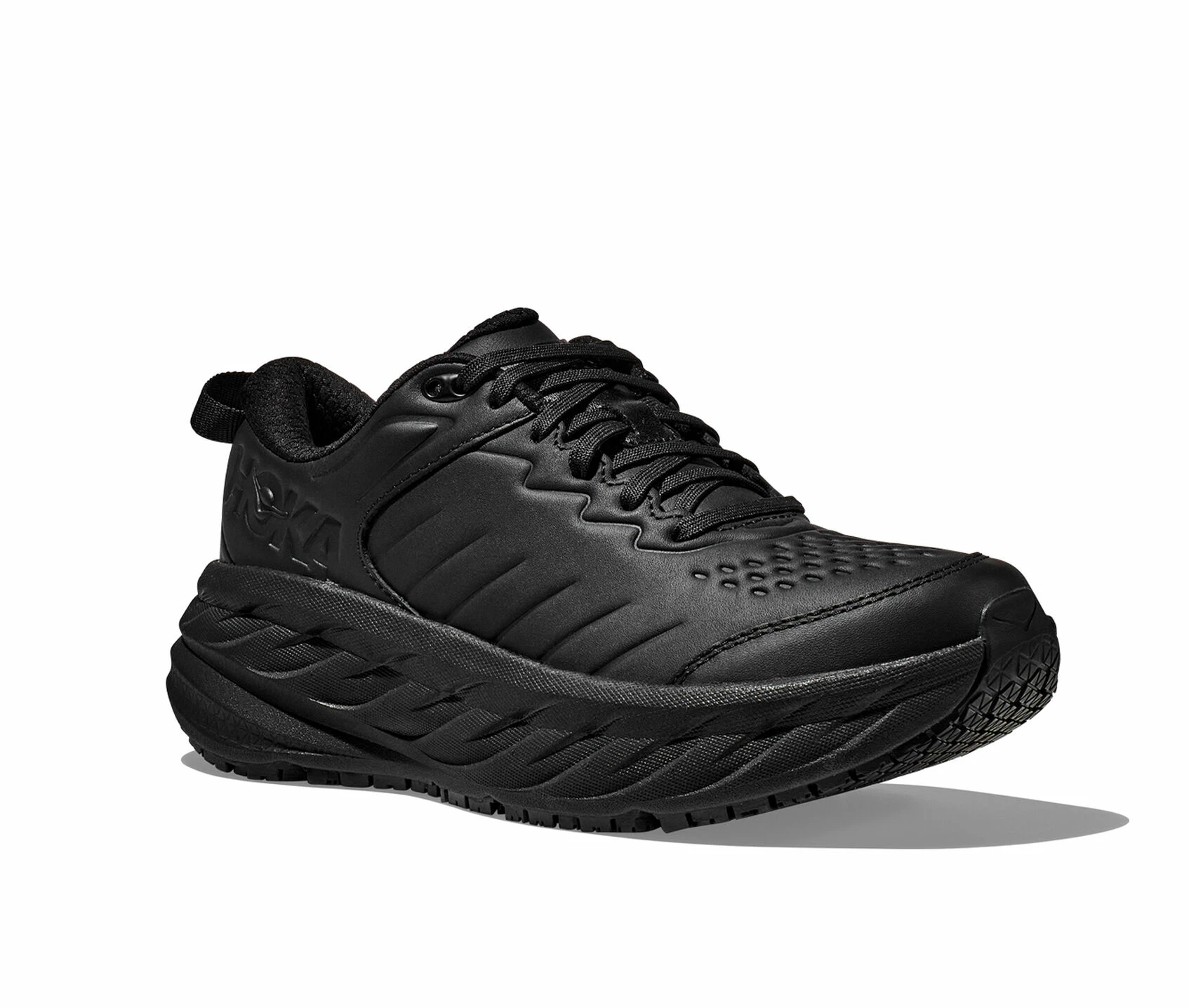 - The Bondi SR is updated with water-resistant leather, a slip-resistant outsole and EVA midsole to ensure all-day cushion, this workplace warrior features an ultra-grippy, full ground contact rubber that stands up to the demands of the service industry and medical field alike.