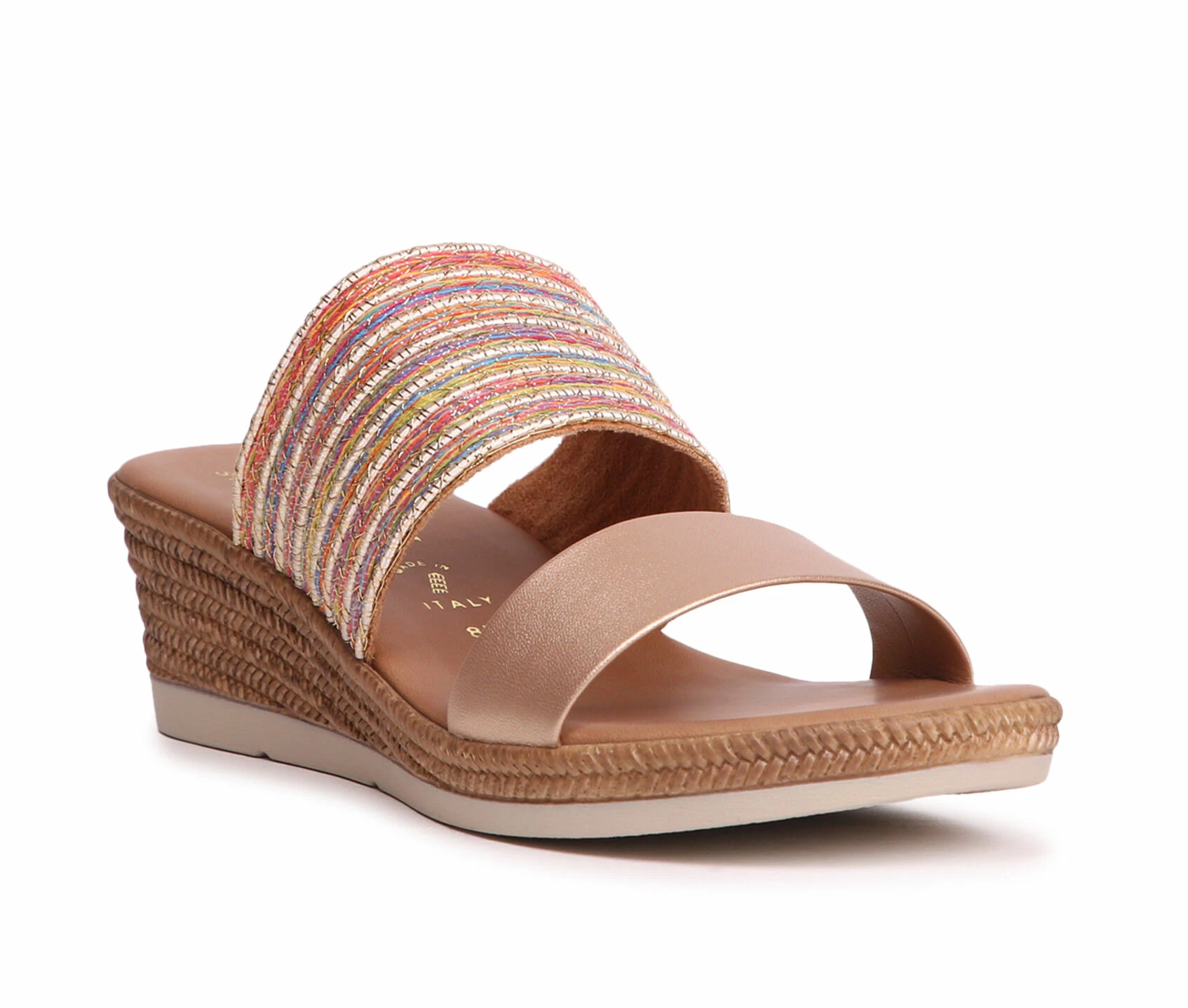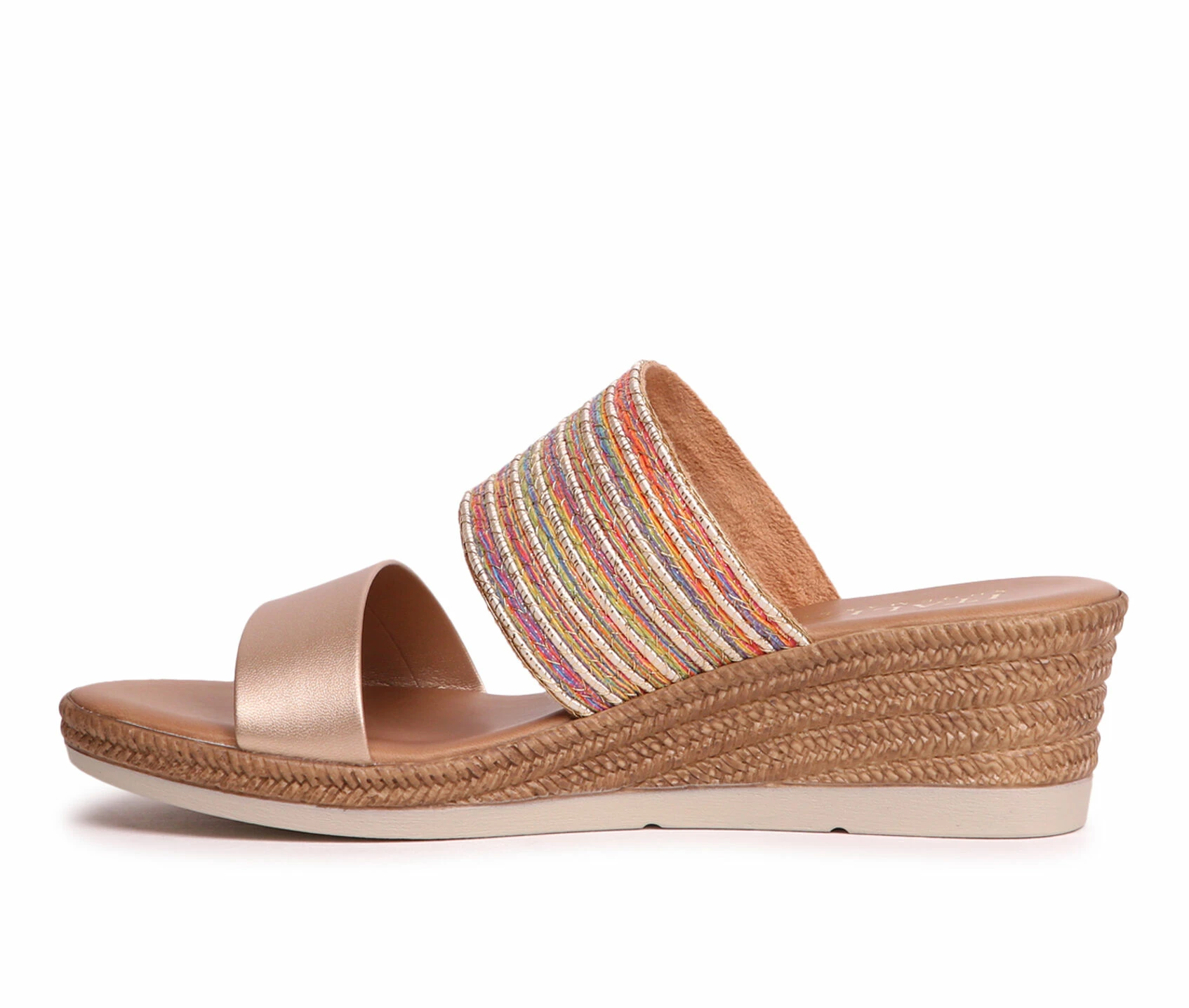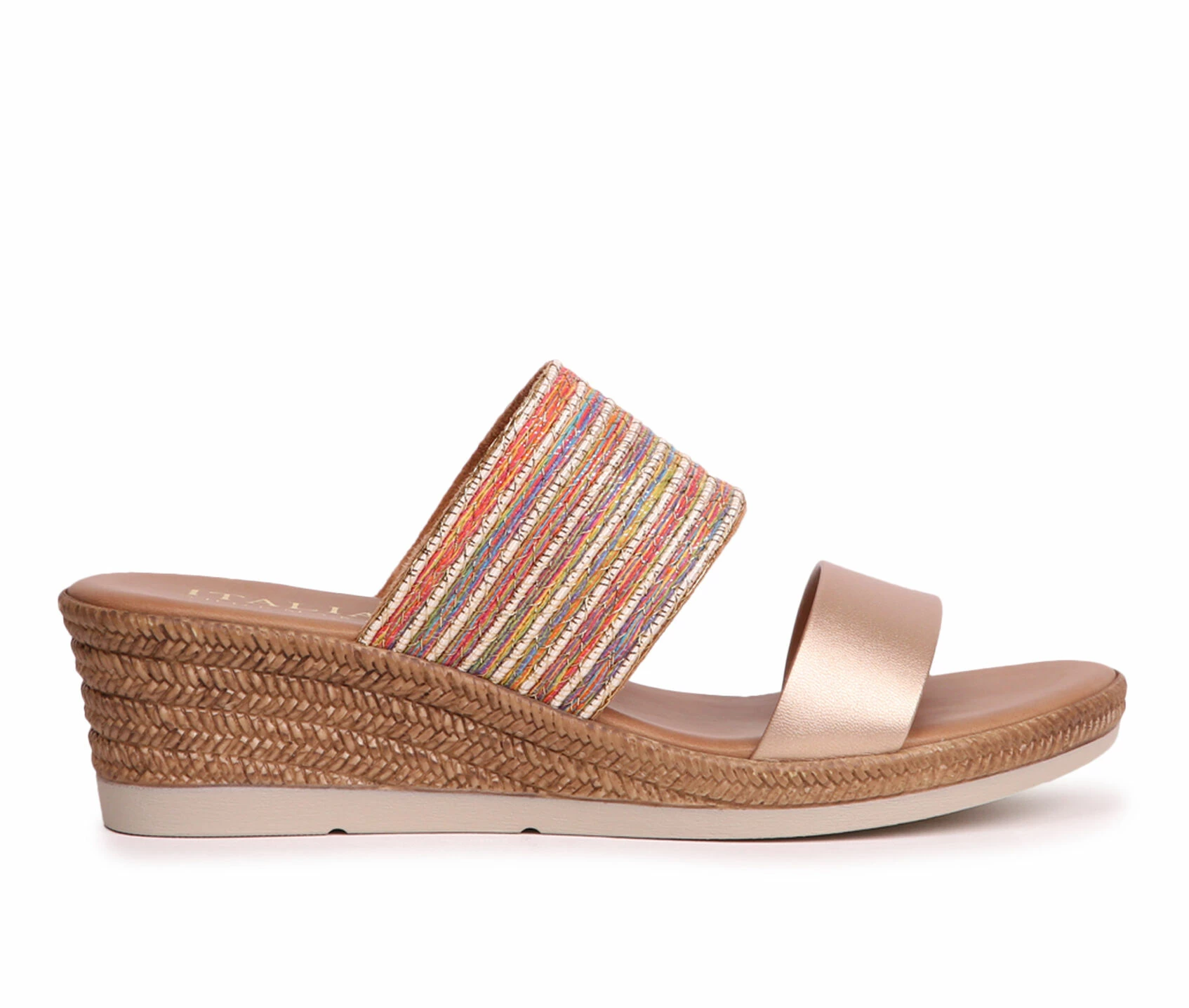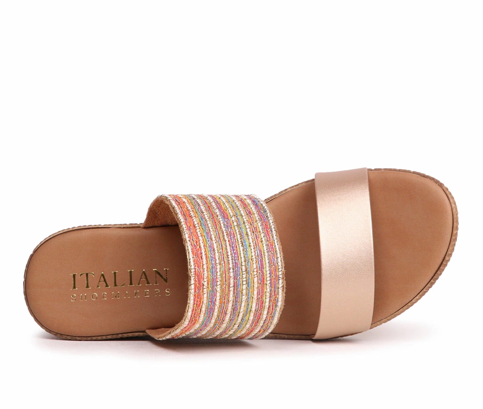 - The upper uses a multi color raffia ribbon strap that pairs perfectly with flowy dresses. The Teri has 1/2″ platform with a 2 1/4″ heel total heel height on a white sole.