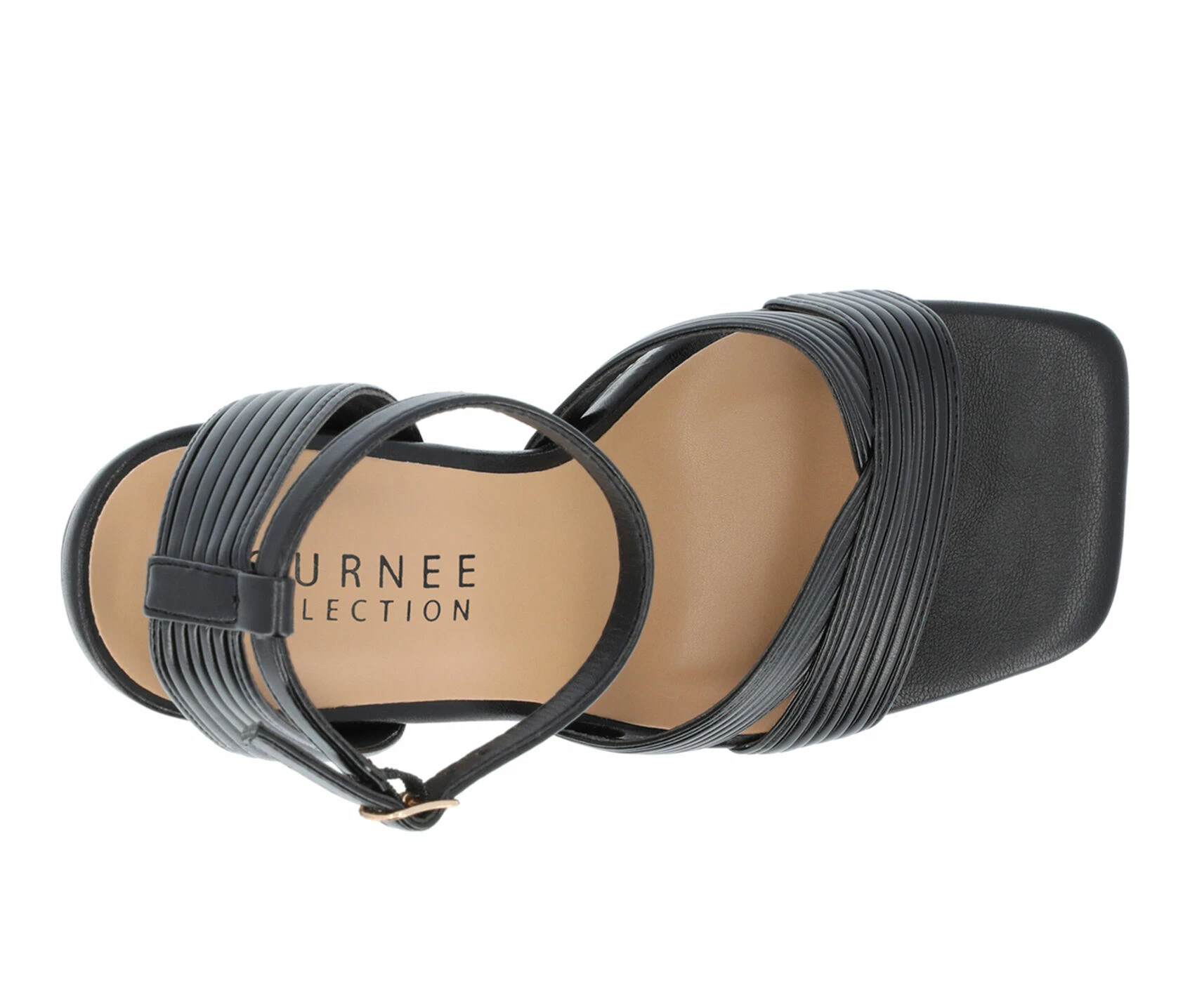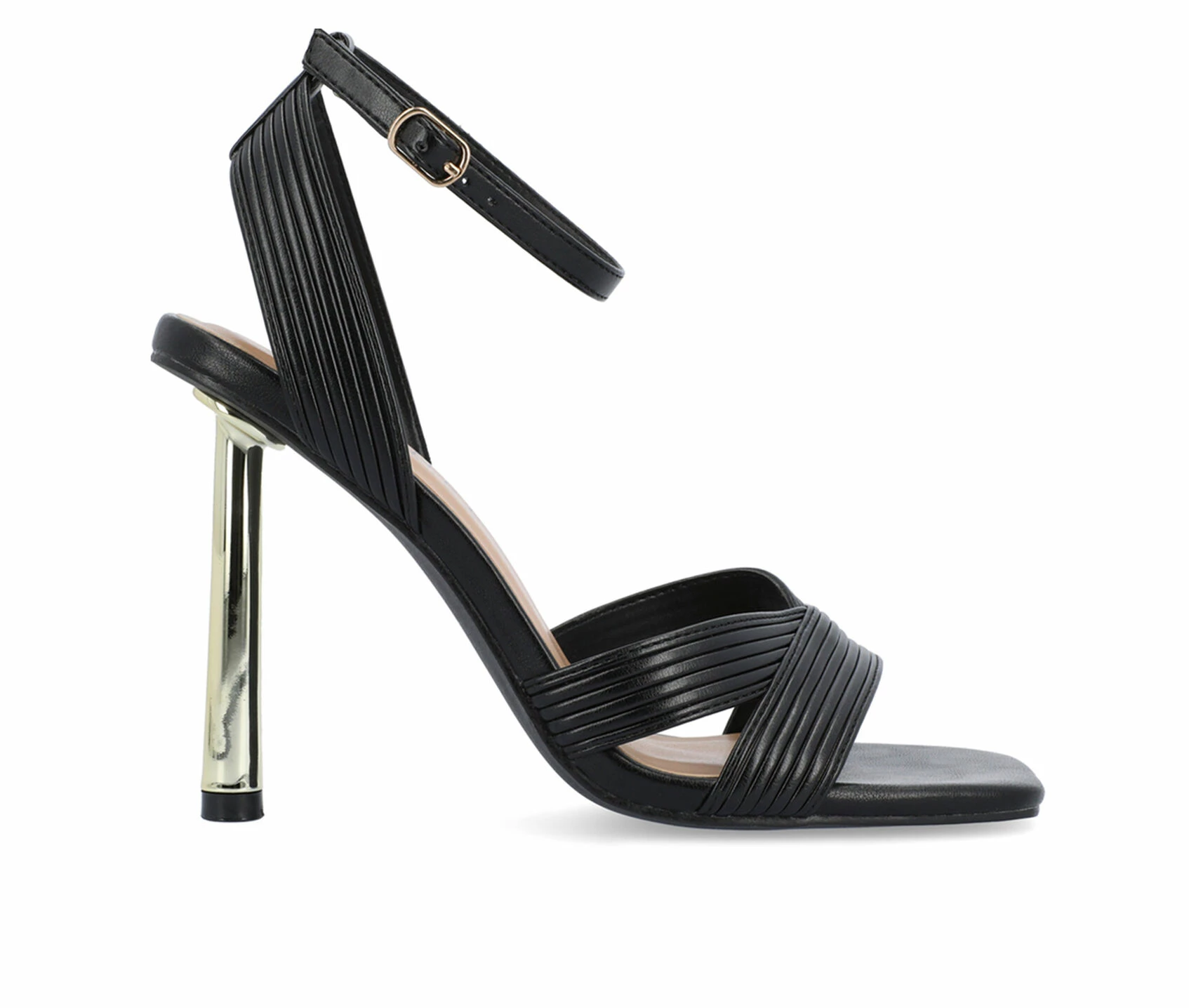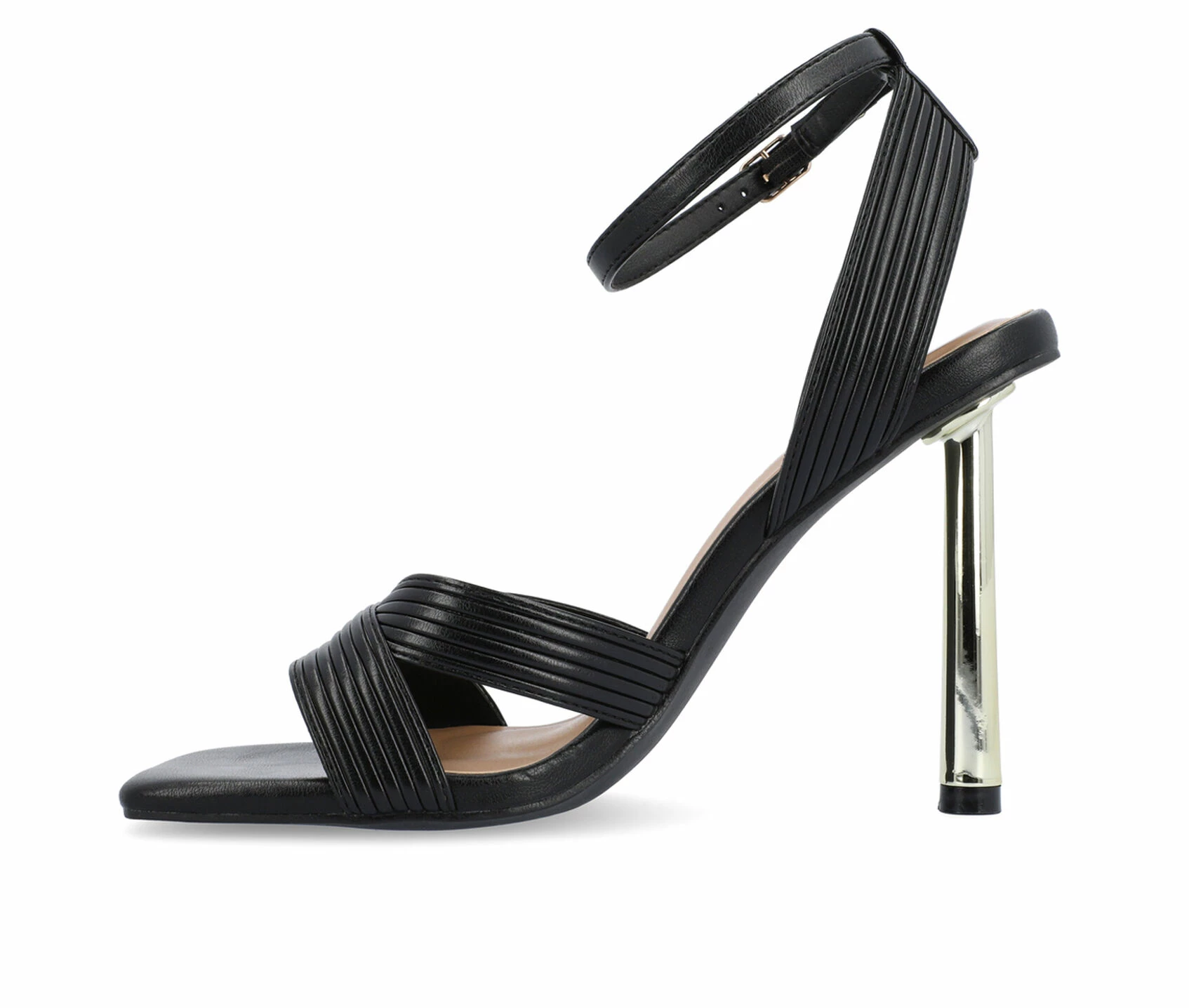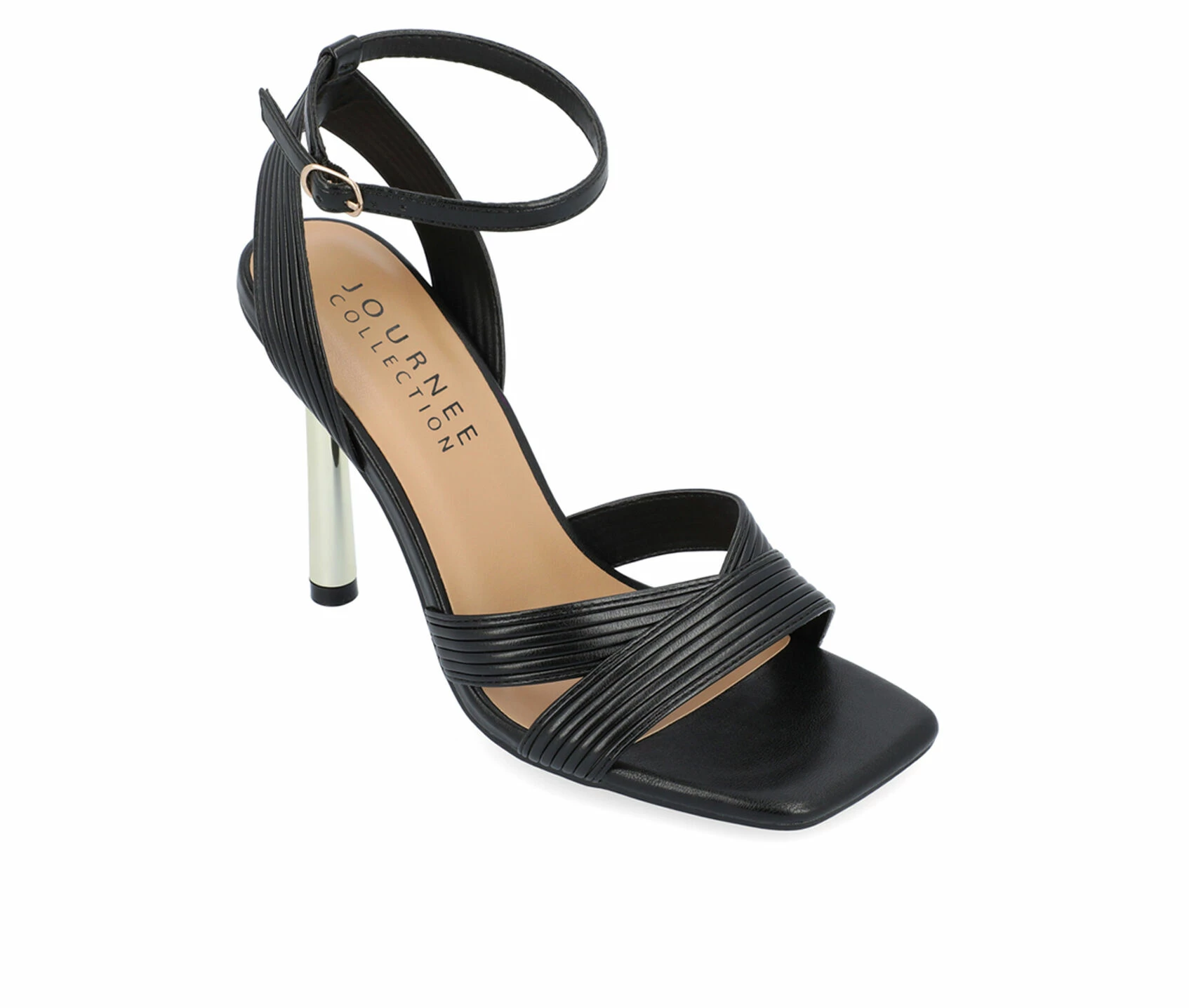 - Our Annett heels from Journee Collection will bring you compliments from every direction. With their luxe vegan leather, inset metal stiletto heel, buckled strap, and crisscross details, you will surely find yourself wearing them on repeat. We finished the design with an open square toe and a 4 mm Tru Comfort Foam™ insole to give you some comfort.