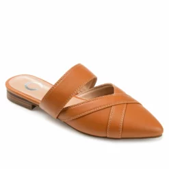 - Our Anyah block heel flats from Journee Collection will have you walking out of your house with a boost of confidence. Leaving your shoes complimenting your outfit with their padded insole, luxe vegan leather, ankle cuff design, caged detail, and almond toe shape. The slip-on closure will leave your outfit keeping that glow without any straps getting in the way.
