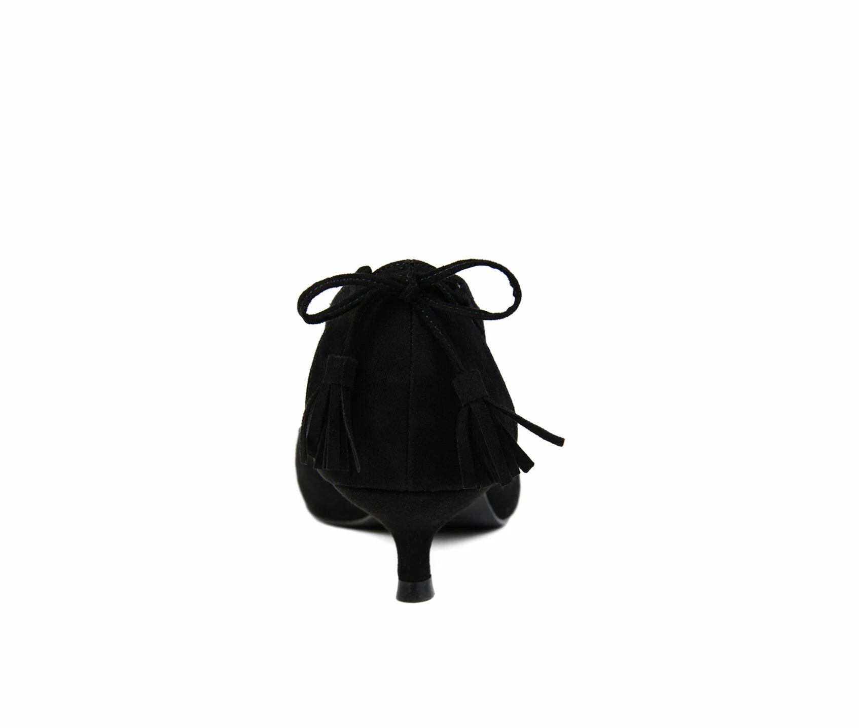 - Pointed toe perfection comes with the Bindi heel by Journee Collection. This classic kitten heel features a sleek pointed toe with side cut-outs, and a fringe bow design. Unique and class combine to make this fabulous heel.