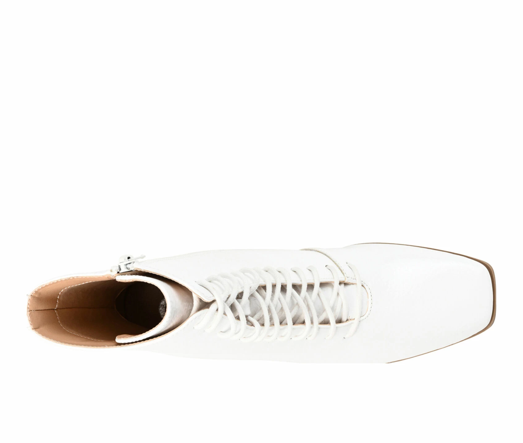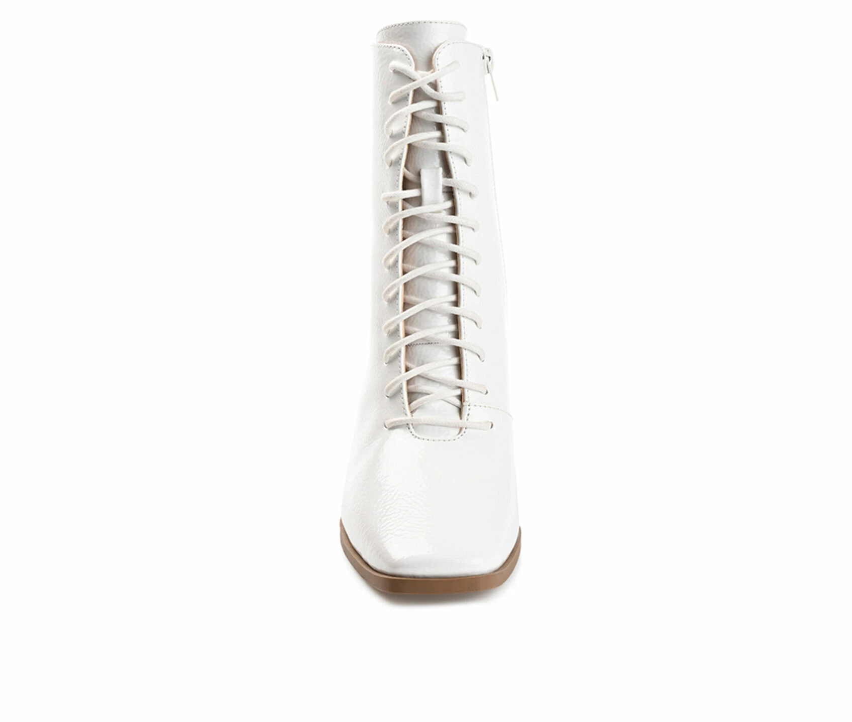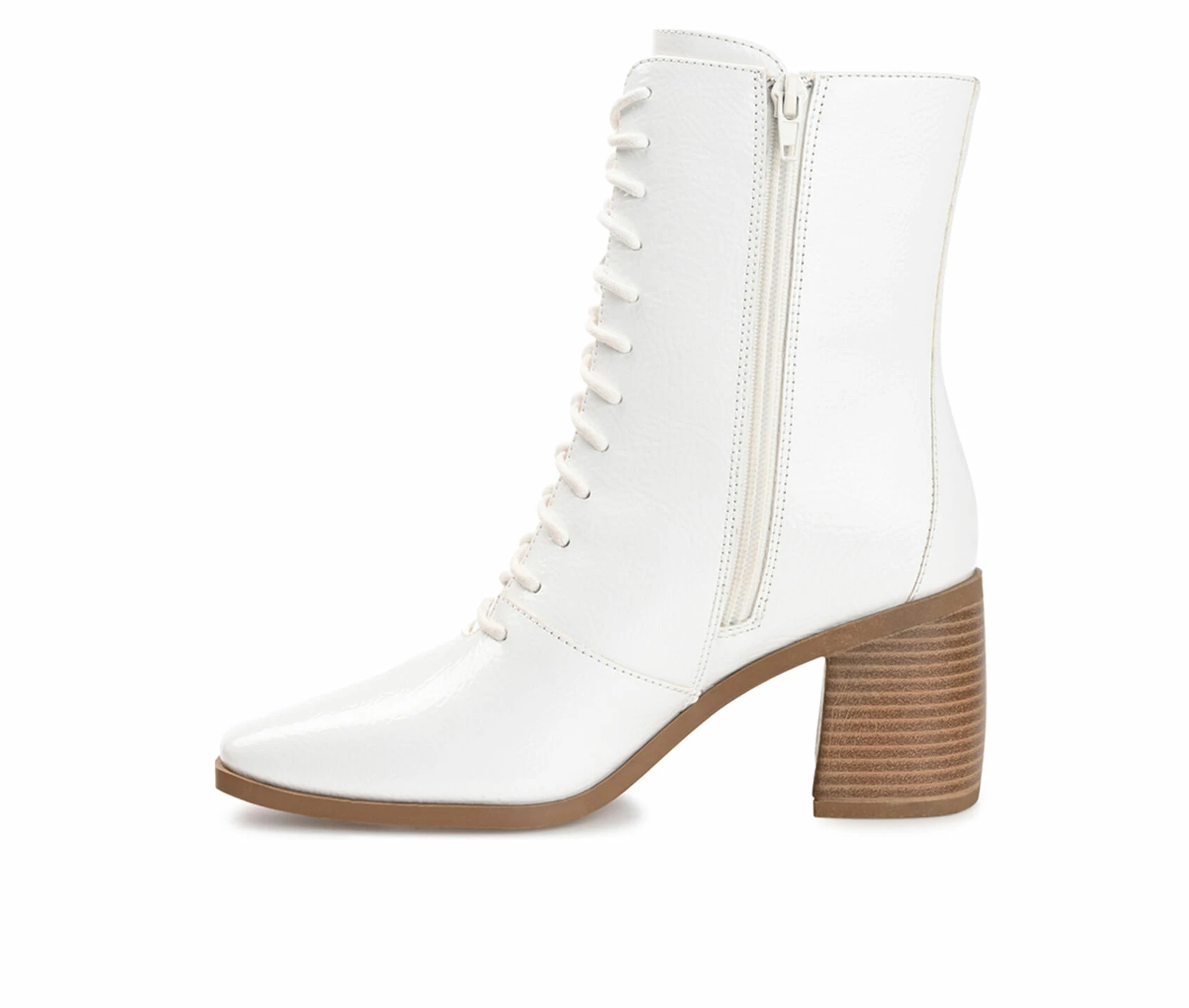 - From miniskirts to your favorite skinny jeans, the Covva booties by Journee Collection can handle almost any outfit. This modern take on a vintage silhouette features a square toe and patent vegan leather detailed with a decorative lace-up design. A walkable block heel, 4 mm Tru Comfort Foamâ„¢ footbed, and zipper entry make them a breeze to slip on and wear.