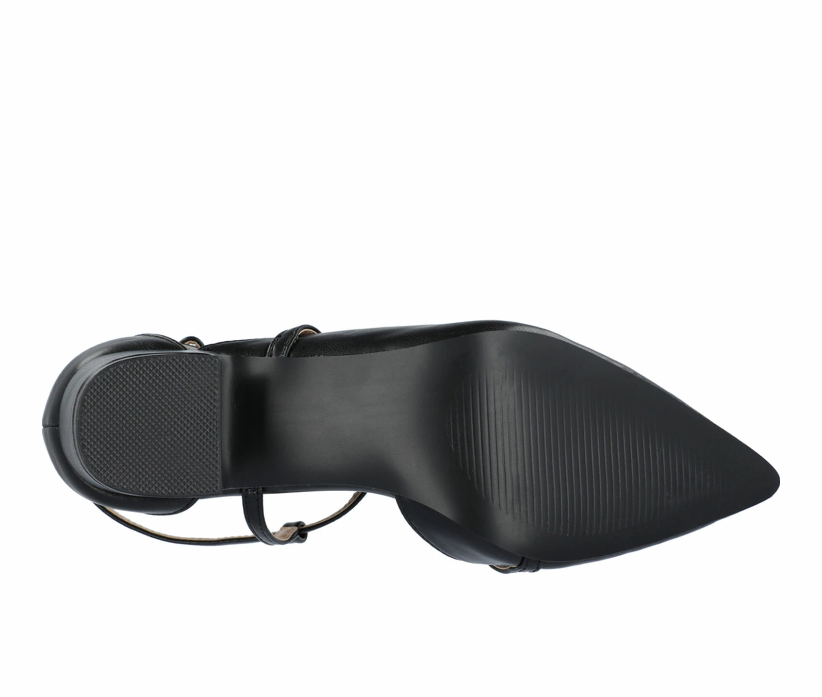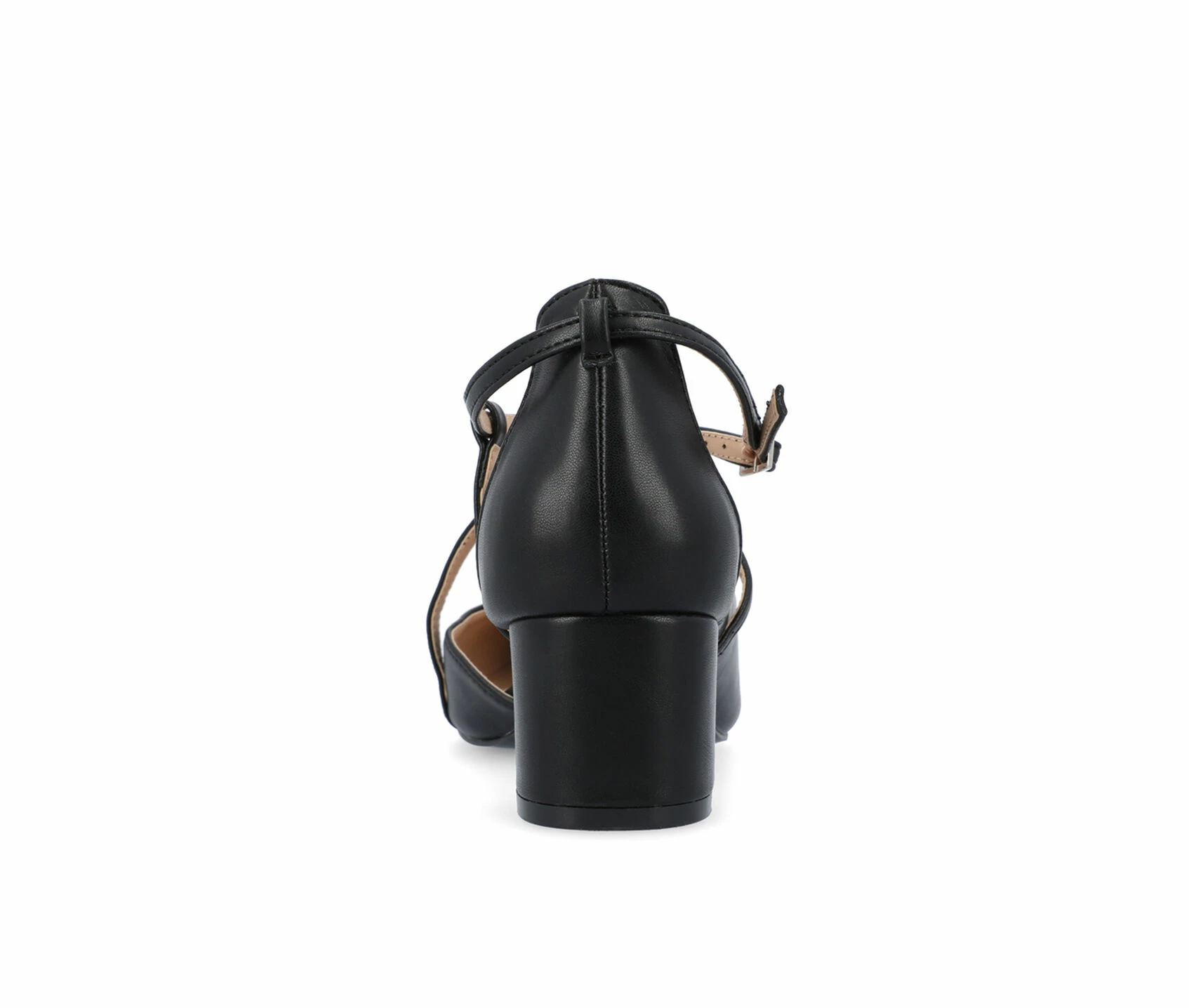 - Our Galvinn heels from Journee Collection will have your outfit looking better than ever. With their luxe vegan leather, multi-strap, and buckle, as well as their crisscross straps, this style is to attract your compliments. As a bonus, their pointed-toe shape and padded insole will take you from event to event in comfort and style.
