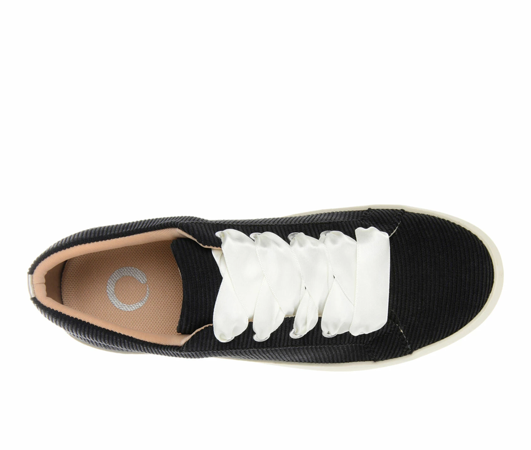- Liven up your everyday routine with the Kinsley by Journee Collection! This classic sneaker is rendered with corduroy uppers and satin laces for a fresh look. With a 4 mm Comfort Foamâ„¢ footbed and a thick white sole, you’ll never want to take them off.