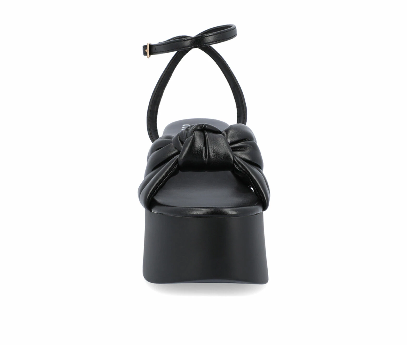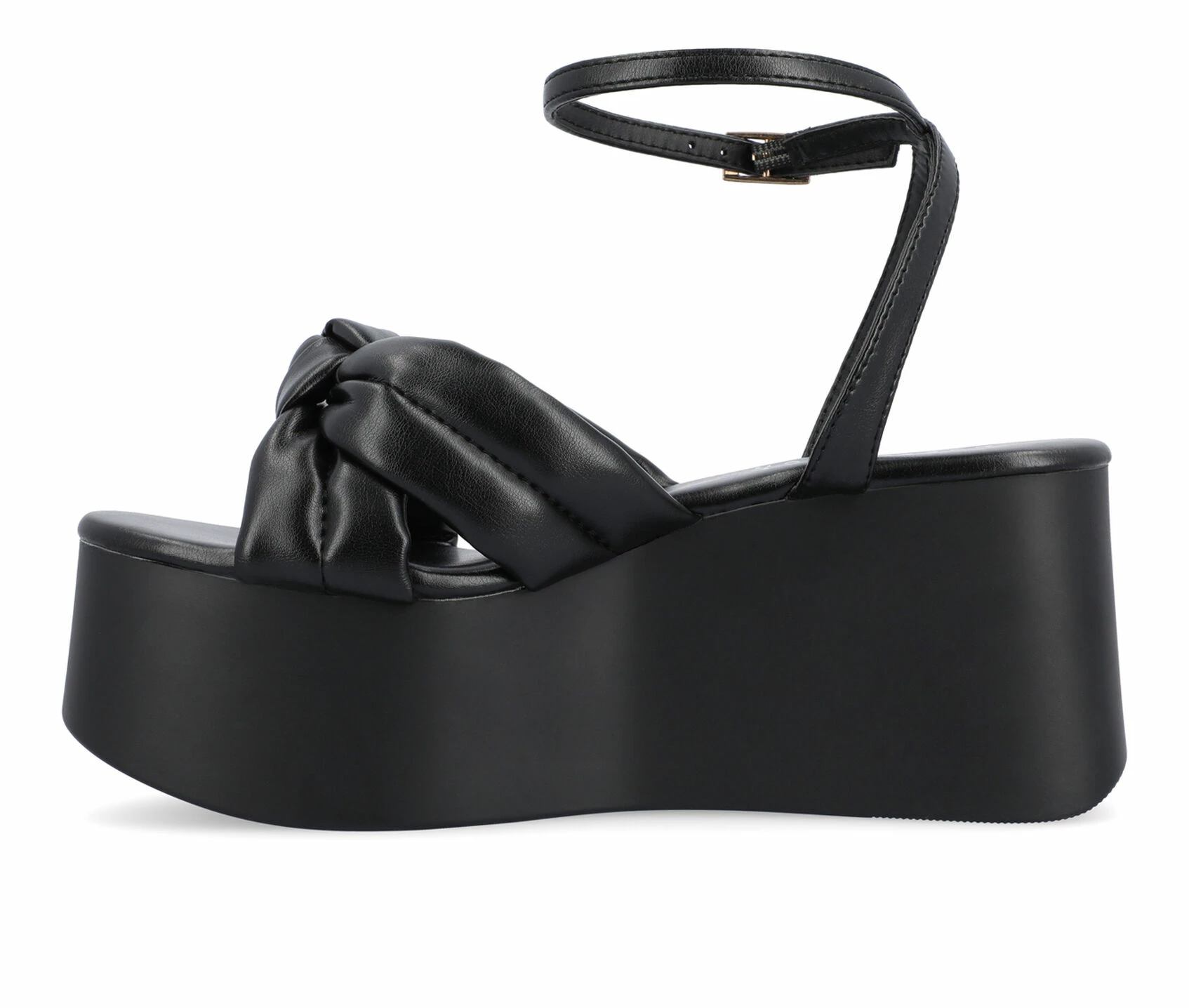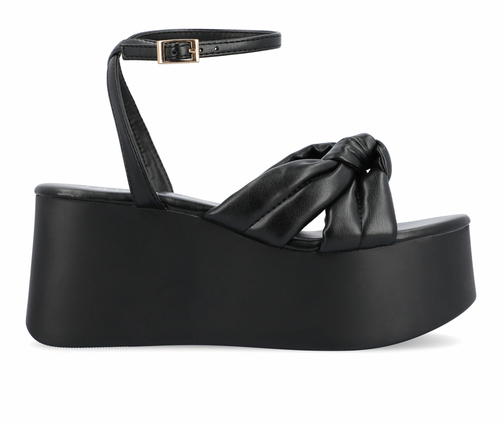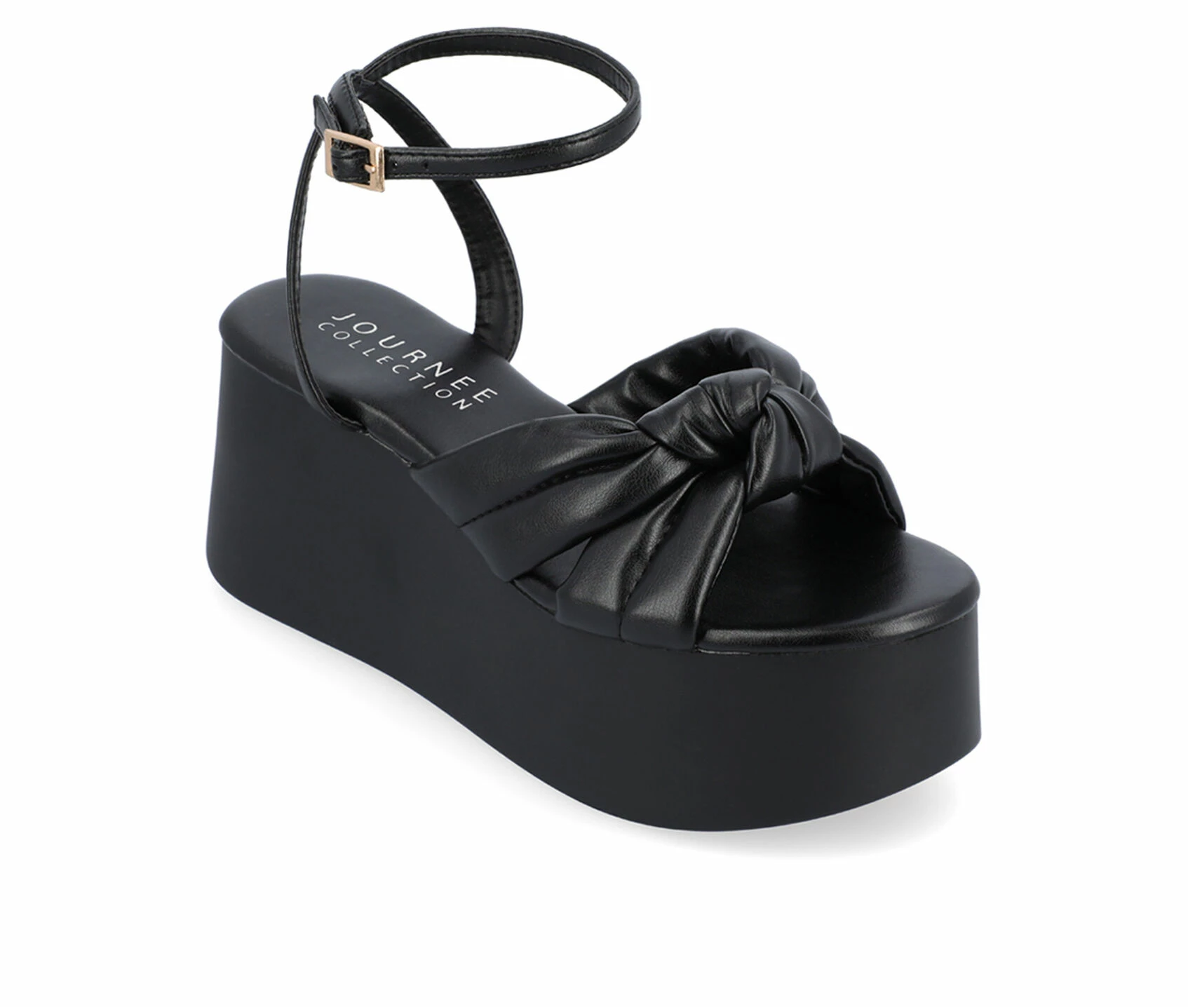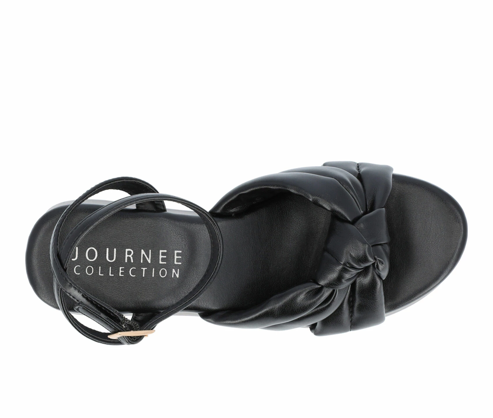 - Our Lailee sandals from Journee Collection will give you the style and comfort you need in one. With fabric uppers, platform heel, crisscross details, and 4 mm Tru Comfort Foam™ insole, you’ll find yourself wearing them with everything. Their open round-toe shape makes for the perfect finishing touch to compliment any and all of your outfits.