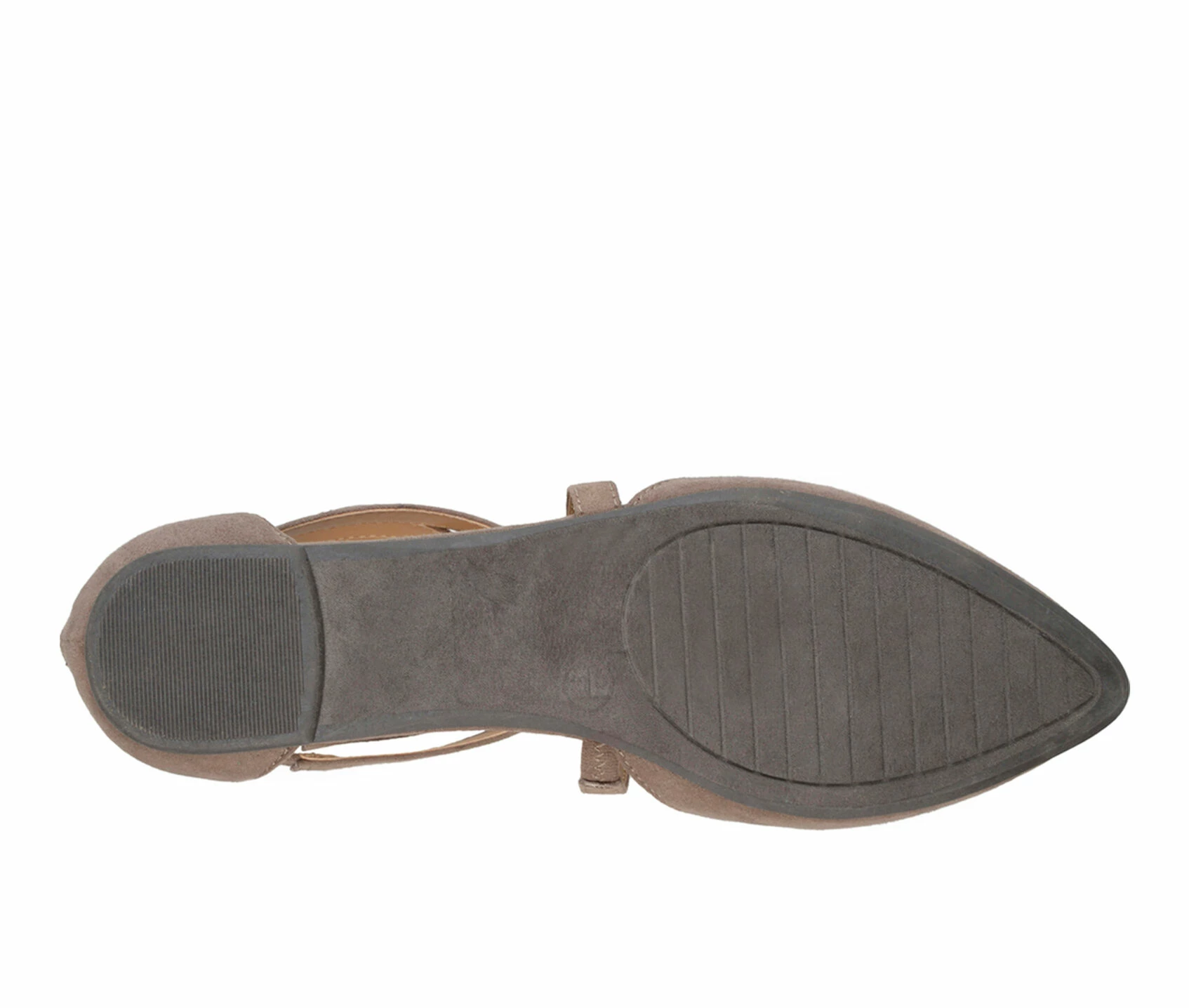 - Step into stylish design with the Marlee ankle wrap strap flats by Journee Collection. These chic flat shoes feature faux suede uppers with a strappy style that wraps up the ankles. A pointed-toe design and closed back heels with zipper accents finish the look.