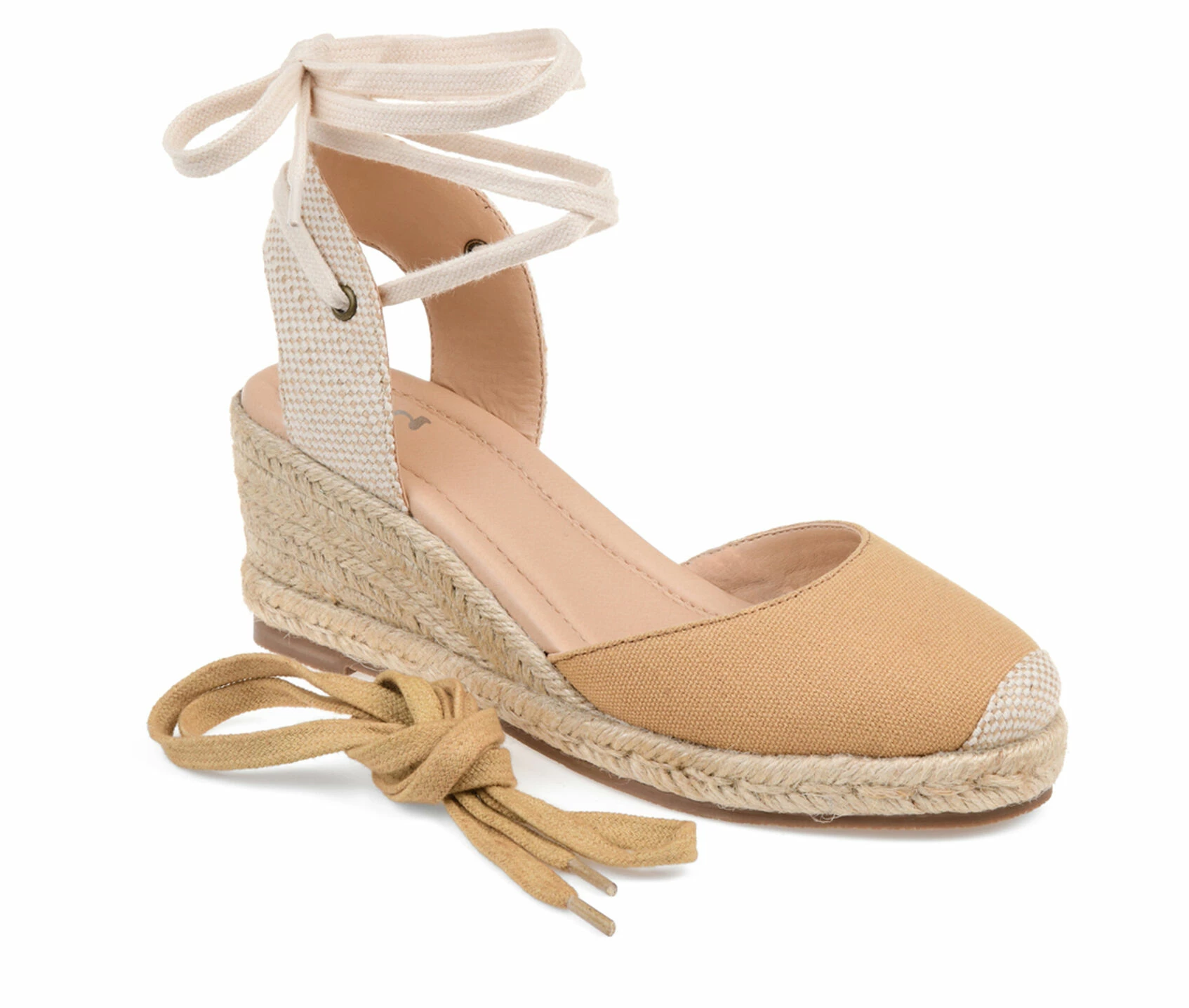 - Step into chic style with our newest addition to the Journee Collection line, the Monte. The Monte wedge features espadrille material, a round toe, interchangeable wrap-up laces, and an open back. Just when you thought this shoe couldn�t be more perfect, it�s also a part of our comfort line made just for those long days of looking fabulous!