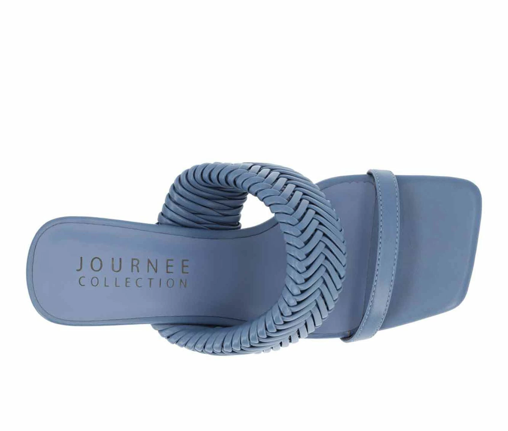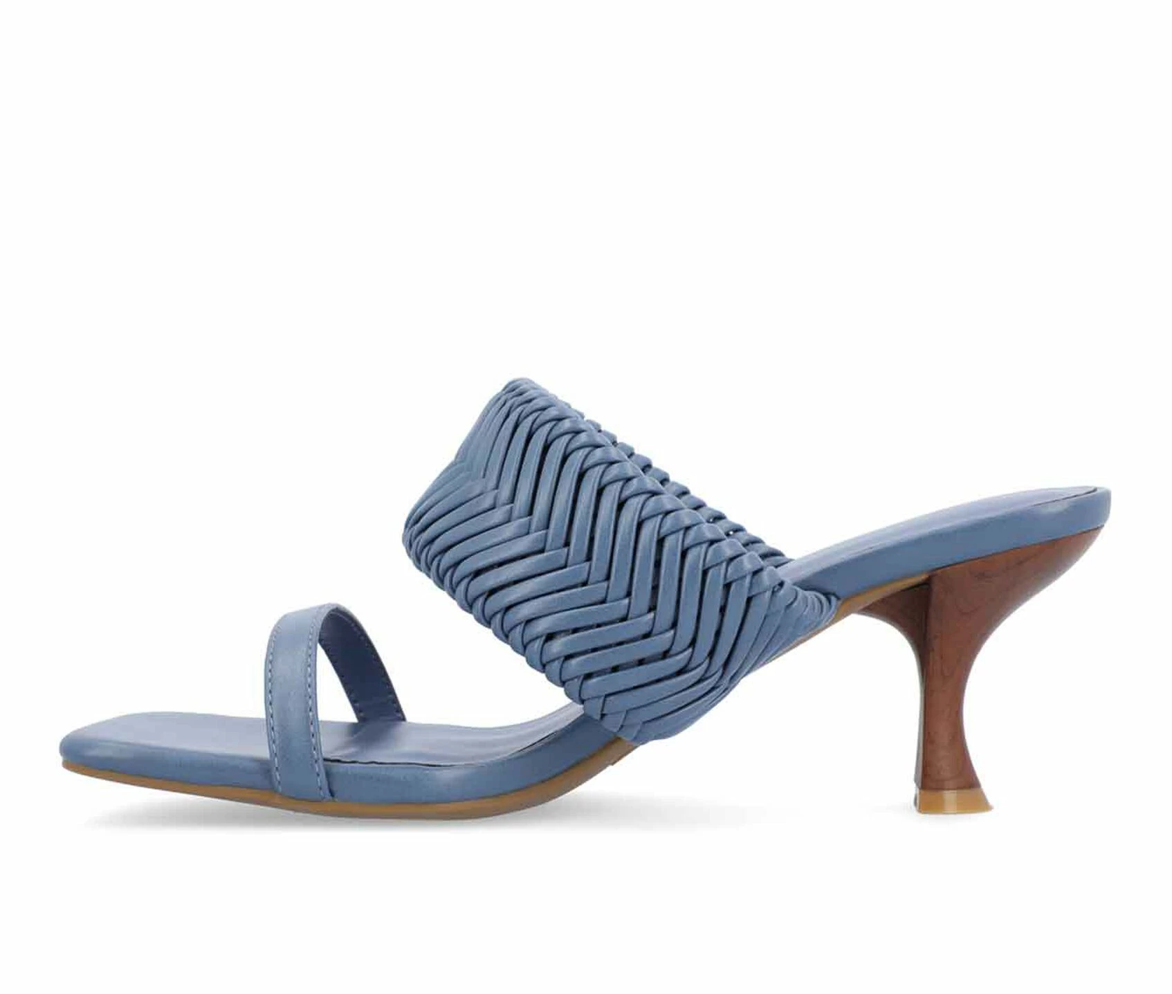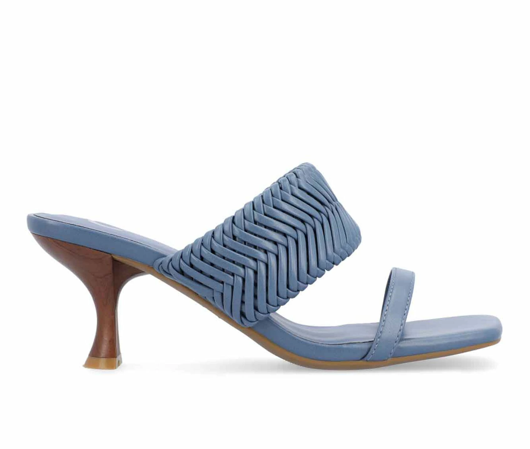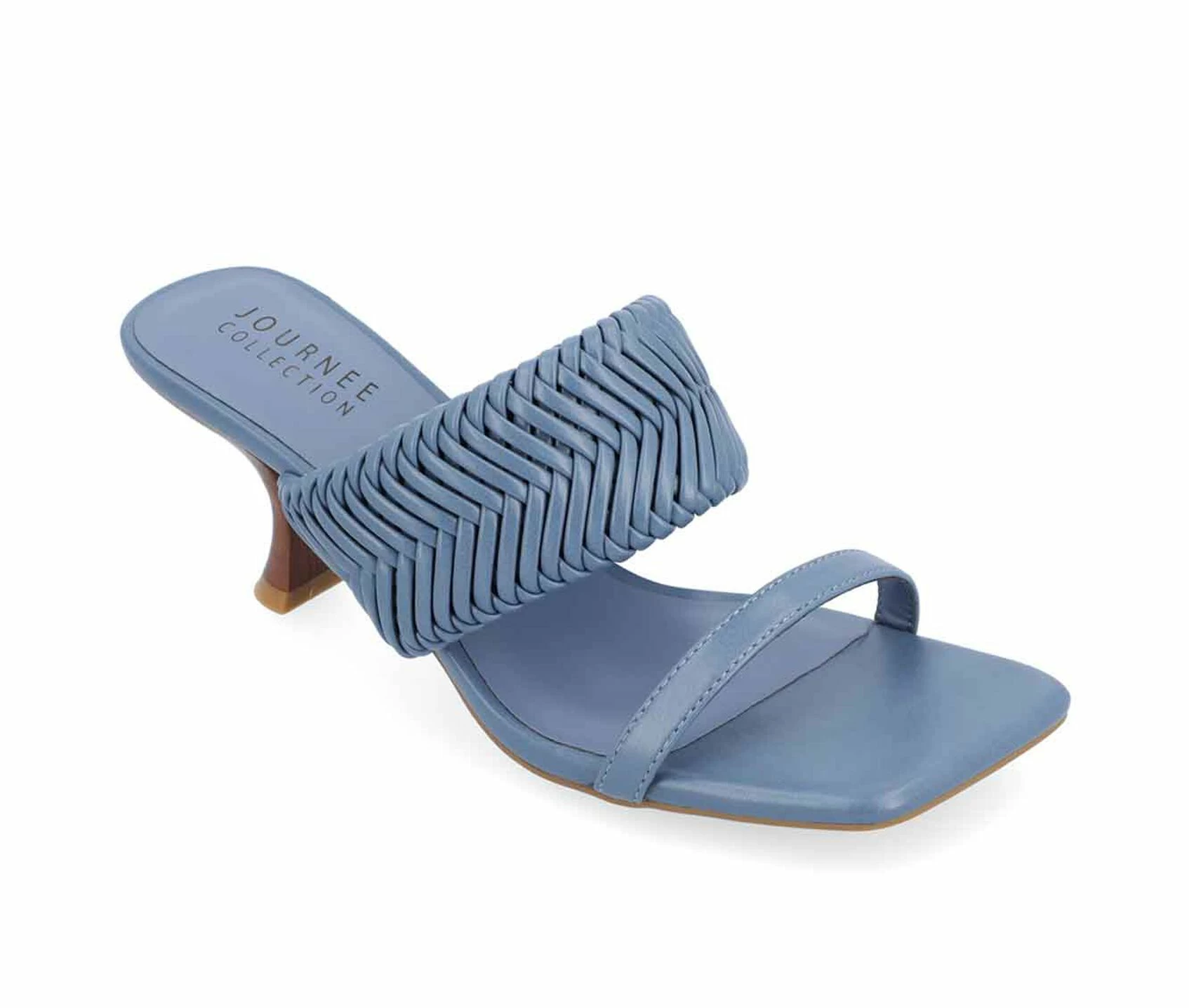- Our Monyka stiletto heel from Journee Collection will be the comfiest heel you’ve ever put on with their 4 mm Tru Comfort Foamâ„¢ insole. As well as comfort, you will have all the style you could dream of with their luxe vegan leather, woven band mule style, and open square toe. To keep it simple, they’re slip-on, perfect for last-minute plans when you have to rush out the door.