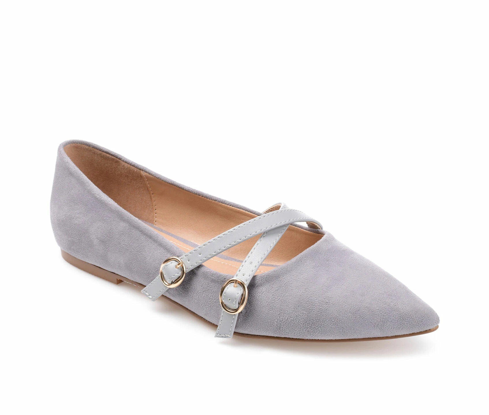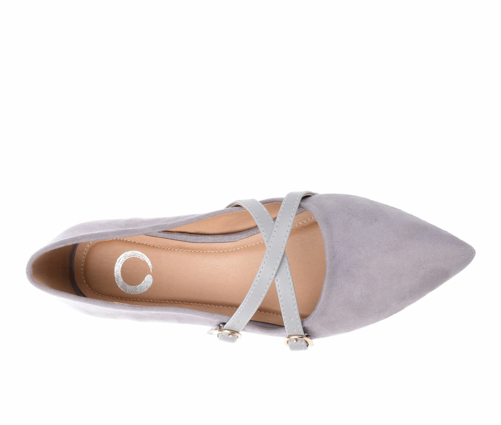 - Brace yourself for a flood of compliments in the Patricia flats by Journee Collection! A padded insole and soft vegan leather uppers shaped this comfortable flat into the perfect weekday go-to, while the crisscrossed buckled straps add a modern twist, and a pointed-toe perfects the look.