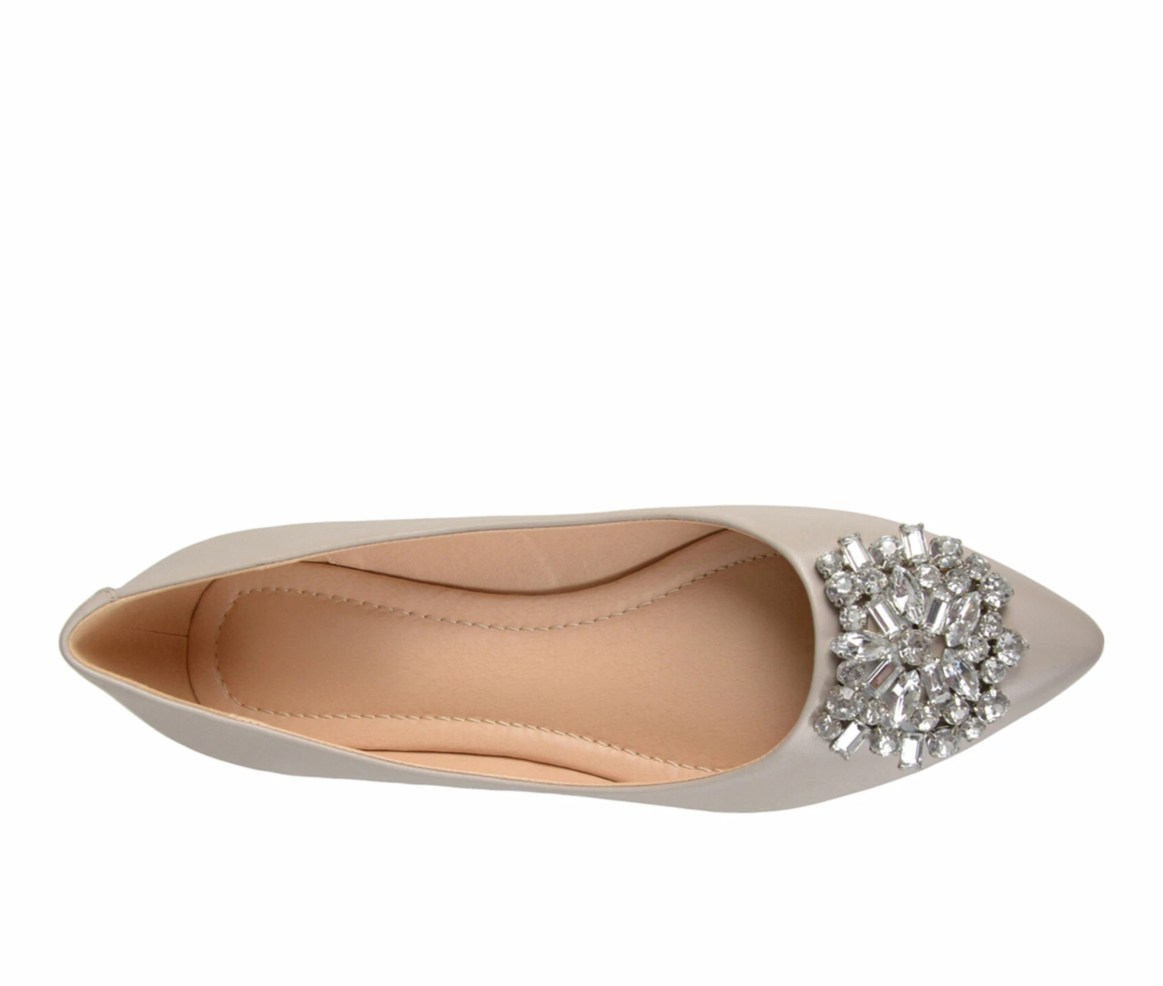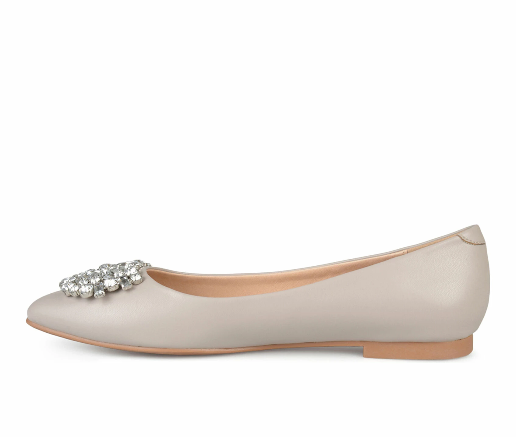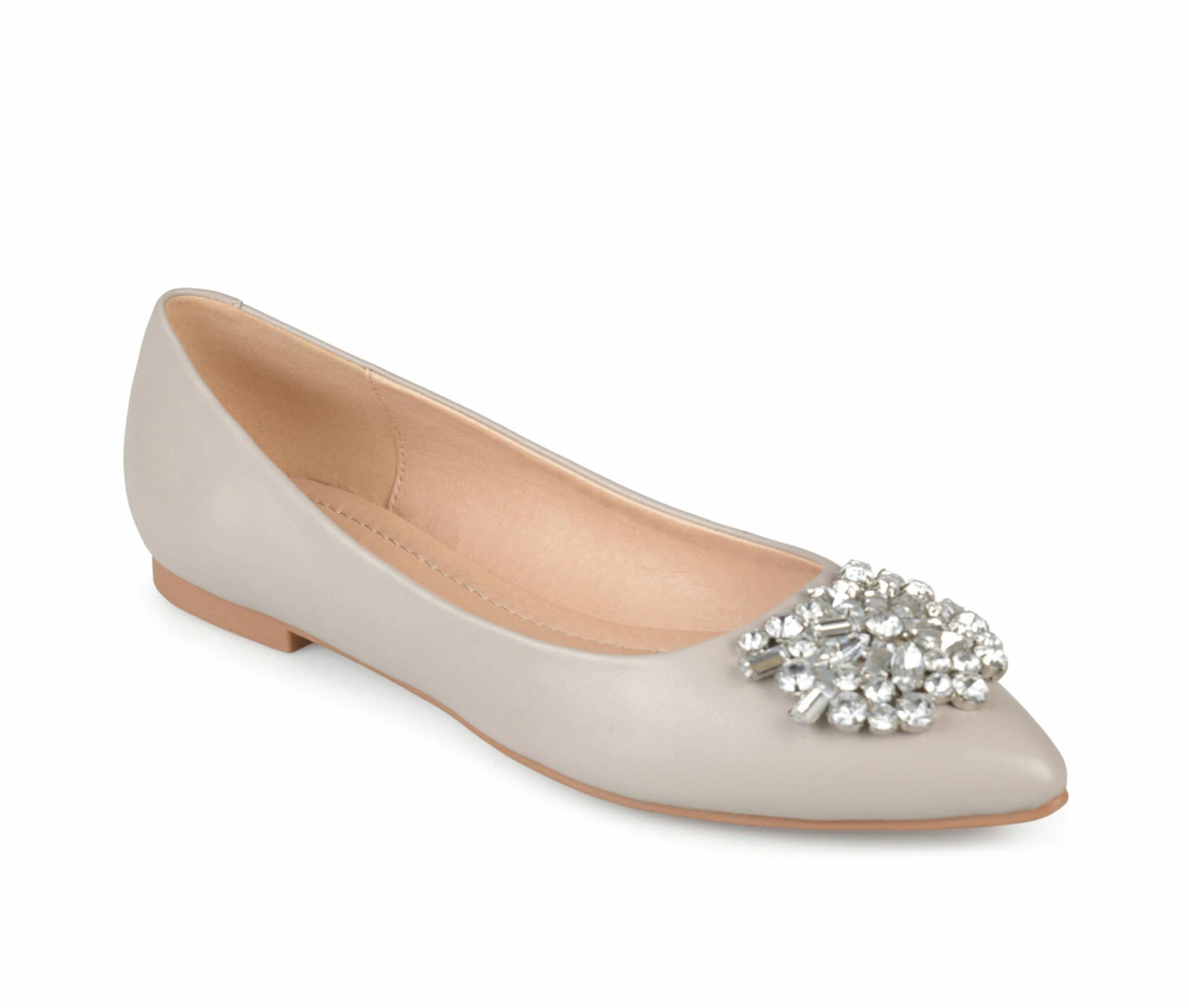 - Step into elegant style with the Renzo flat by Journee Collection. These flats feature jeweled clusters on a pointed toe style which compliments the sleek silhouette. Padded insoles create a comfortable fit to complete the design.