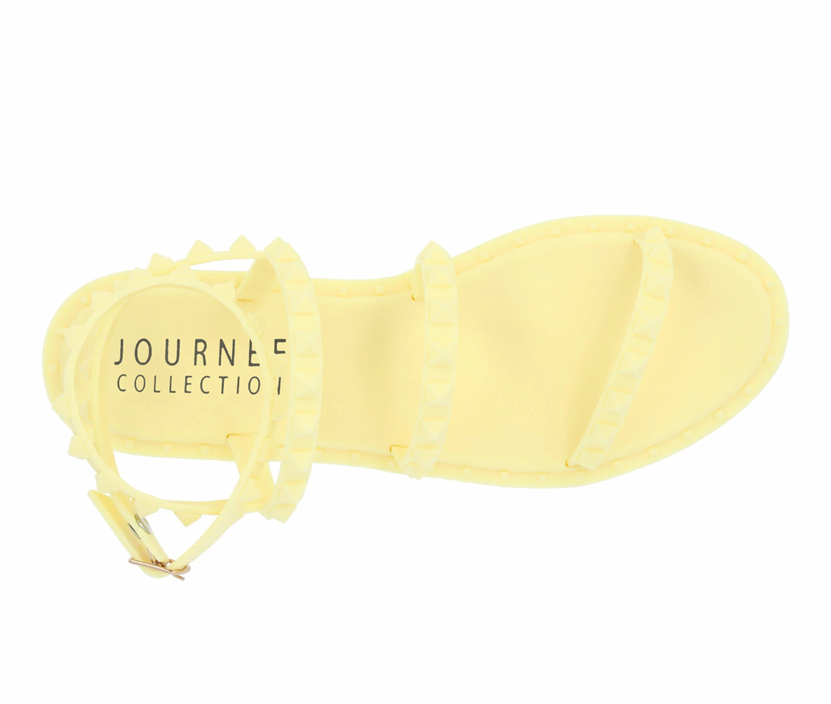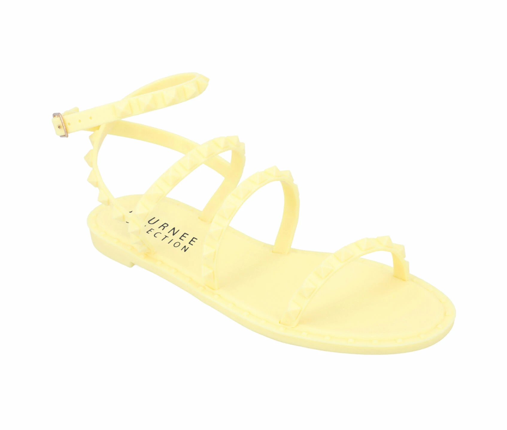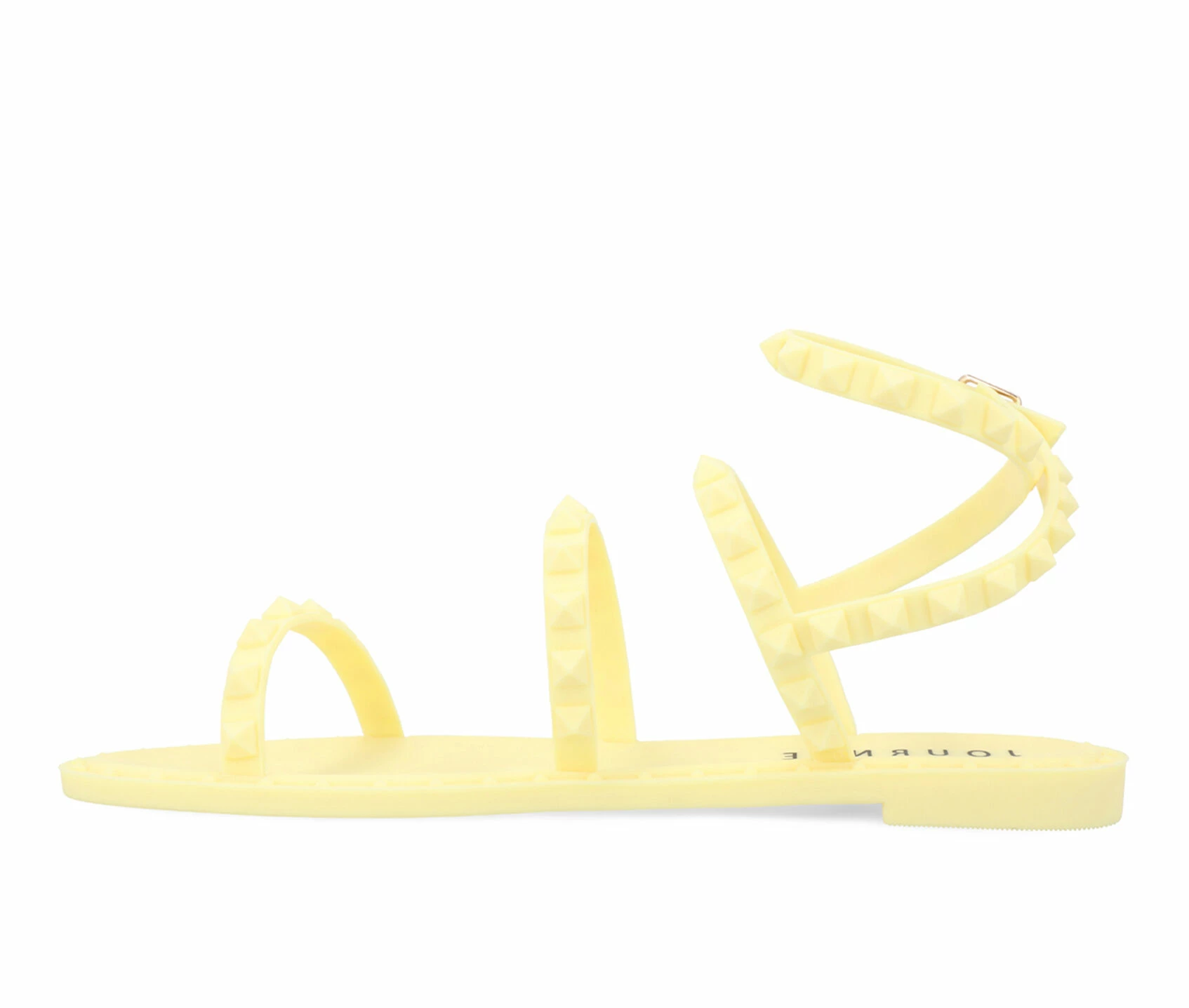 - The Saphira sandal from Journee Collection will have you going from work to dinner in style with its flexible jelly material, multi-strap design, buckle ankle strap, and open round toe. This design will let you walk around in a shoe that will keep your feet comfortable time and time again with their padded footbed. To keep it simple, their buckle closure will add the most simple yet perfect finishing touch to your outfit.