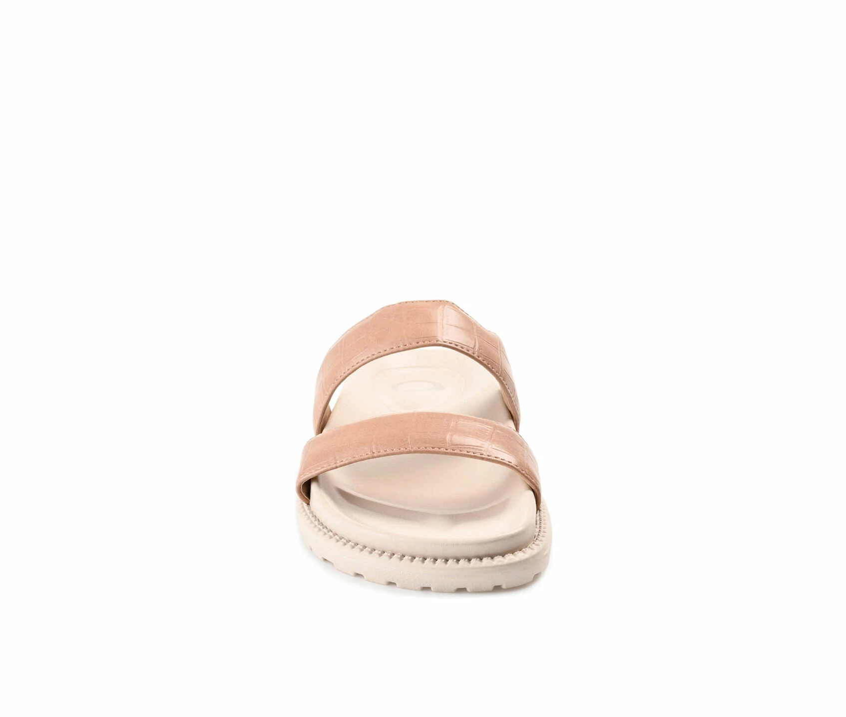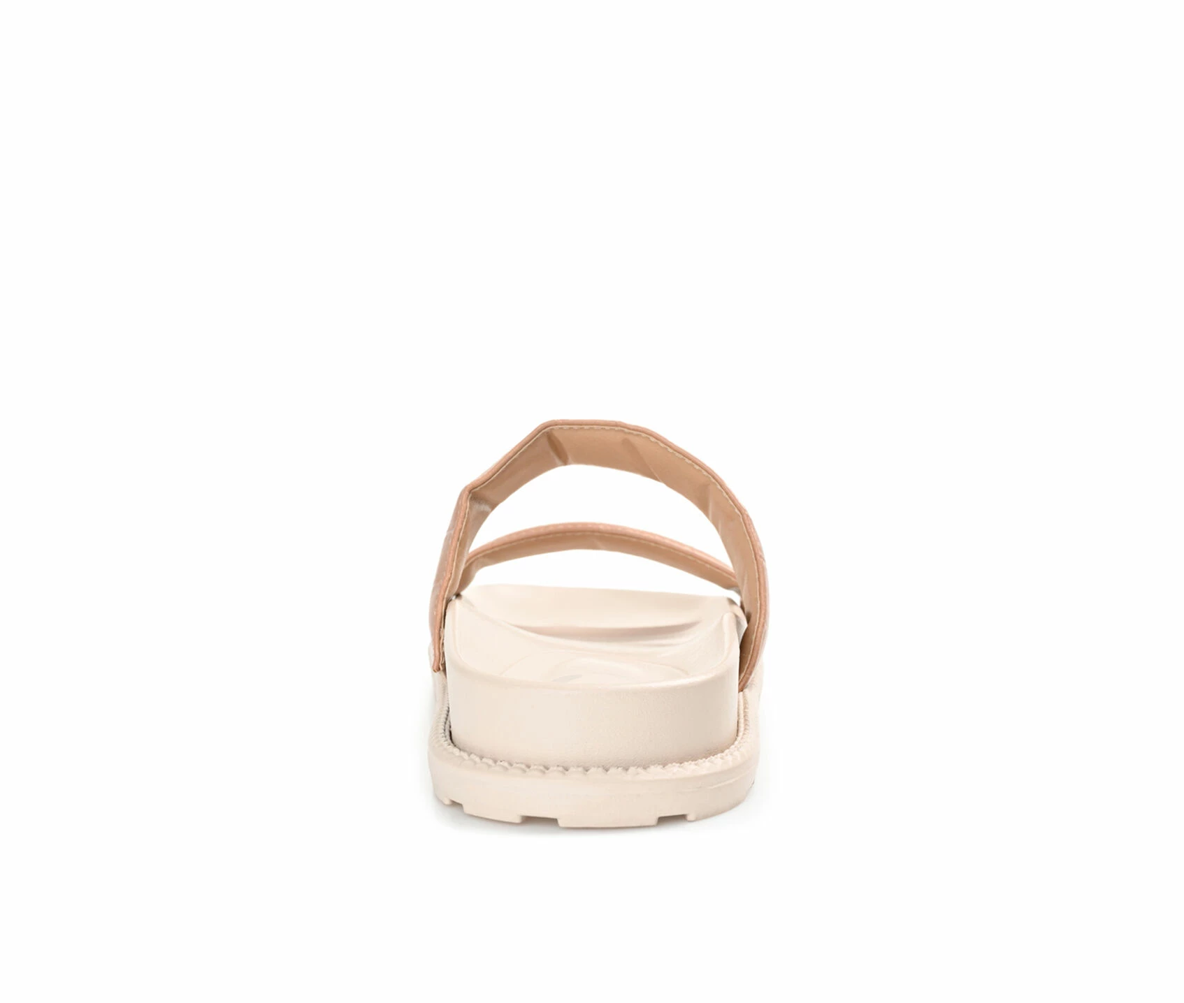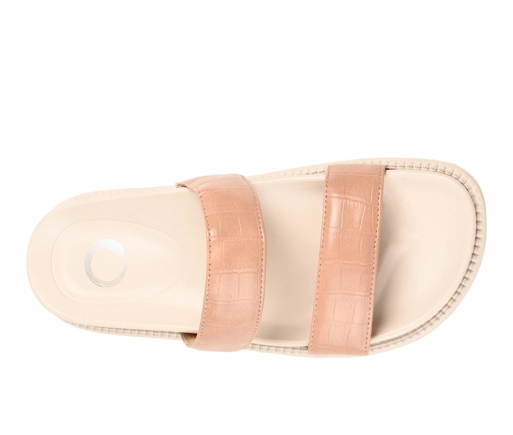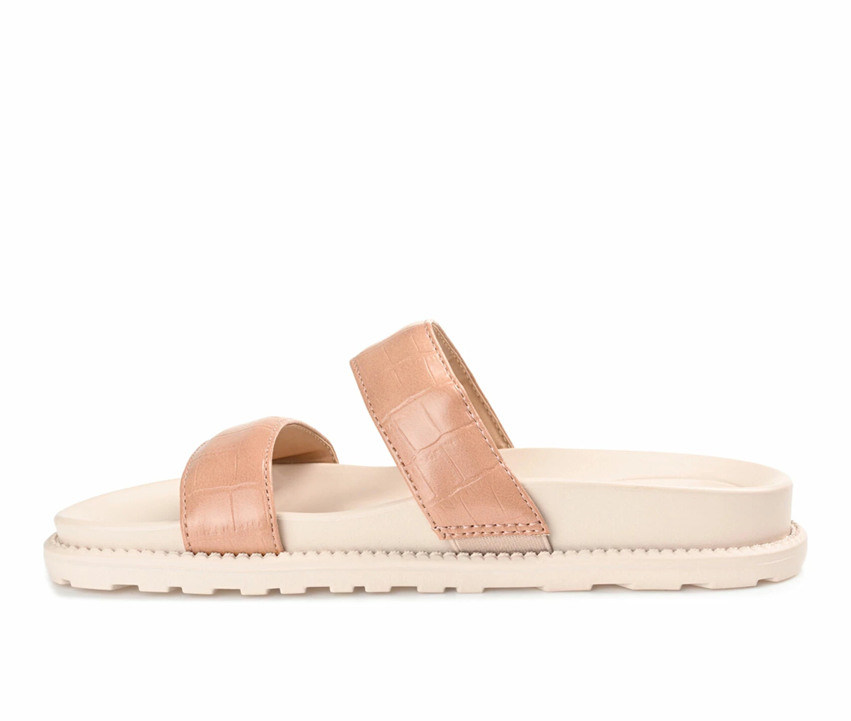 - Show off your pedi in the Stellina sandal by Journee Collection. This effortlessly cool slide features a padded insole and supple vegan leather for all-day comfort and support. Double straps with croc-inspired details add a bold touch.