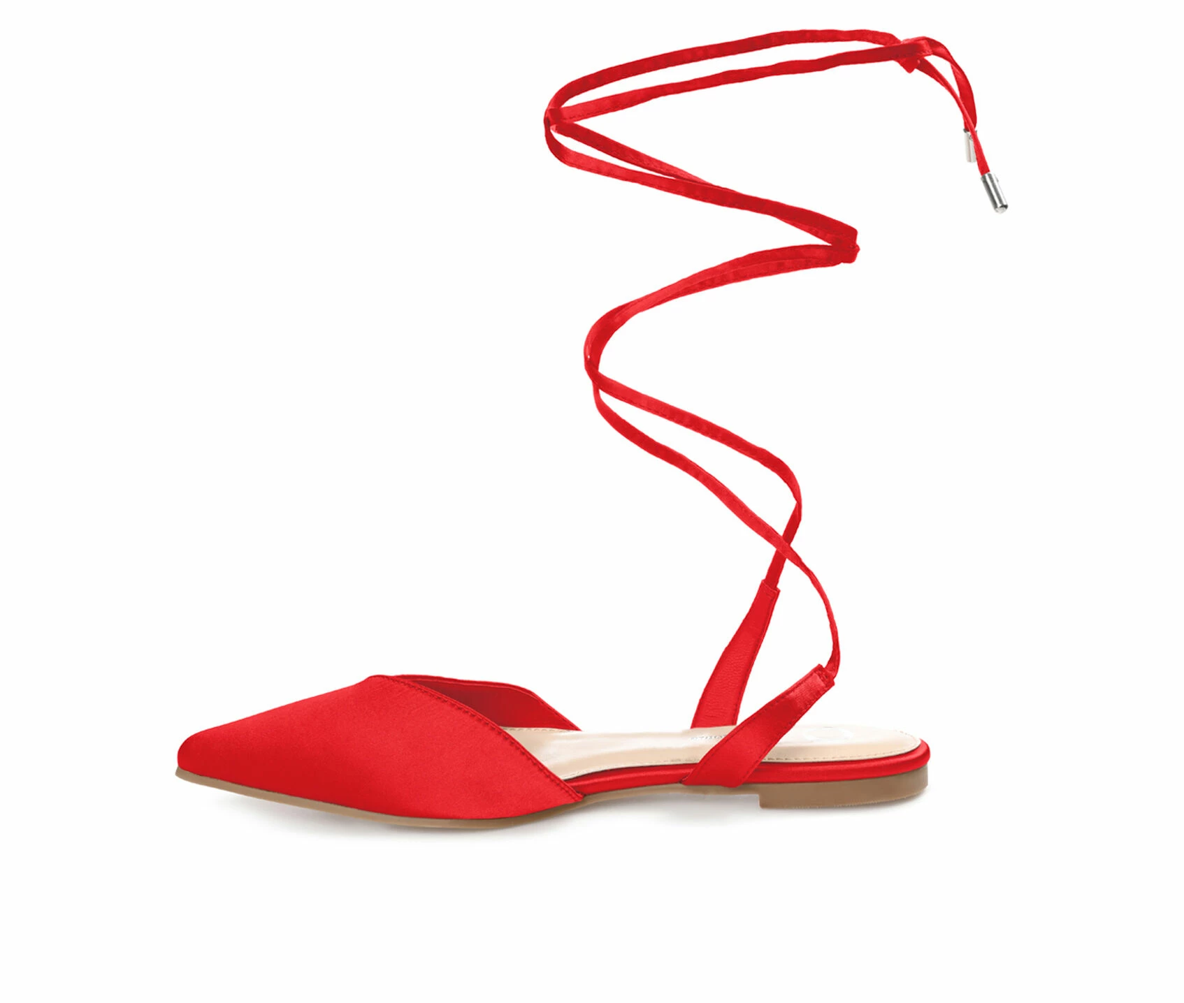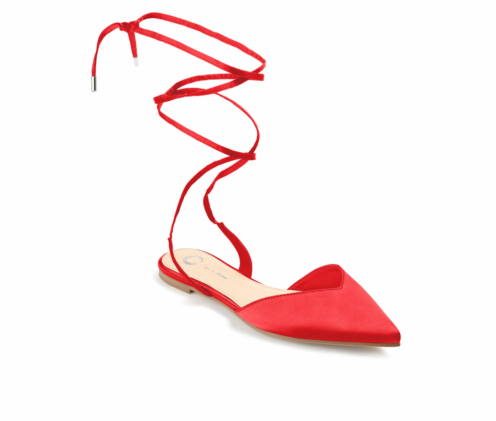 - A party look without the fuss, the Theia by Journee Collection. This pointed-toe flat features silky satin uppers topped with a wraparound tie at the ankle for a ballet-inspired look. A 4 mm Tru Comfort Foamâ„¢ insole grounds the design for extra support.