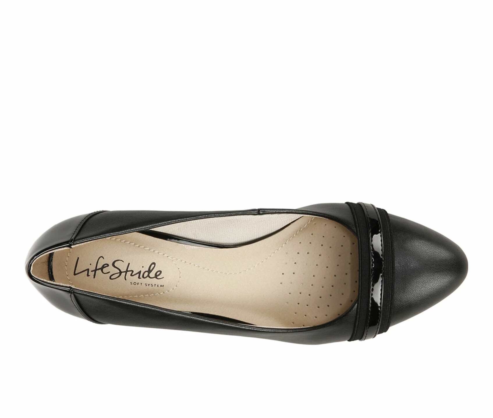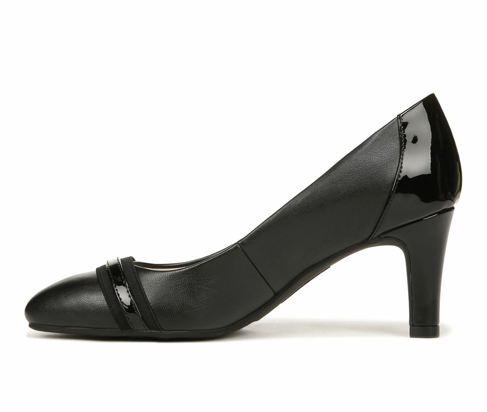- Timeless pumps ready for anything. These comfortable heels, part of our Giovanna collection, with 24/7 comfort are a must for work and dressing up. Faux leather upper with an almond toe, slip-on fit, and strap detail at the toe. Soft System® comfort package provides all-day support, flex, and cushioning. Traction sole for extra stability. Just Right Height 2 3/4 inch heel.