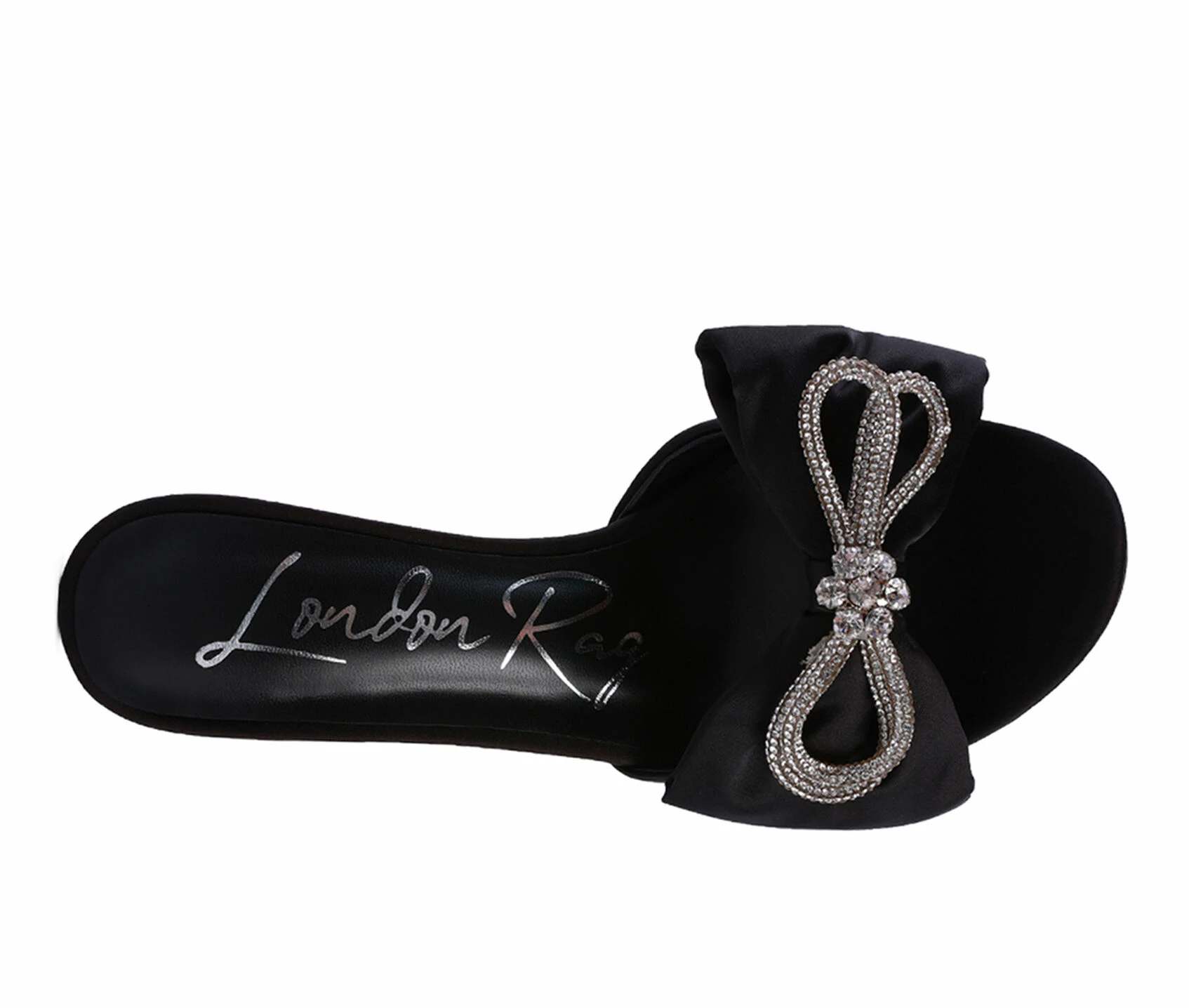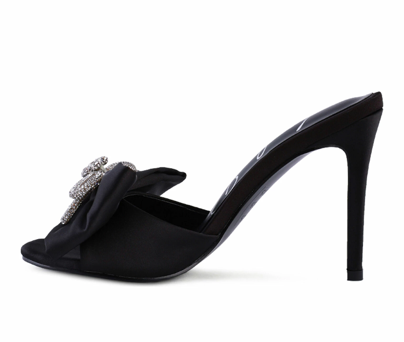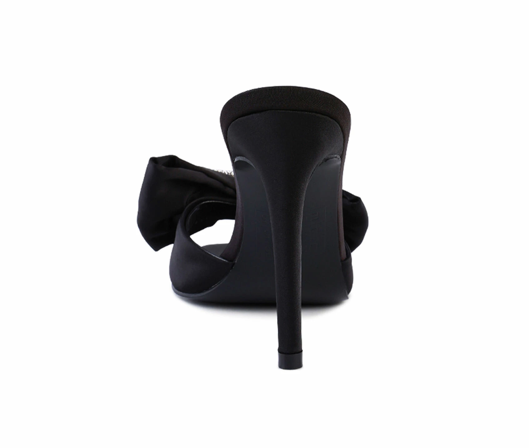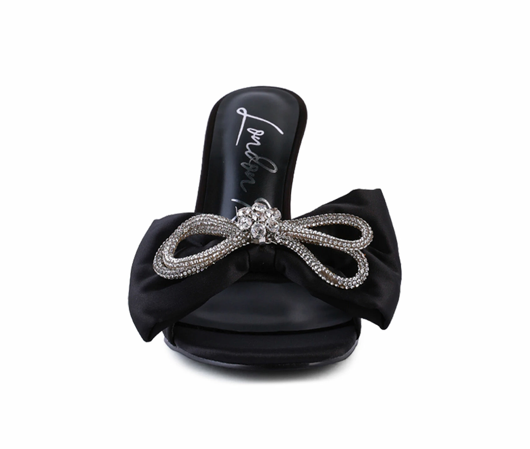- A Cinderella shoe – the cute bow tie detail which is enhanced with addition of rhinestone studded piece looks levitating. The satin high heeled shoe is a delicate statement.