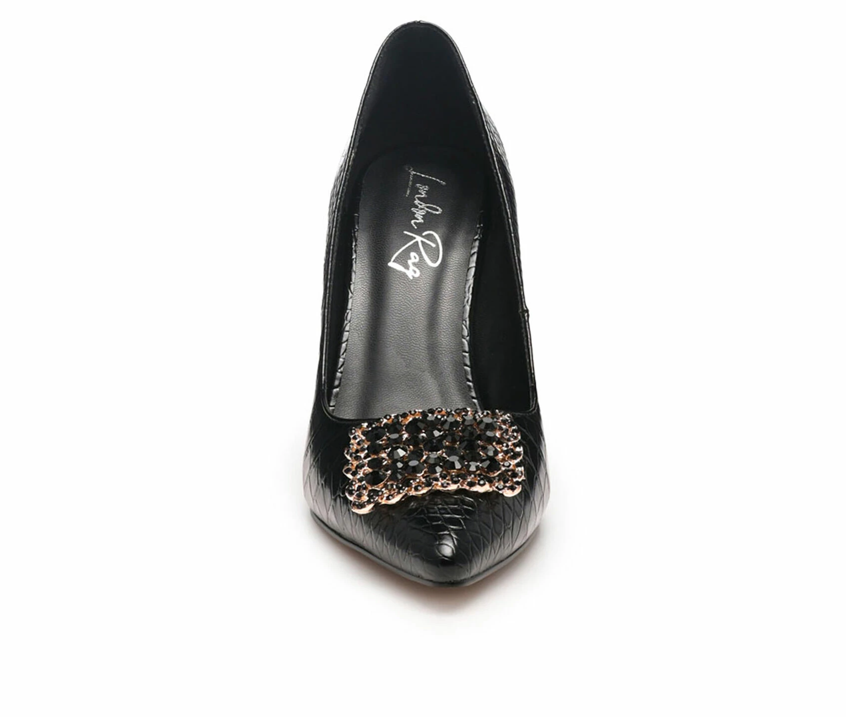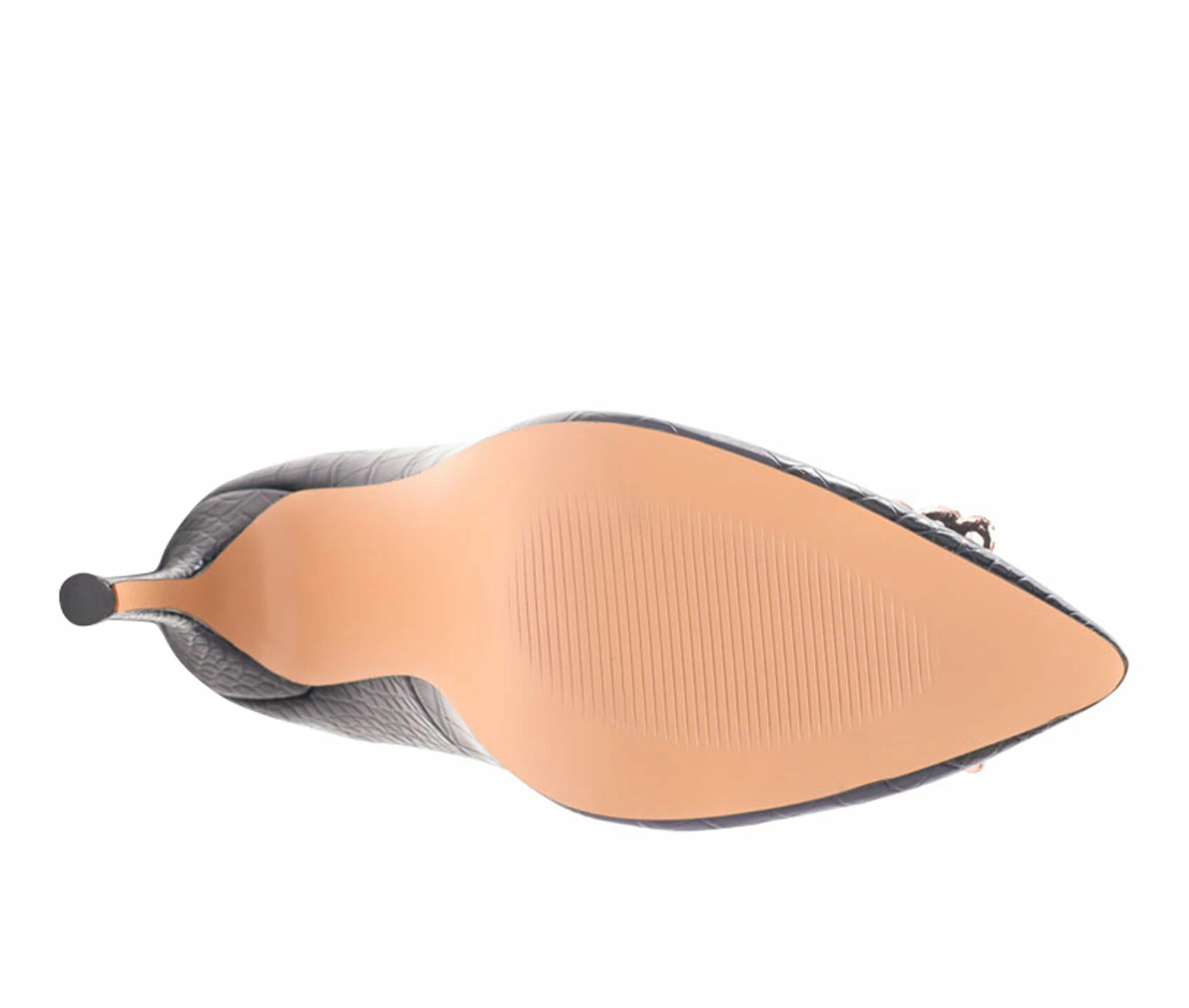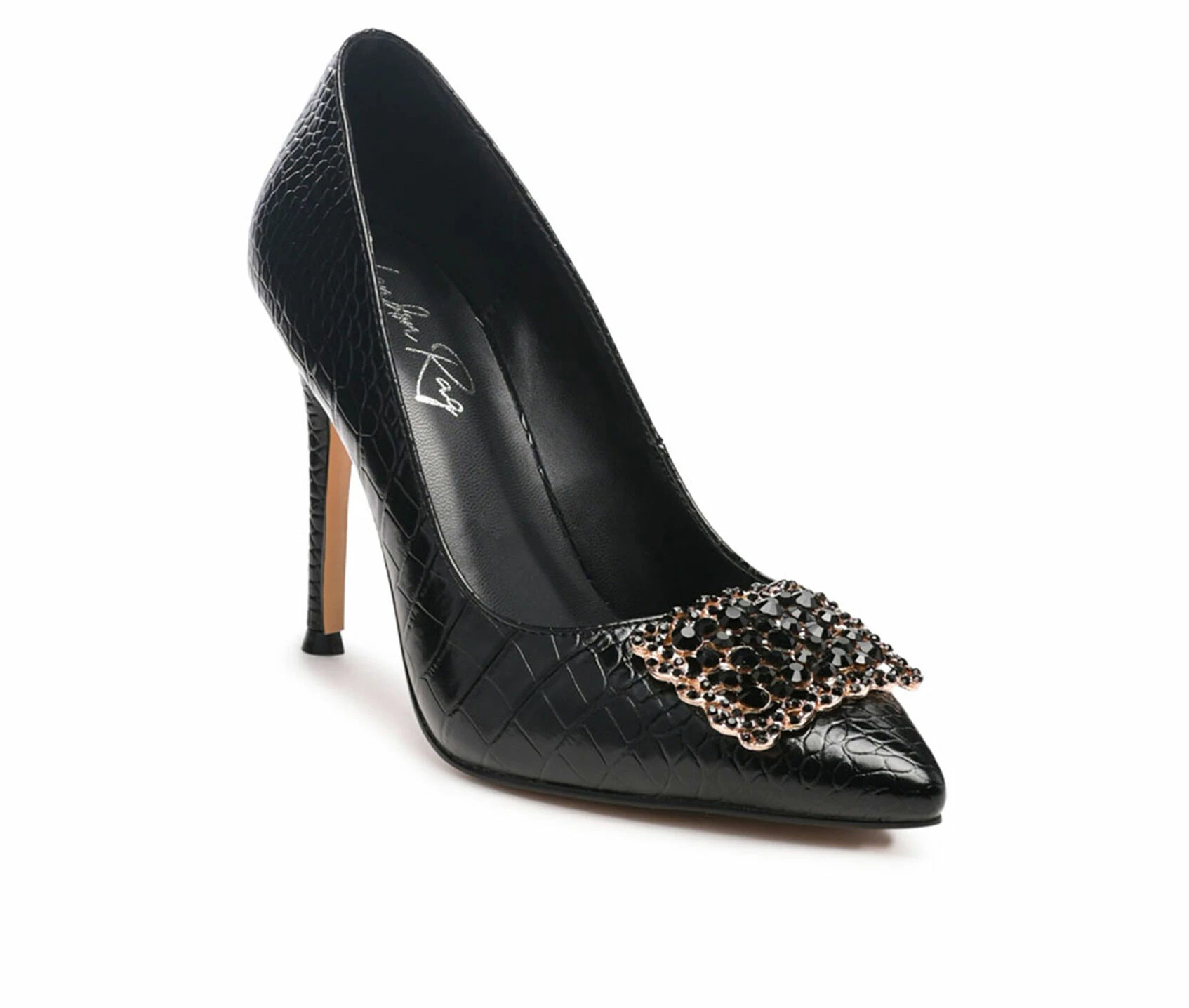 - Beautiful pair of Faux Leather Pumps with crystal lined square brooch on top. What else do we need this evening?