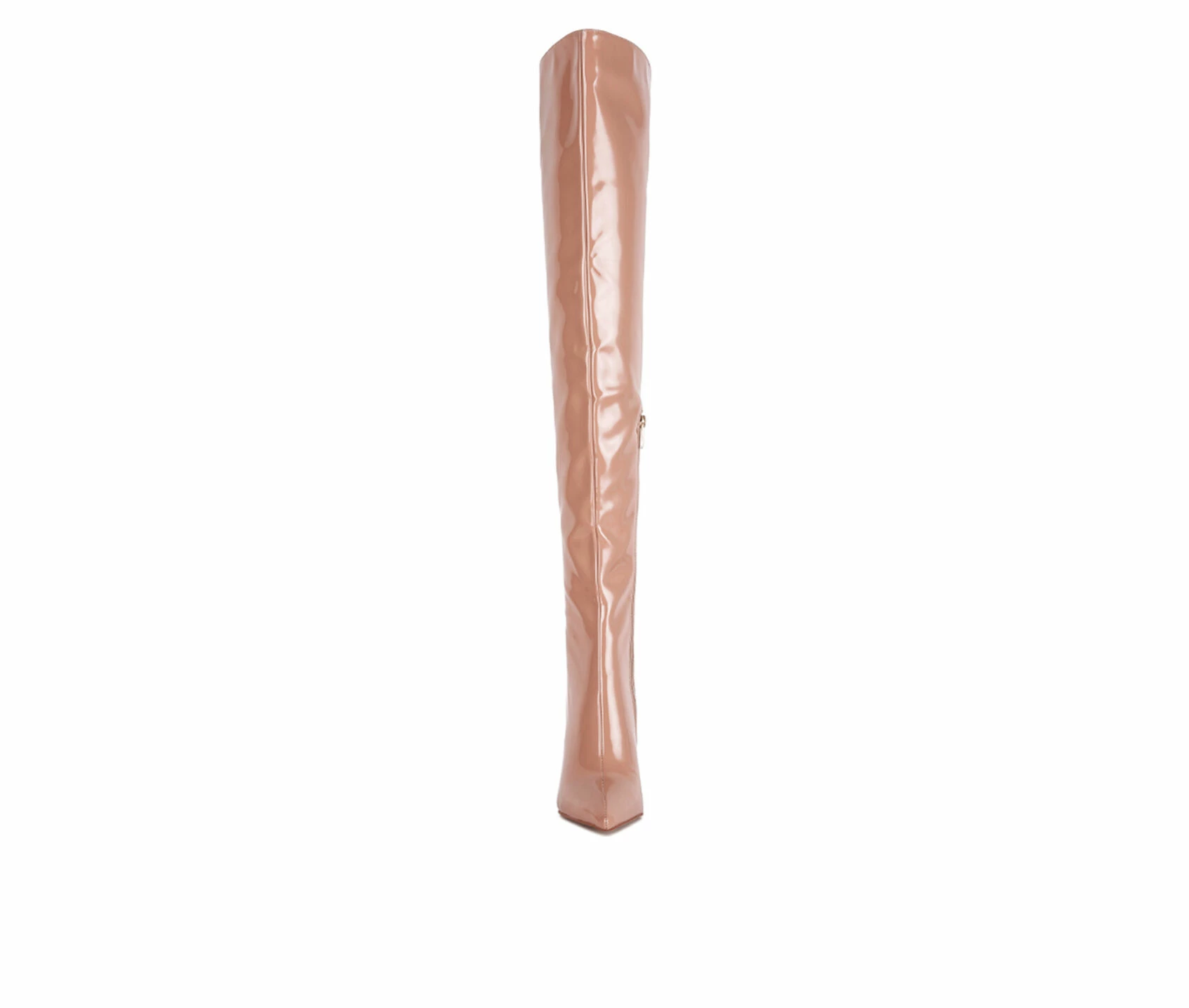 - Stiletto high heel boots are the perfect footwear for a night out on the town. They look lovely on your legs and are attractive and fashionable. The twin zipper facility provides excellent stability and support. Look sharp, petite, and dazzling in this pair of stretch Patent PU long boots which is worth every dollar spent.