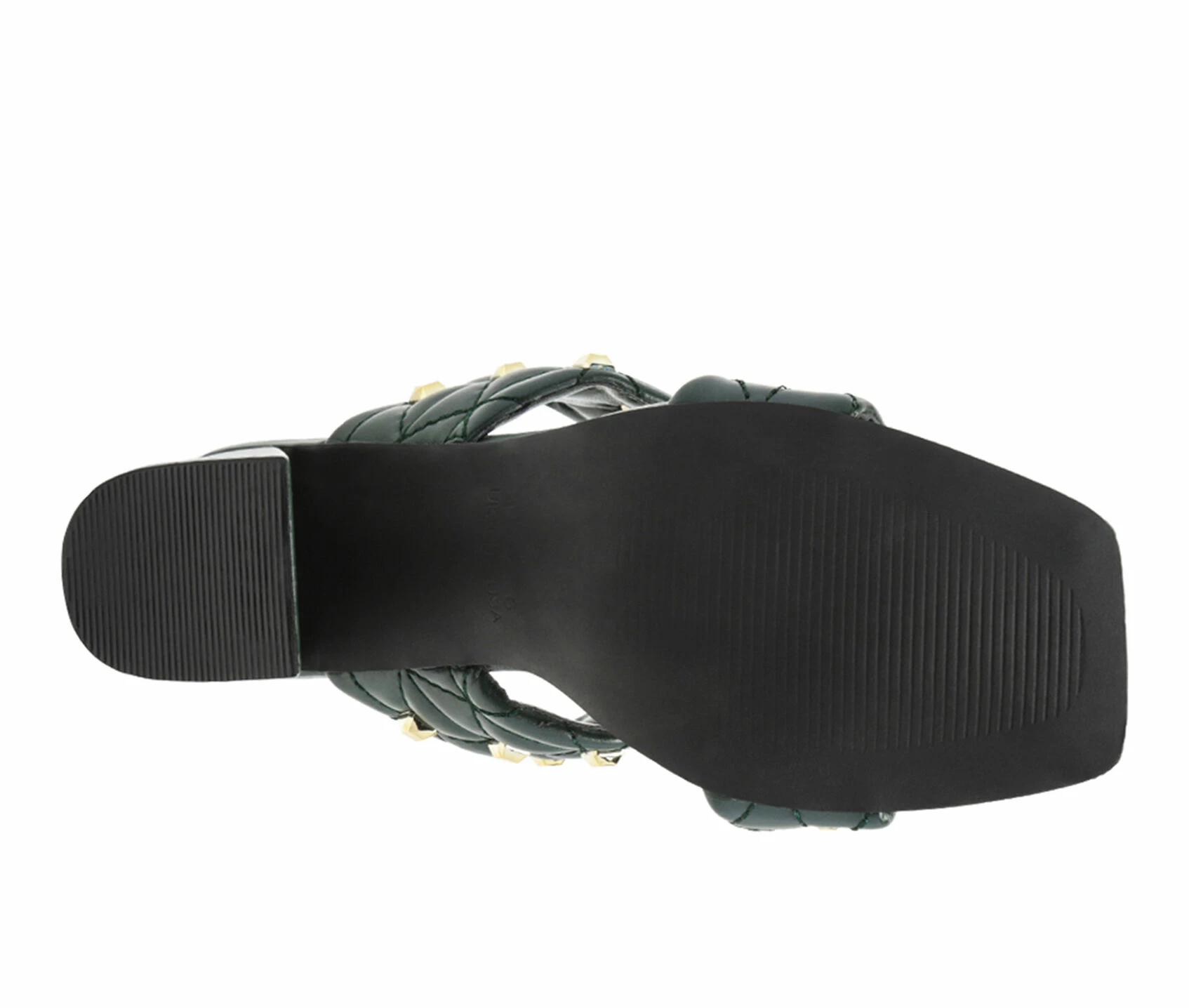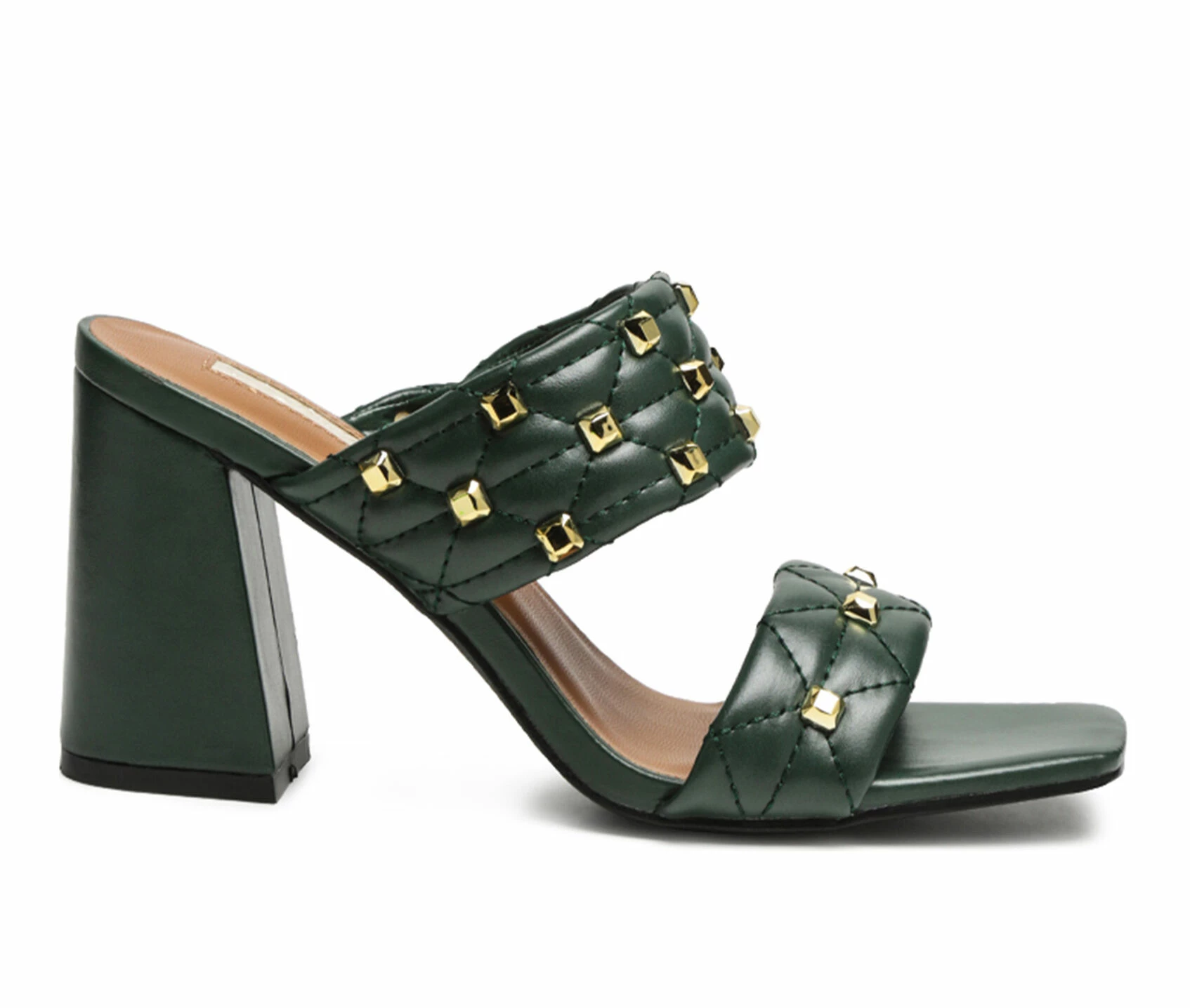 - Faux Leather Block Heel Sandals, Quilted design with Golden Studds on Straps, Square Open Toe make your feet look beautiful and Stylish.