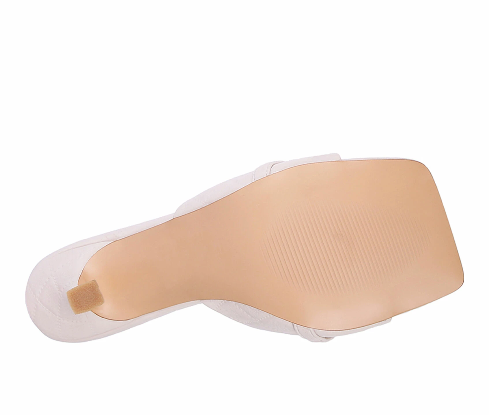 - Mid Heel Sliders with quilted detail and big metallic chain decoration on straps is a trendy design and looks gorgeous on feet. Comes with insole cushioning which absorbs strain.