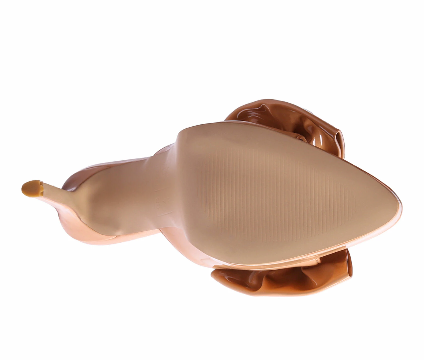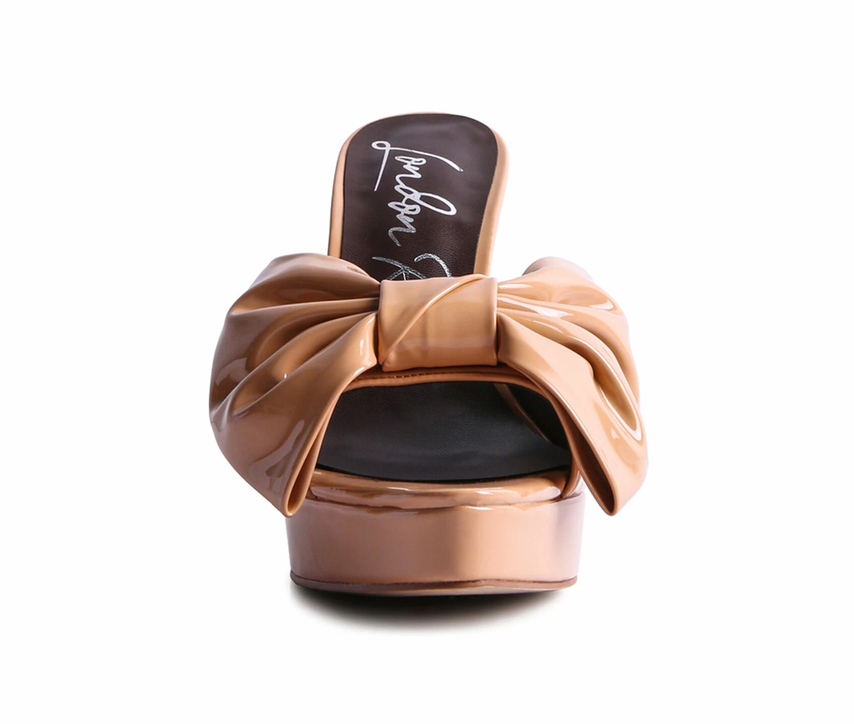 - Look gorgeous all evening in this pair of high-heeled patent PU sandals. The beautifully made shoe comes in great finish and construction with a lightly padded insole and is built on a raised platform.
