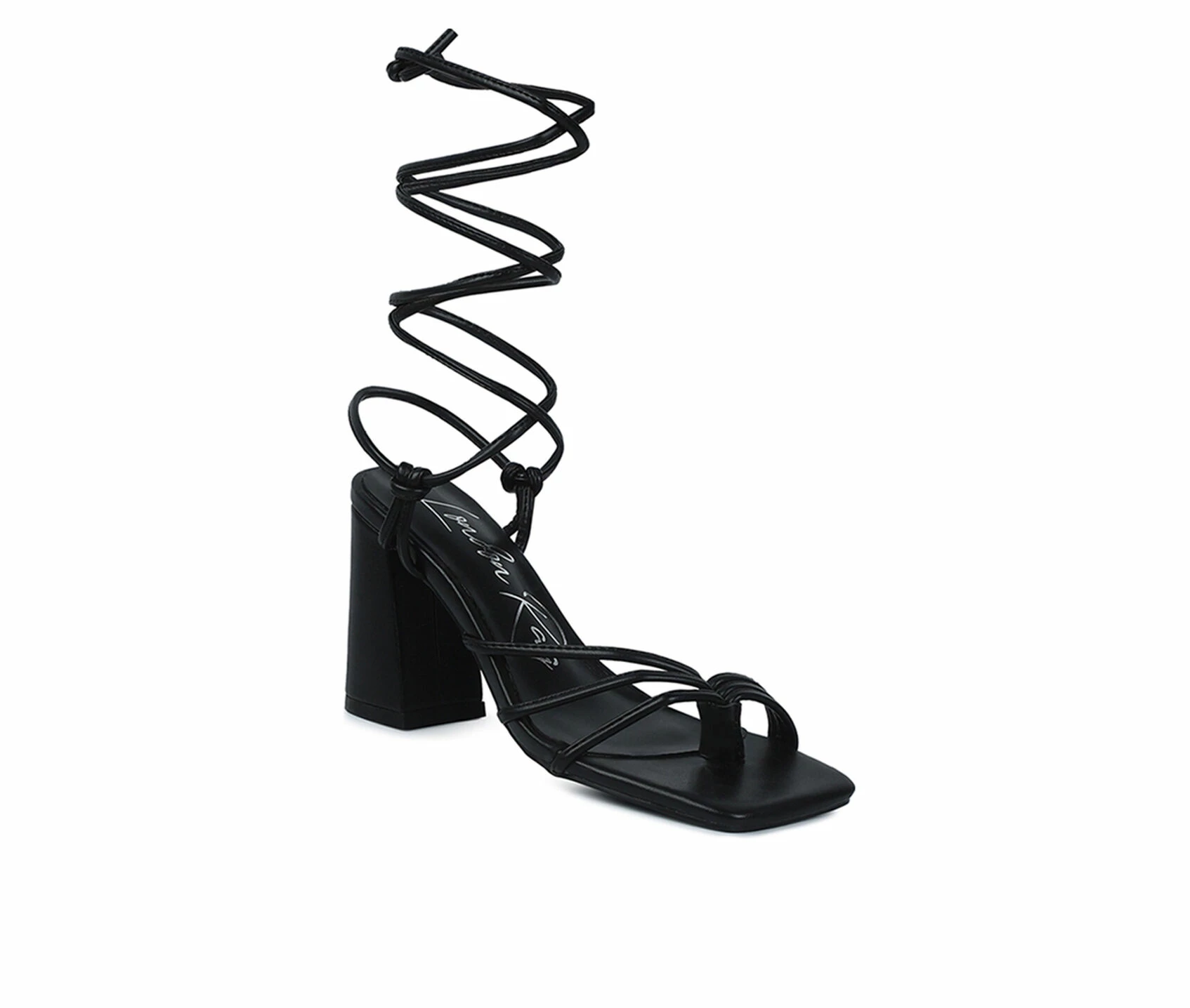 - High Block Heeled sandal with toe ring detail – hold feet well and the tie-up design adds to the look. The block-heeled sandal has cushioned insole to help the feet keep off the strain.