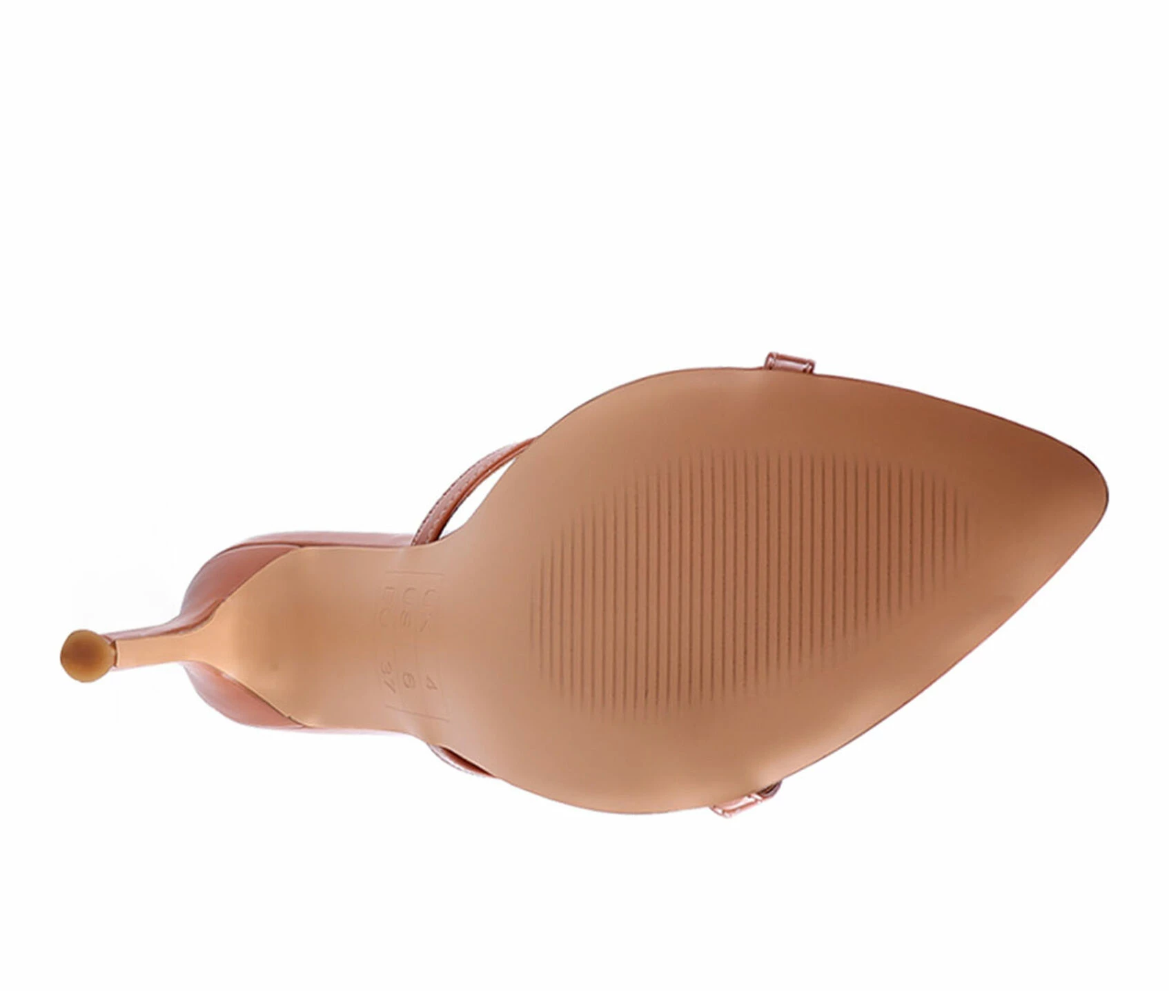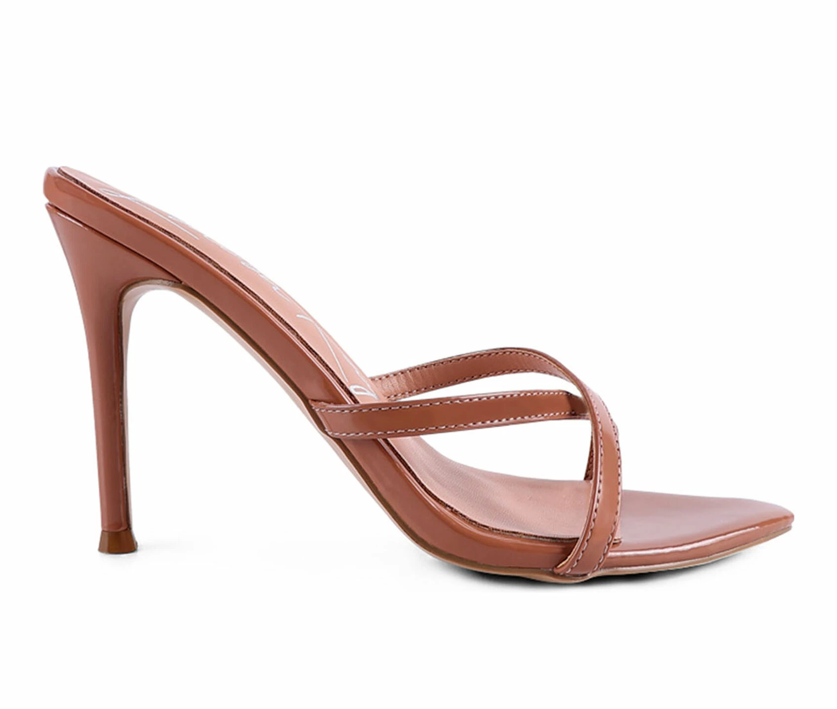 - High Heeled Stiletto Slider Sandals look dainty; this trendy design has pointed toe and thin cross strap details which look charming on feet.