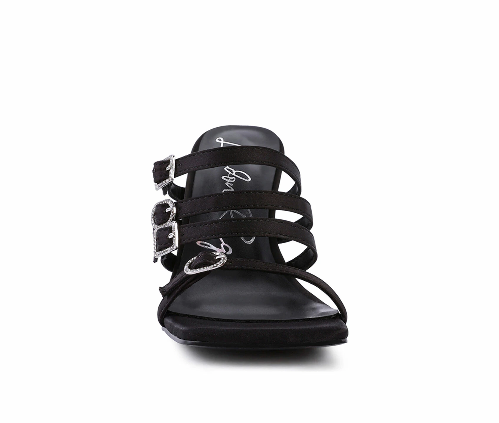 - Four strap design with adjustable rhinestone encrusted buckle closures