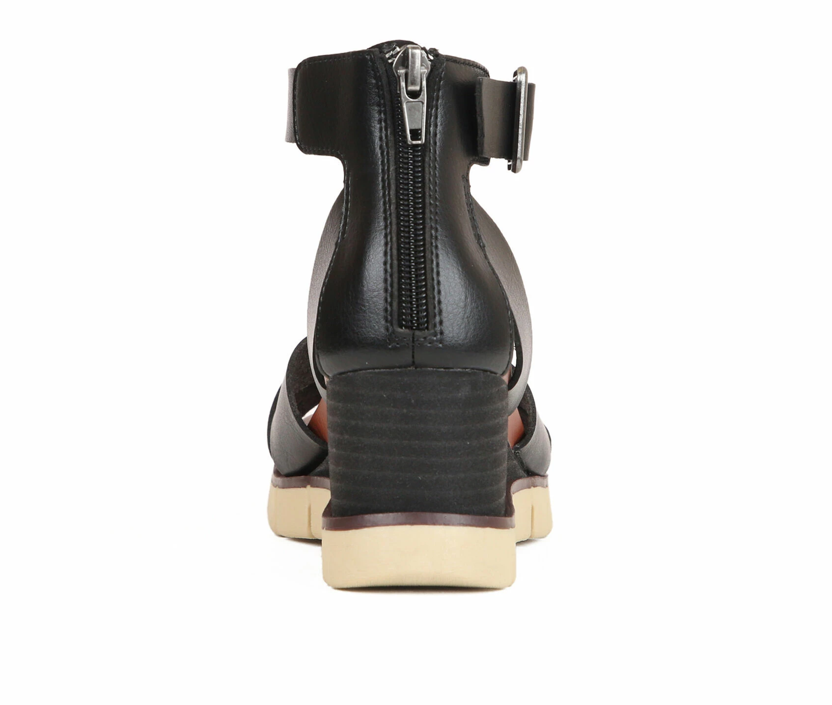 - The Lauri wedge sandal will be the perfect pair for your warm weather shoe collection. The crisscross toe straps and sporty sole will make sure you have the perfect sense of style as you are stepping out for the night! This sandal also features the signature contoured footbed provides the perfect balance of cushion to your feet.