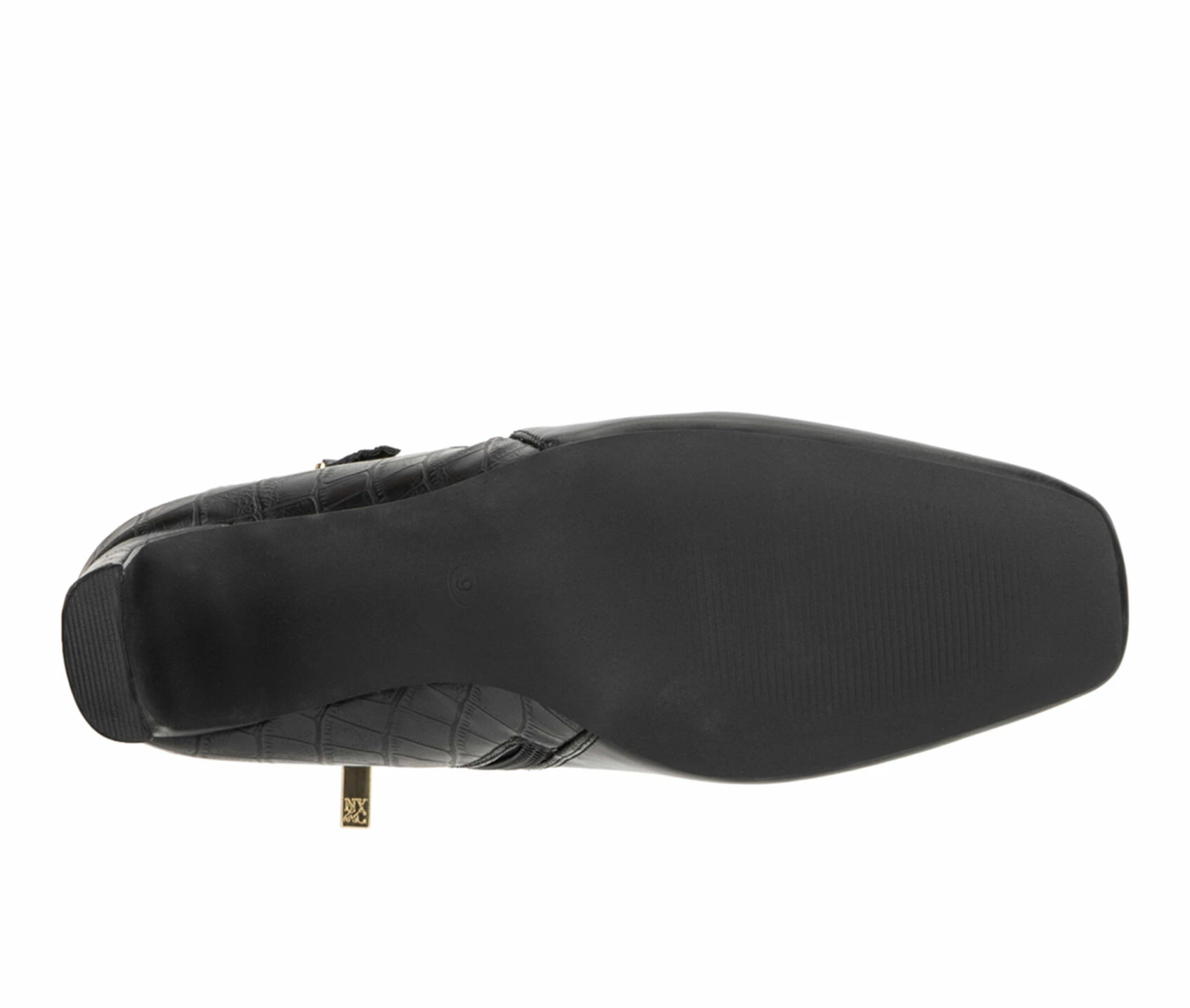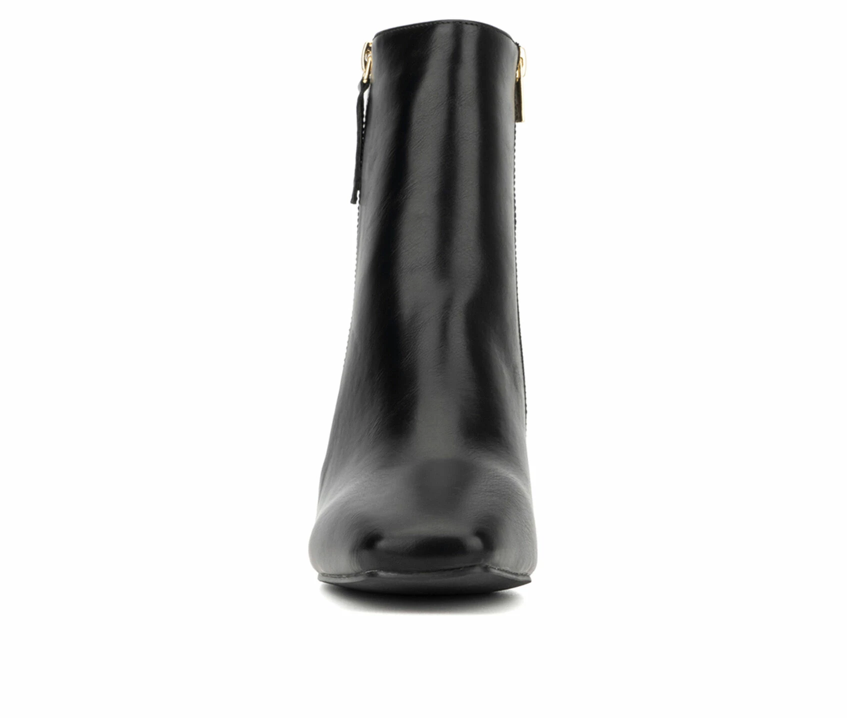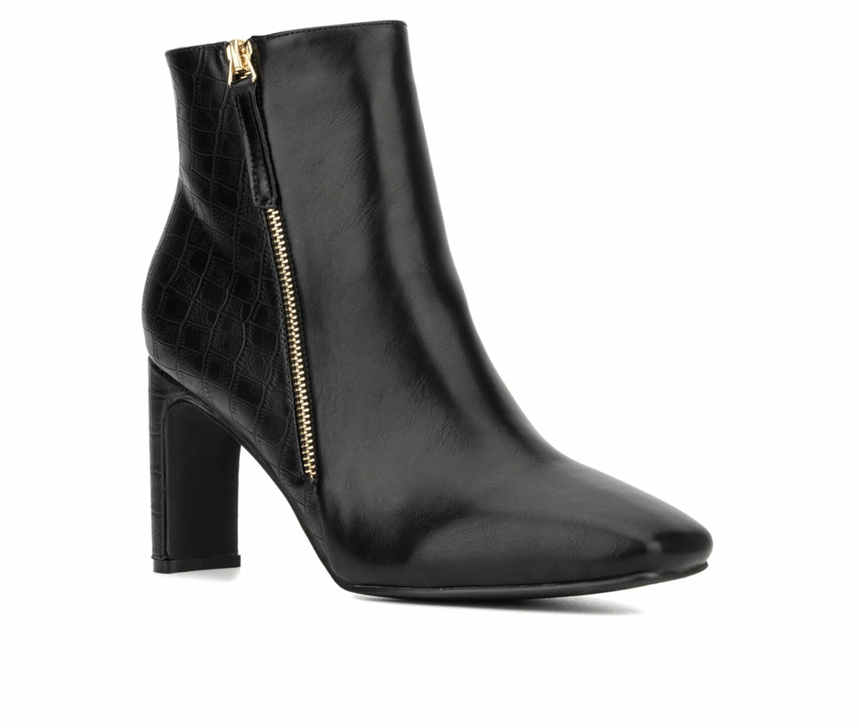 - The Una bootie is fashioned with a dual-textured upper, squared toe, comfy high heel and a side zipper closure.