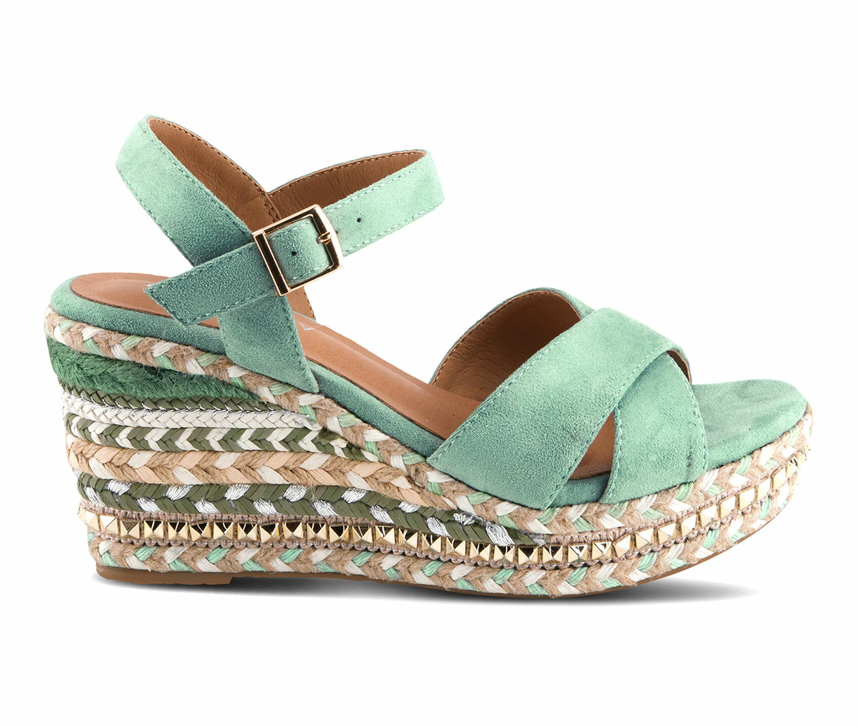 - Wrapped midsole with braided jute, synthetic leather, and stud details