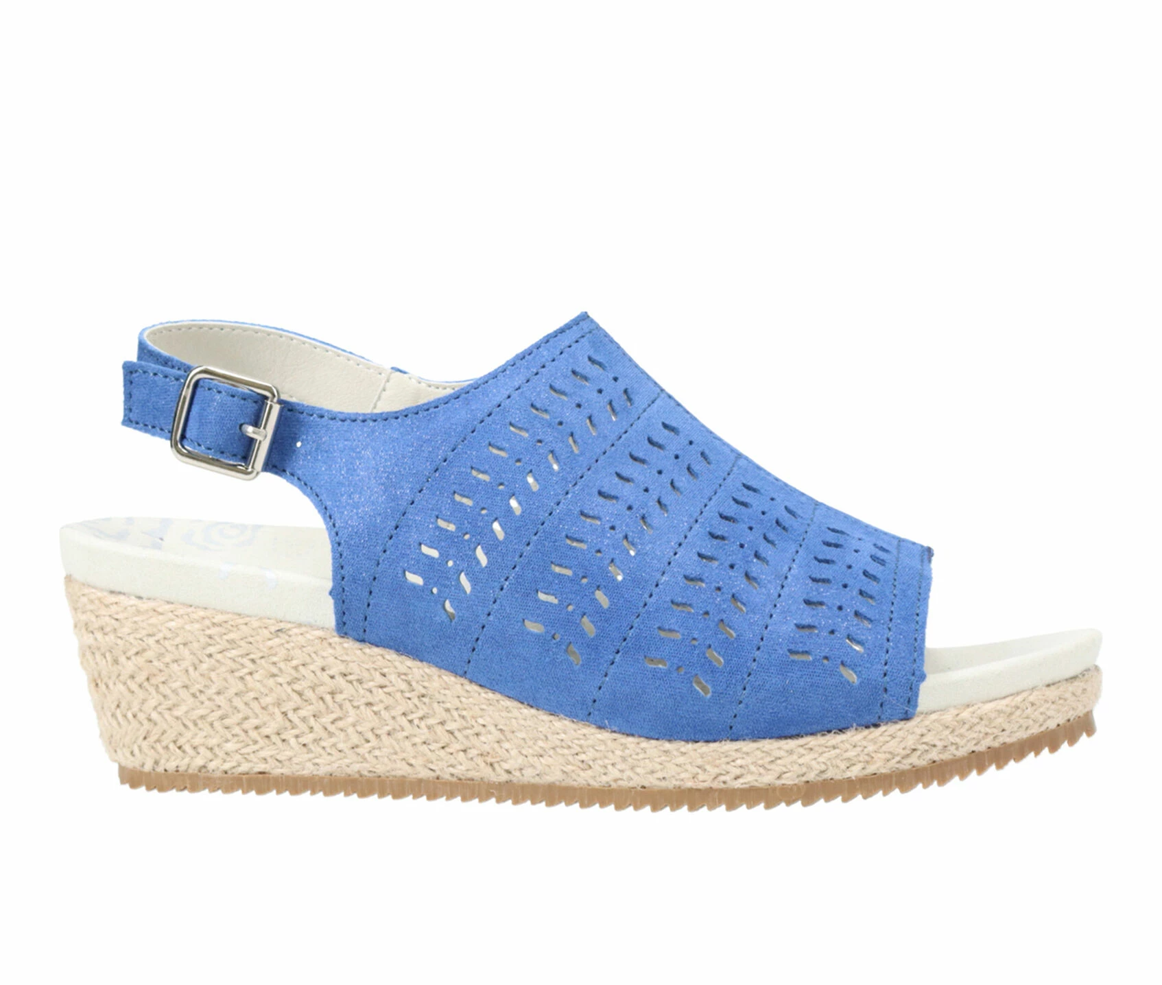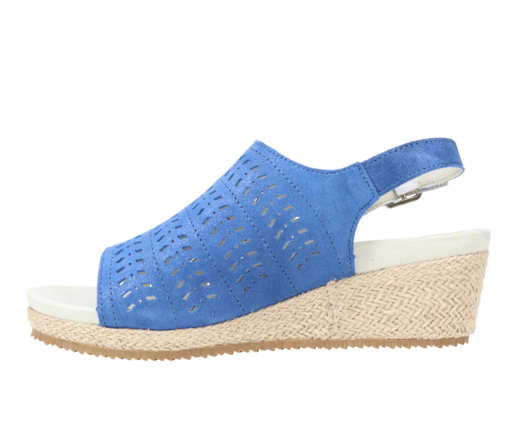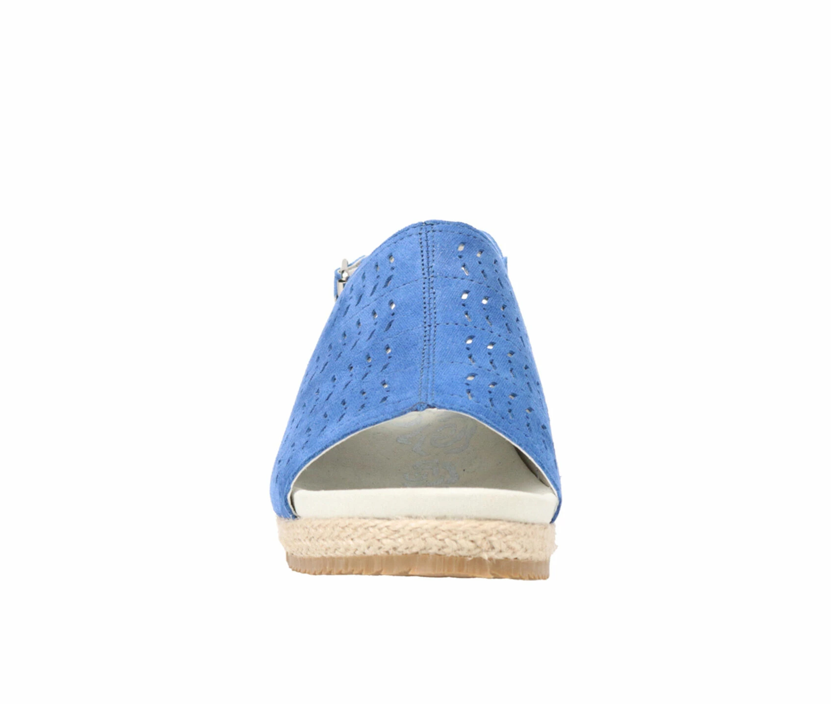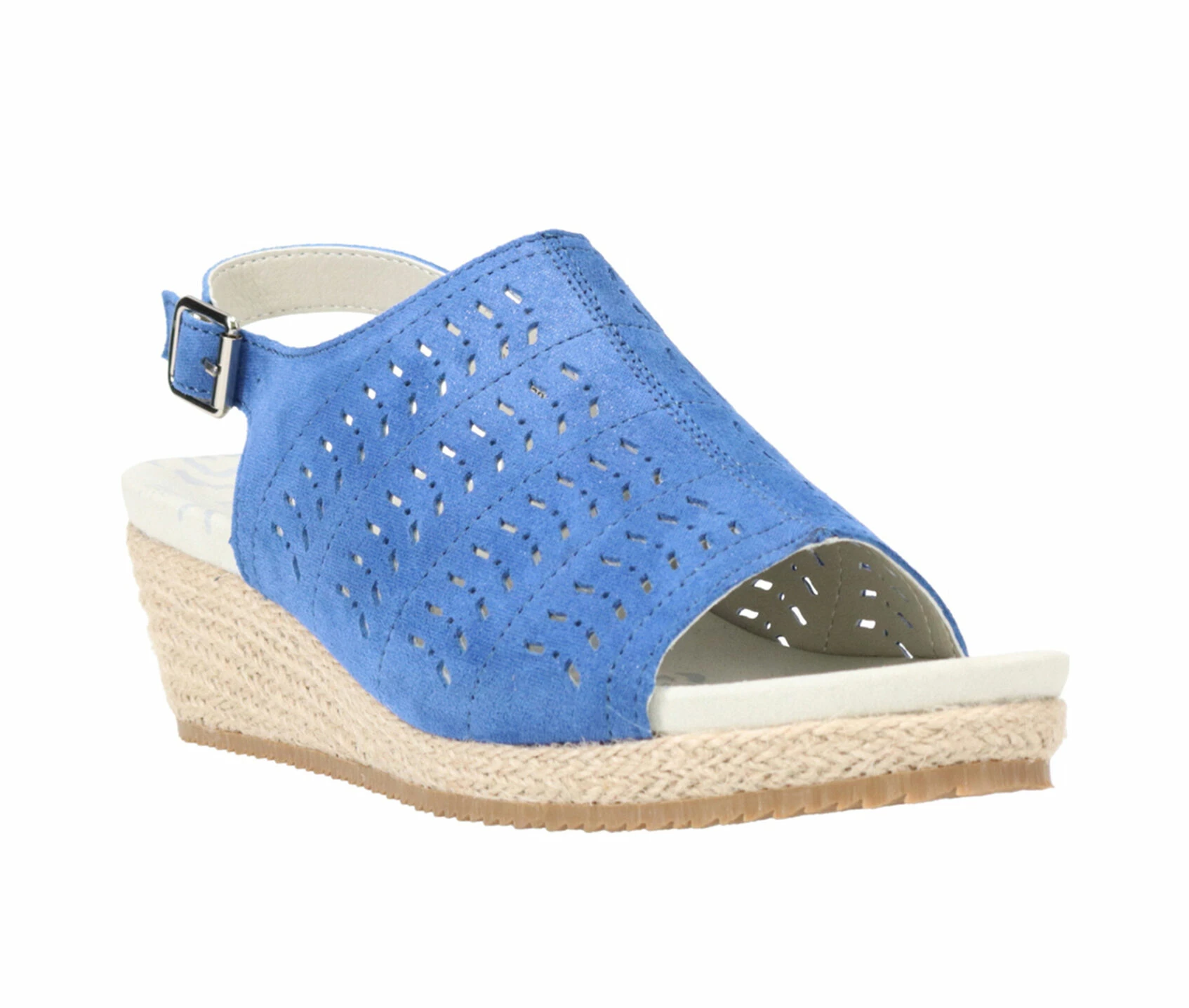 - Laser cut sheep skin upper offers full coverage with adjustable ankle strap. Microfiber lined dual density PU footbed provides comfort and superior support. Natural jute covered wedge midsole with full rubber tread outsole for non slip traction.