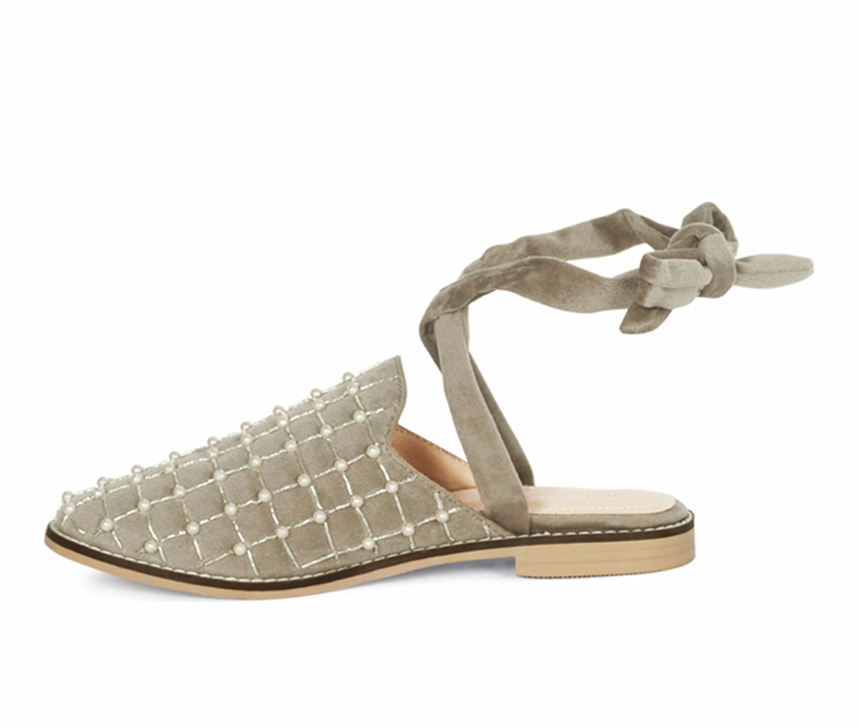 - Inspired from traditional African Tribal Art and Textiles – ASANTE Handcrafted and hand embroider velvet Mules in Earthy Palette reminds one of the geometric patterns adorning the living landscape. The detail of monotone beads is enhanced by Metallic Threads painstakingly set on Velvet in a criss-cross pattern.