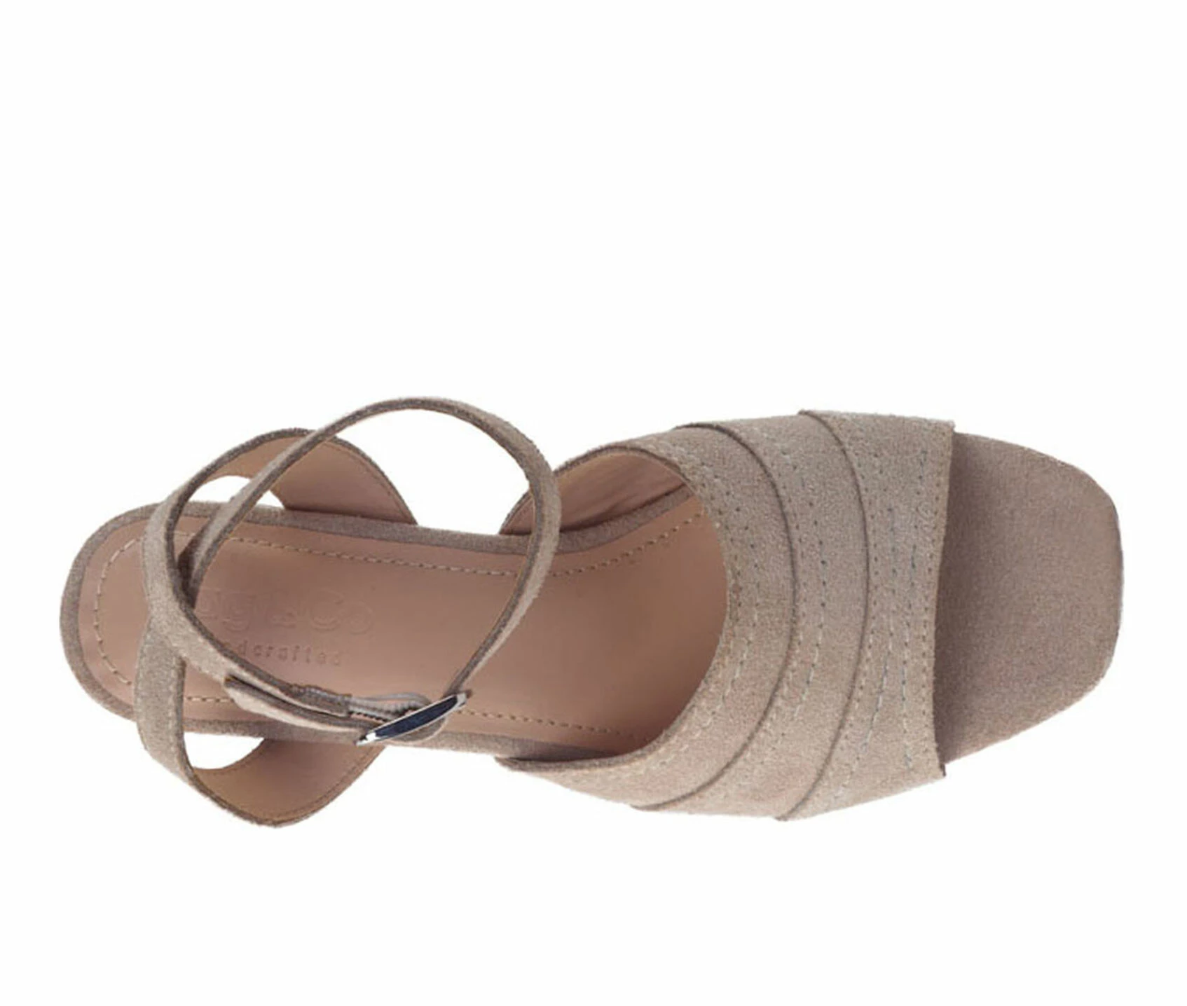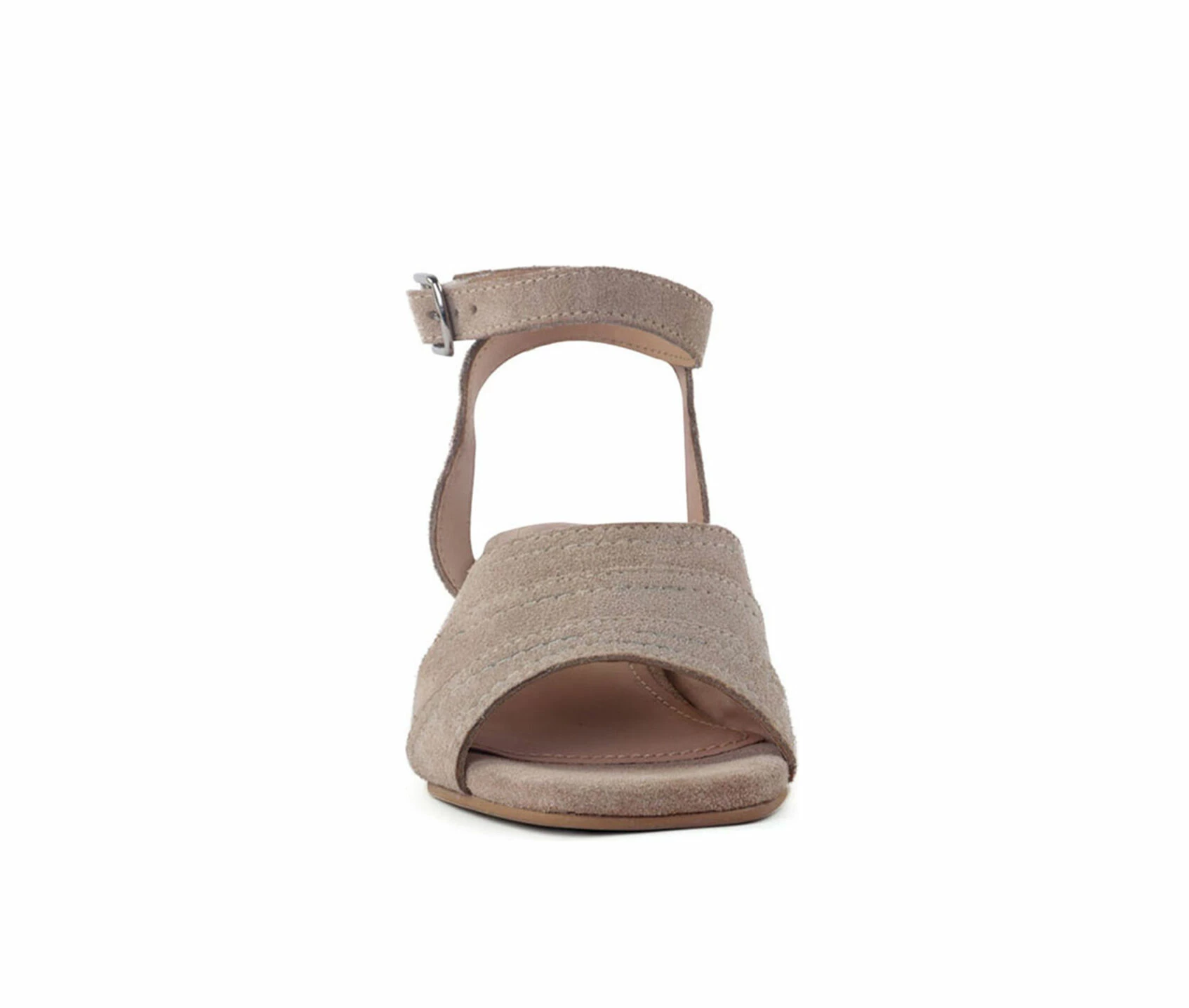 - Solid Nude Soft Suede block heeled sandal with quality hardware – the pin buckle fastening sandal is a summer staple. Is a basic high heel ‘comfort’ shoe handcrafted with fine suede. The squared toe sandal has padded insole which keeps feet at rest.