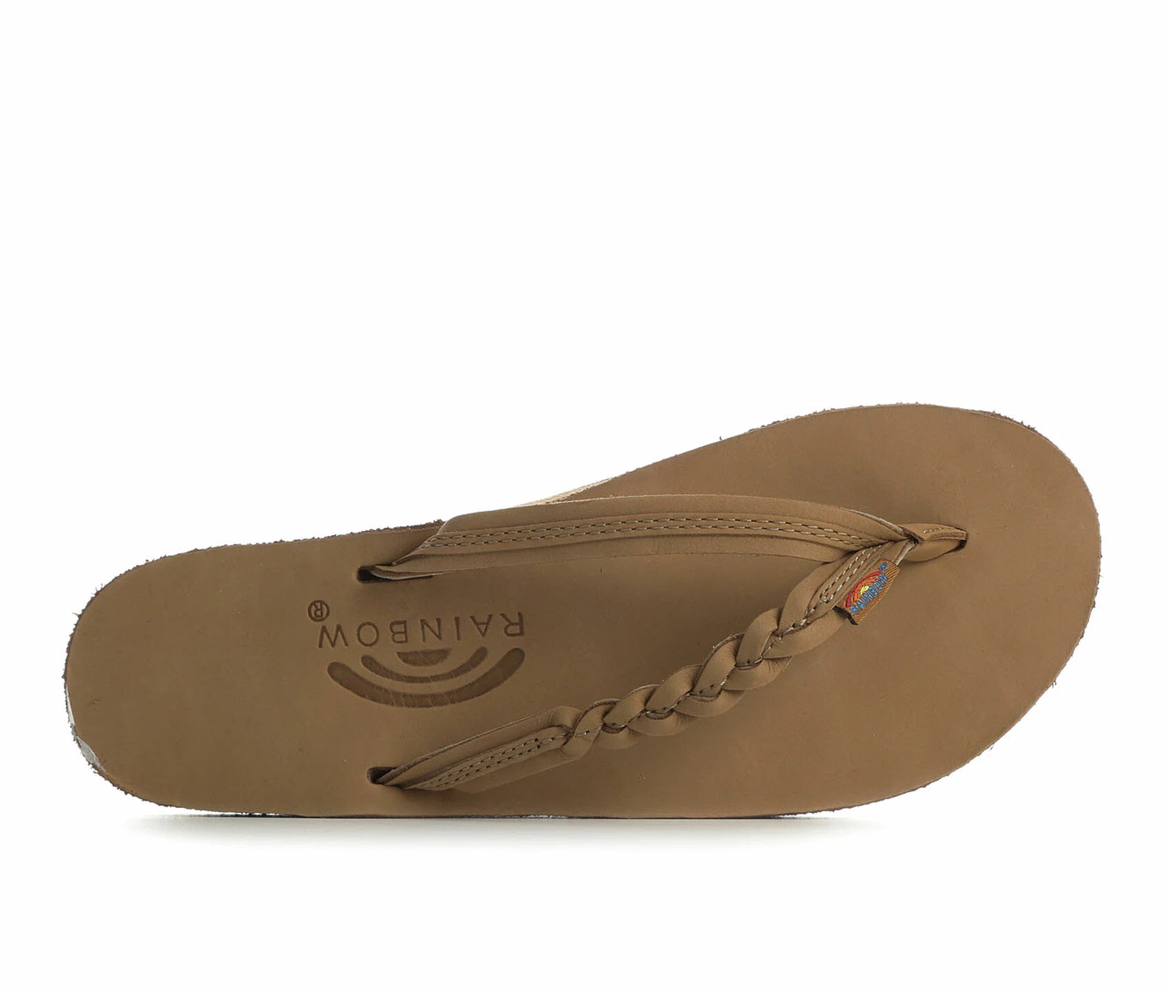 - Women’s Rainbow Leather Braided Thong Sandals. Upgrade your sand and surf style with the Rainbow 301ALTSB! These leather flip-flops feature single layer arch support, double stitched construction, and an EVA cushioned midsole. Enjoy the sun in style with the Rainbow 301ALTSB!