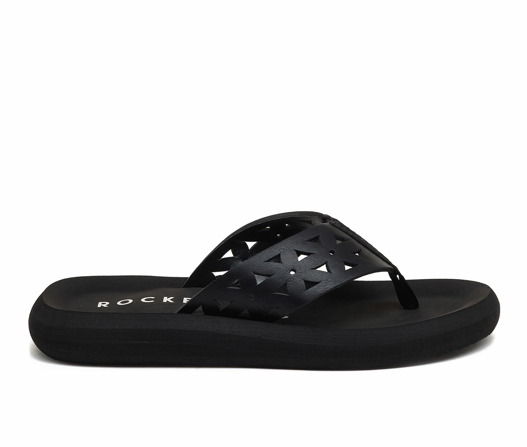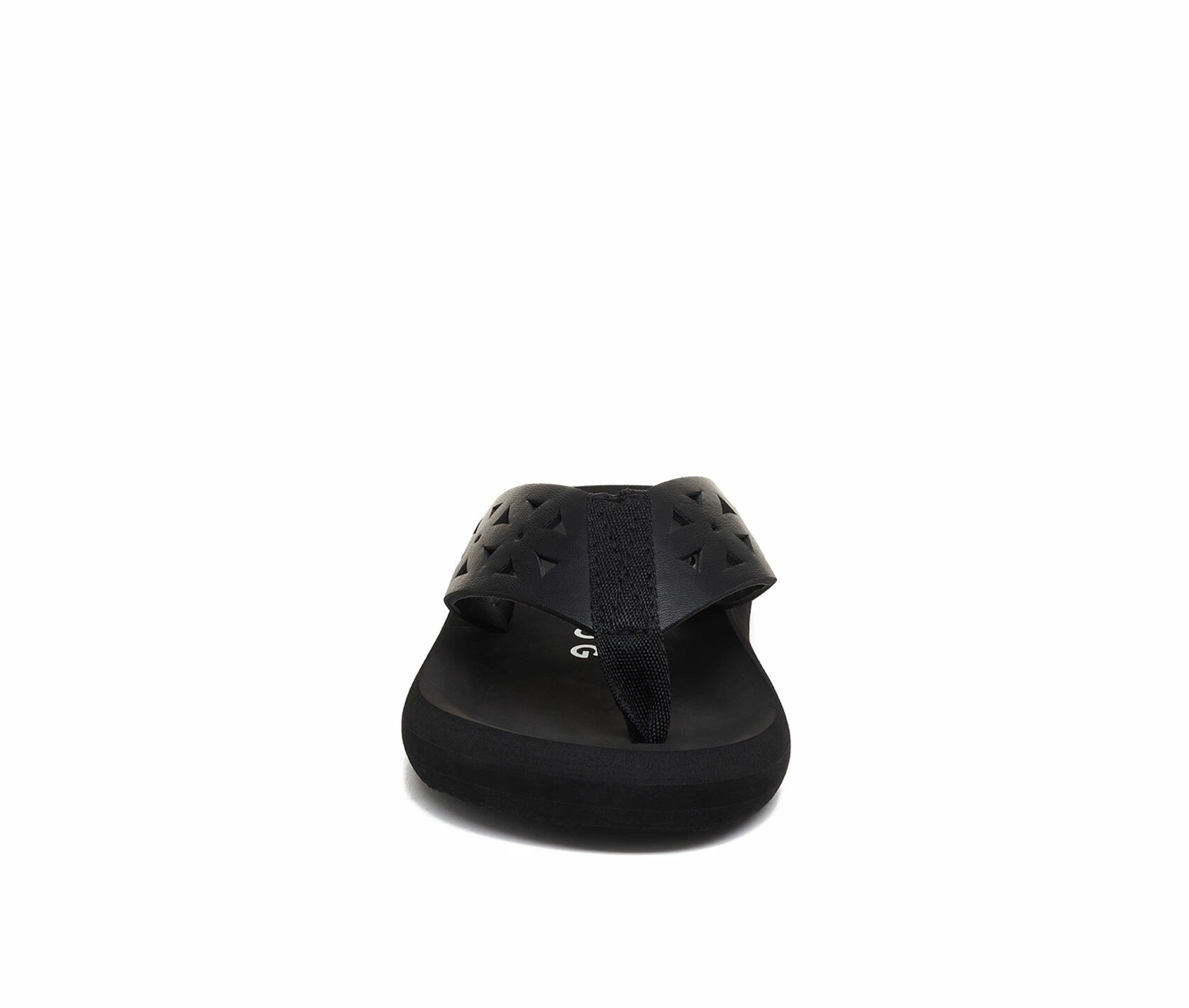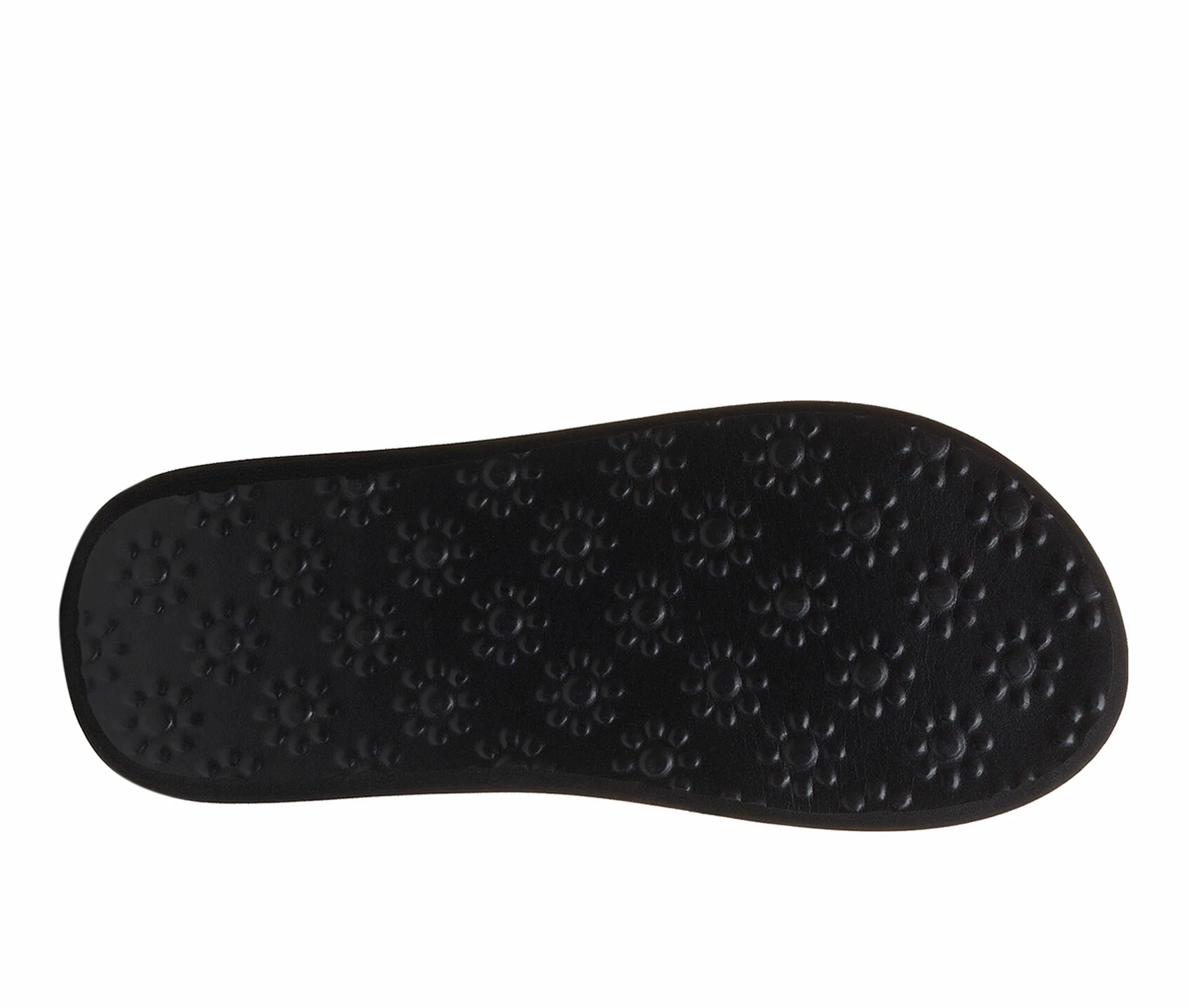 - Women’s Flip Flop Black EVA Footbed, with Pink or Black cutout design faux leather straps