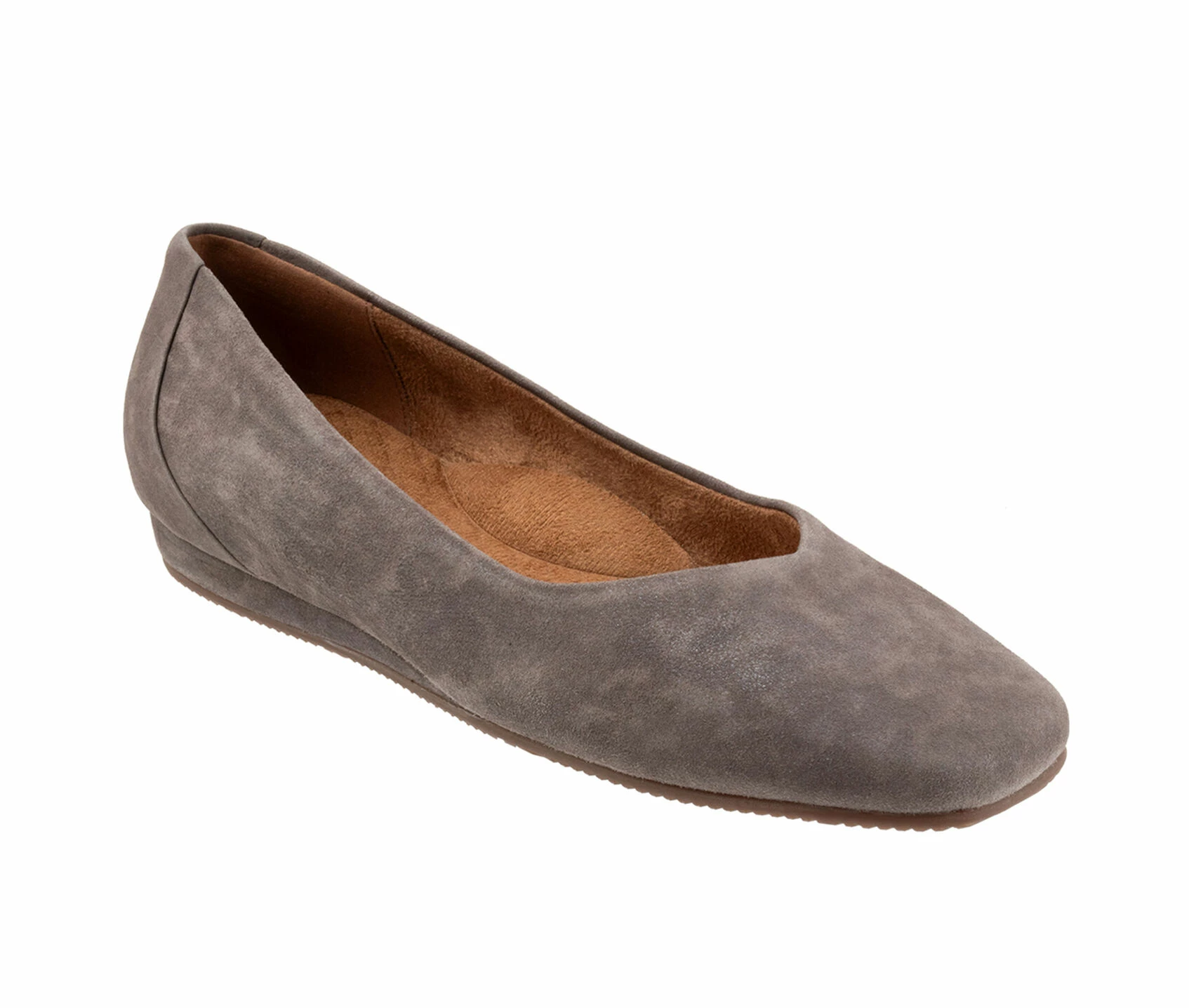 - Vellore is a modern square toe slip on with a mini-wedge sole and premium leathers. The sole is flexible with a sure-grip and the removable footbed is cushioned for comfort.