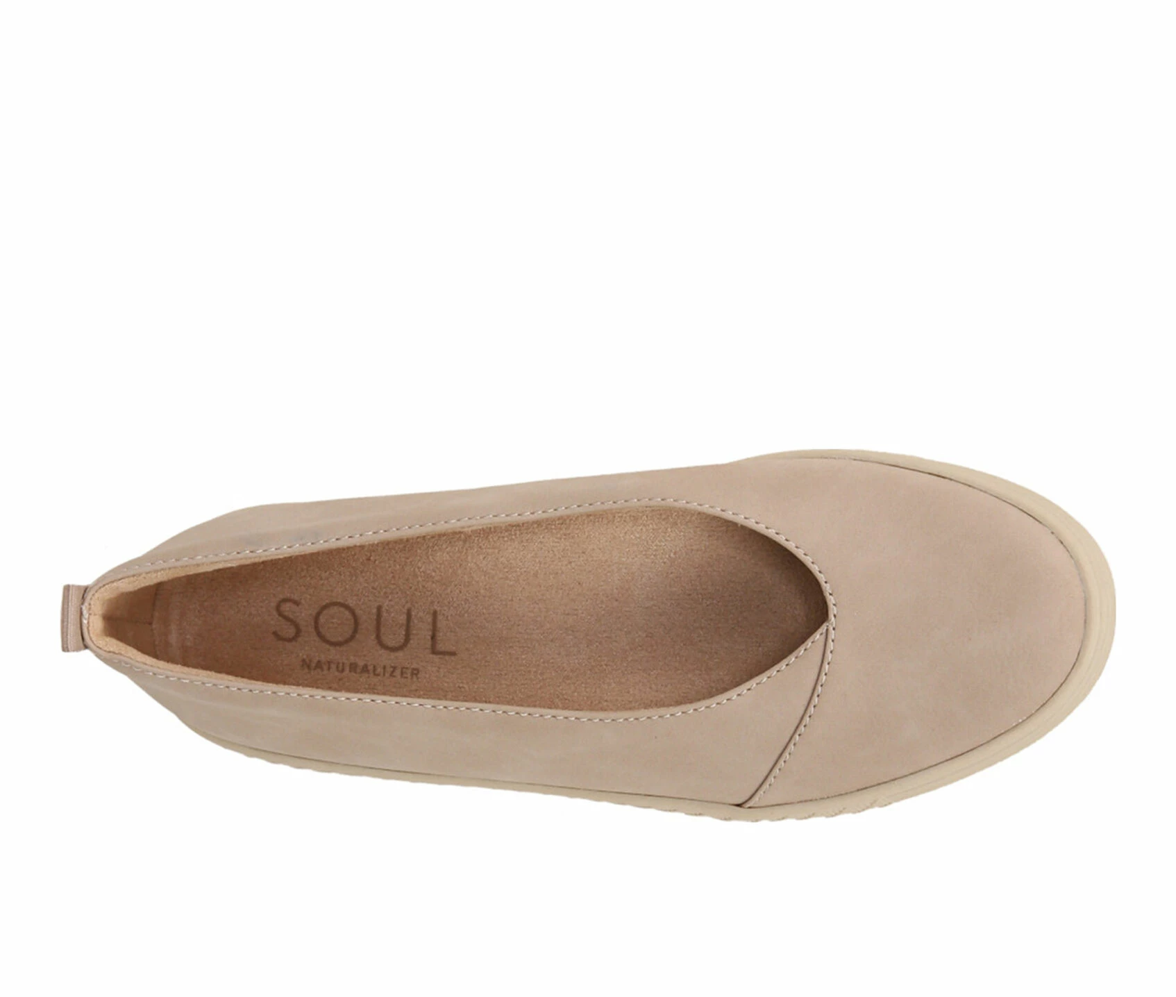 - From SOUL Naturalizer // A fresh take on the Neela you know and love, you’ll want these comfortable + sporty slip ons in your closet ASAP. Sporty + comfy womens slip on shoes with textured flatform sole. Metallic synthetic or synthetic upper with a closed round toe. Slip on fit with back pull tab. All-Thru Comfort: soft foam lining, arch support with memory foam, antimicrobial sock lining, lightweight and flexible outsole. 1 1/8 inch heel. Consciously packaged: 100% of our shoe boxes are made of 80% recycled paper + soy-based ink. Designed using some environmentally preferred materials. WHY YOU’LL LOVE IT: Forever elegant silhouettes with all day wearability, available in an inclusive range of sizes and widths. Designed to the contours of a woman’s foot. The Beautiful Fit. Since 1927.