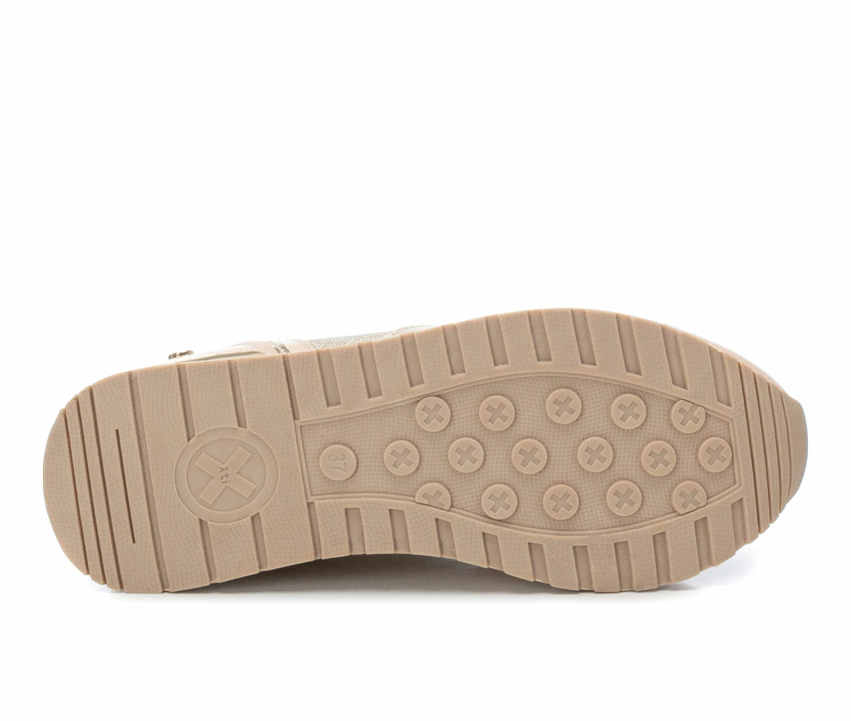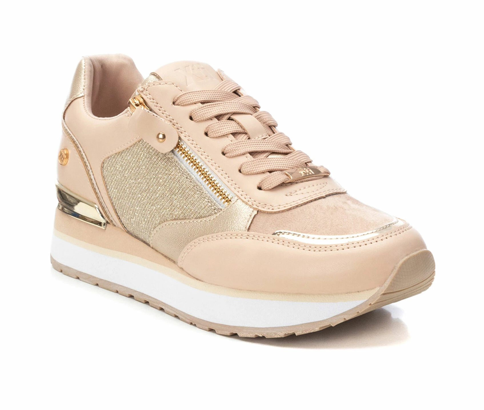 - Women’s Sneakers by Xti. Take your style to the next level with the exquisite Xti Shoes! Fashion style that combines textile and metallic textures. Lace-up closure and side zipper for easy fit. Small wedge for greater comfort. Durable non-slip rubber sole. This model has been certified vegan by the worldwide organization PETA.